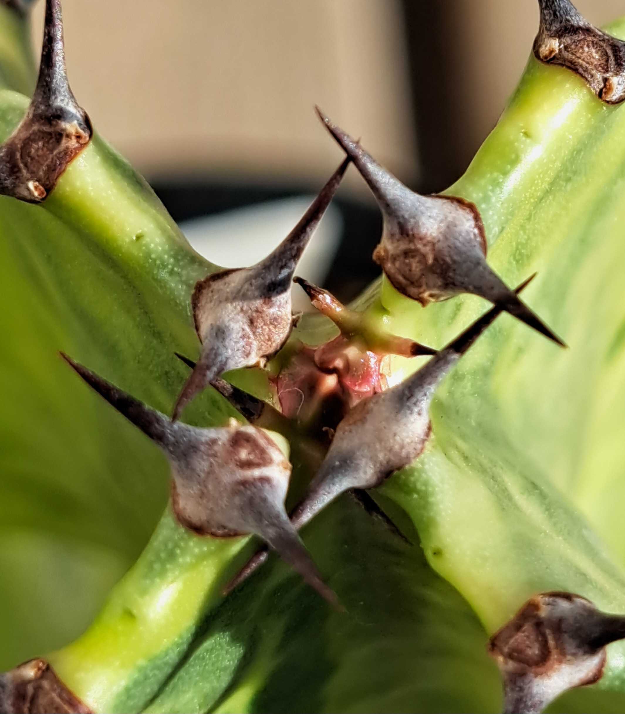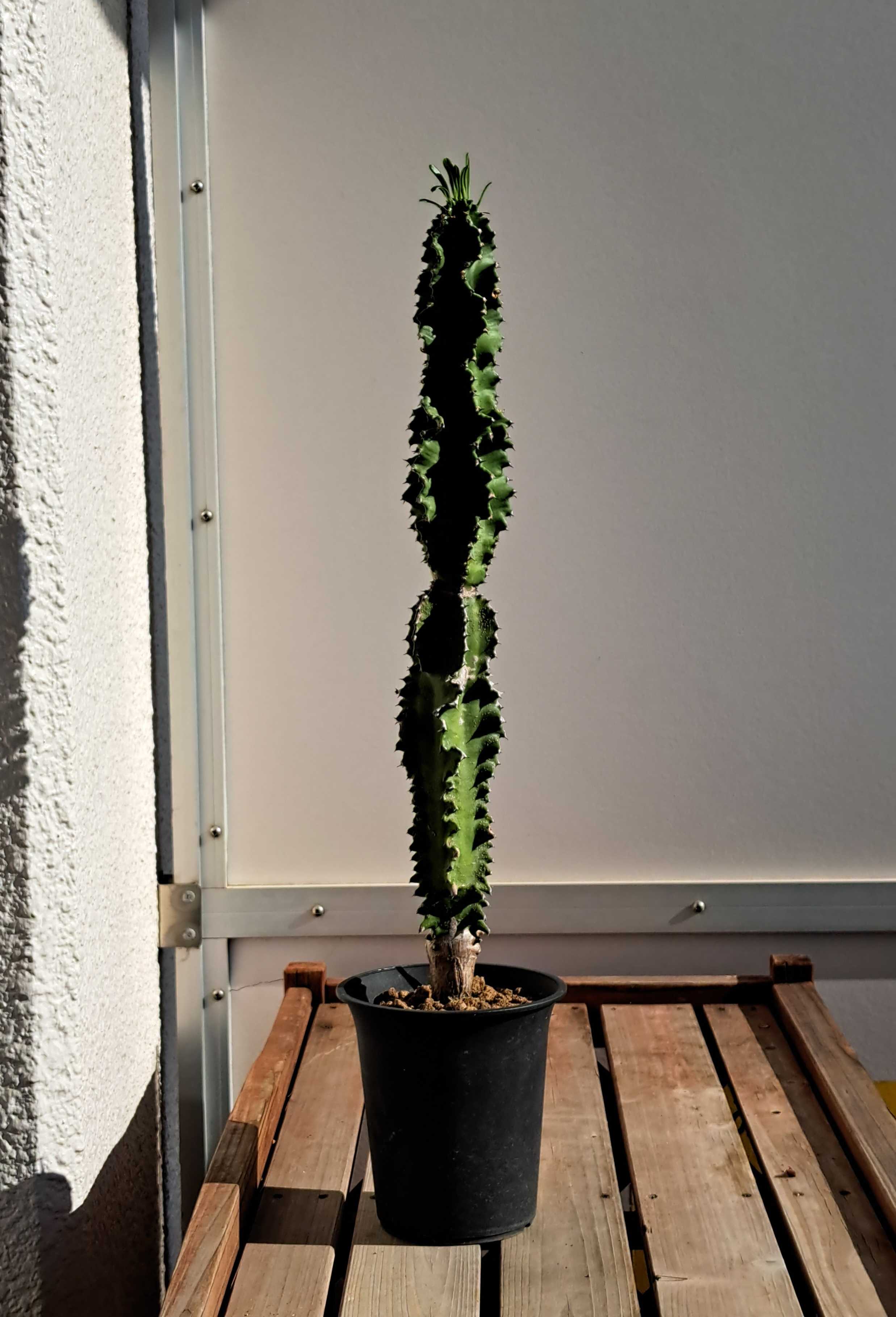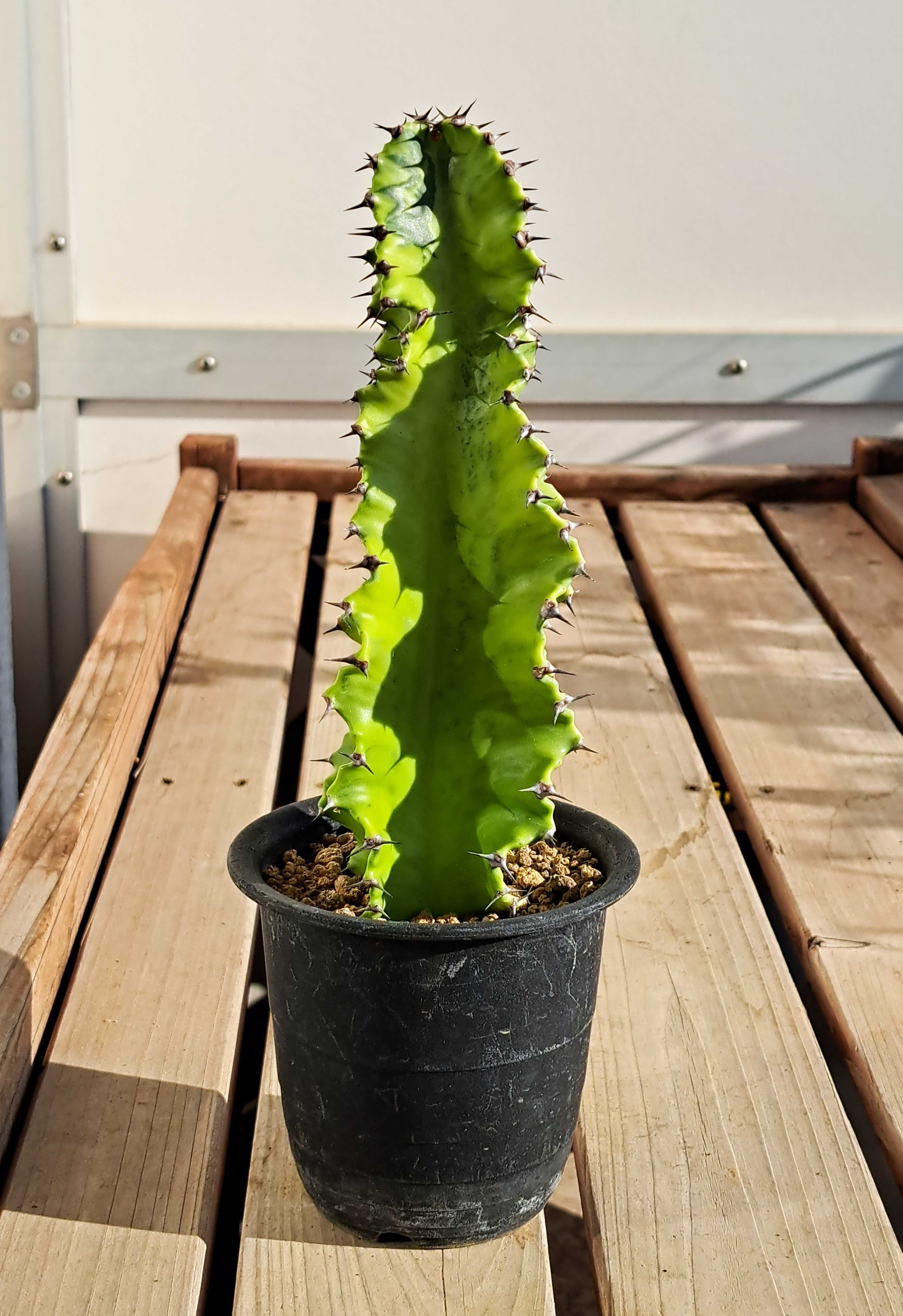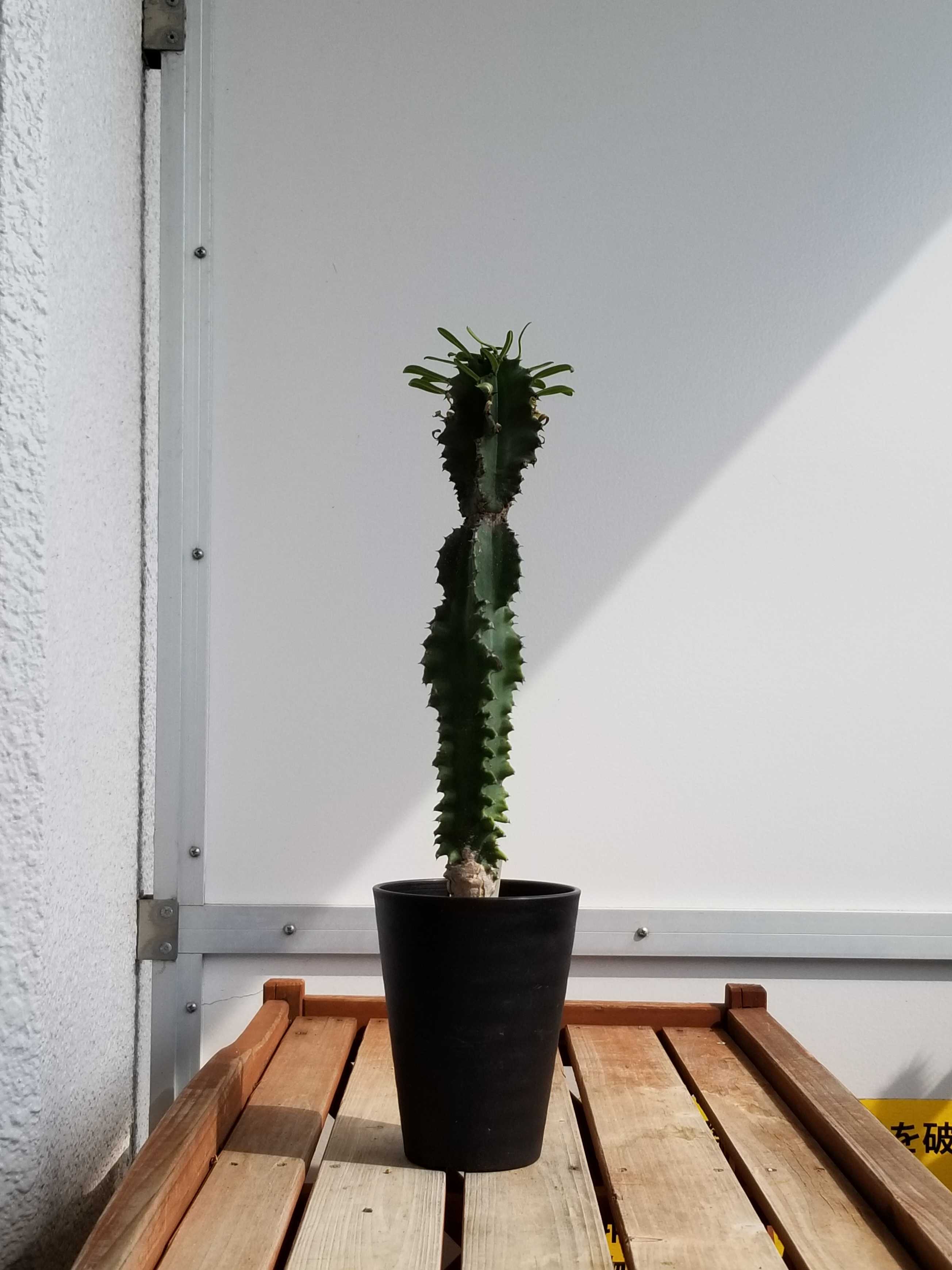 今年も11月に動くヤツ。 それはユーフォルビア・インゲンス。 ![]() てっぺんの成長点付近は活性化し茎が形成され葉が出ている。 成長しているのだ。 コイツいったんは成長を止めていた。 10月ごろには葉を枯らしお休みモードに入っていたのだ。 葉が枯れたところで室内退避。 その後ずっと室内窓際に置いている。 再び動き出したのは窓越しの太陽光により高温になったからだろう。 この時期は太陽が低くなり室内にもよく日が当たるようになるのだ。 ![]() てっぺんの葉が最近出たもの。 その下に枯れ葉がありその下にある葉は夏に出たものだ。 夏に成長しいったん休止し今また成長している。 変な動きだが夏に成長したのは実は今年が初めてだ。 3年ぐらい育てているが今まで夏に成長することはなかった。 外である程度日に当たる場所に置いていたのだがそれでもダメ。 そこで今年はベランダ最前部で最大限に日に当てたところ夏に動いた。 ユーフォルビアの柱状種はかなりの高温にならないと動かないのだ、多分。 ![]() しかし、なんだかんだで結構背が高くなってきた。 巨大になる種だと思うのでまだまだデカくなるはず。 2メートル目指してがんばろう。 ちなみにコレは昨年11月9日。 ![]() だいぶ伸びたことが分かる。 さらにさかのぼって2021年9月13日。 ![]() 最初はこんなに小さかったのだな。 一方同じ柱状種の大戟閣錦。 ![]() コイツは今年全く成長しなかった。 夏の間ベランダ最前部で直射に当てていたにも関わらずだ。 去年一昨年はこれでフツーに成長した。 だが今年は違った。 秋からは室内で窓越しの太陽光を当てているがそれも効を奏さず。 未だ動きがない。 ![]() インゲンスはこれで動いているのになぜだ? 成長点を拡大する。 ![]() 若干赤くなっているがこれから動き出すのか? それとも動かないままか? 分からない...。 ユーフォルビア ◇ 大戟閣 ◇ 3.5号ポット ◇ 多肉植物 ◇ サボテン ◇ 観葉植物 ◇ 2本立ち ★【現品・現物】ユーホルビア・ランガク (ユーフォルビア 巒岳 らんがく)T番 10号 多肉植物:ユーフォルビア 春駒*幅4cm 【エントリーで!プラスP5倍】ユーフォルビア ホワイトゴースト ビザールプランツ 3.5号 3.5寸 多肉植物 インドアグリーン 苗 観葉植物 引越祝い 開店祝い 新築祝い プレゼント 贈り物 【送料無料】 お気に入りの記事を「いいね!」で応援しよう