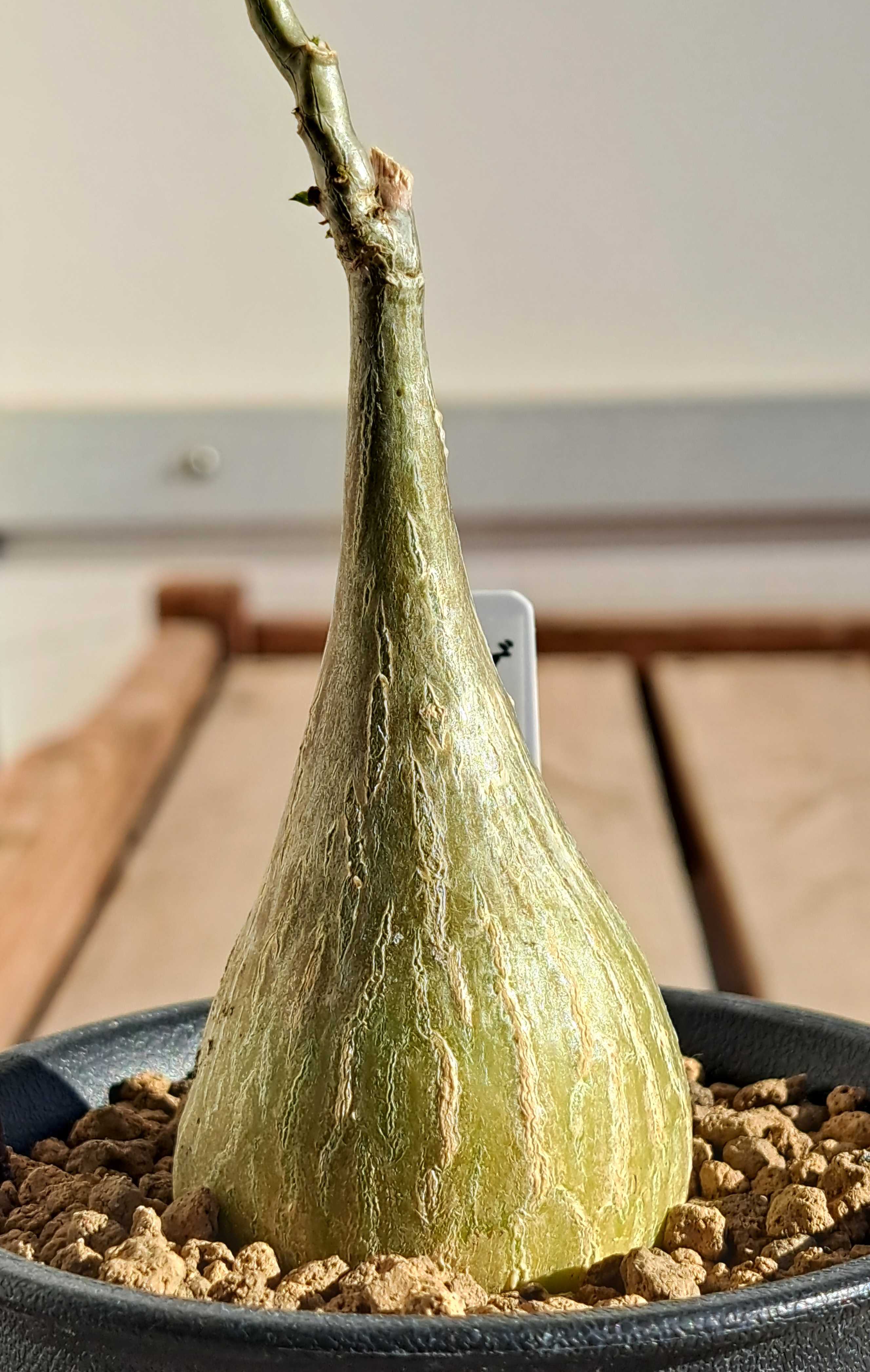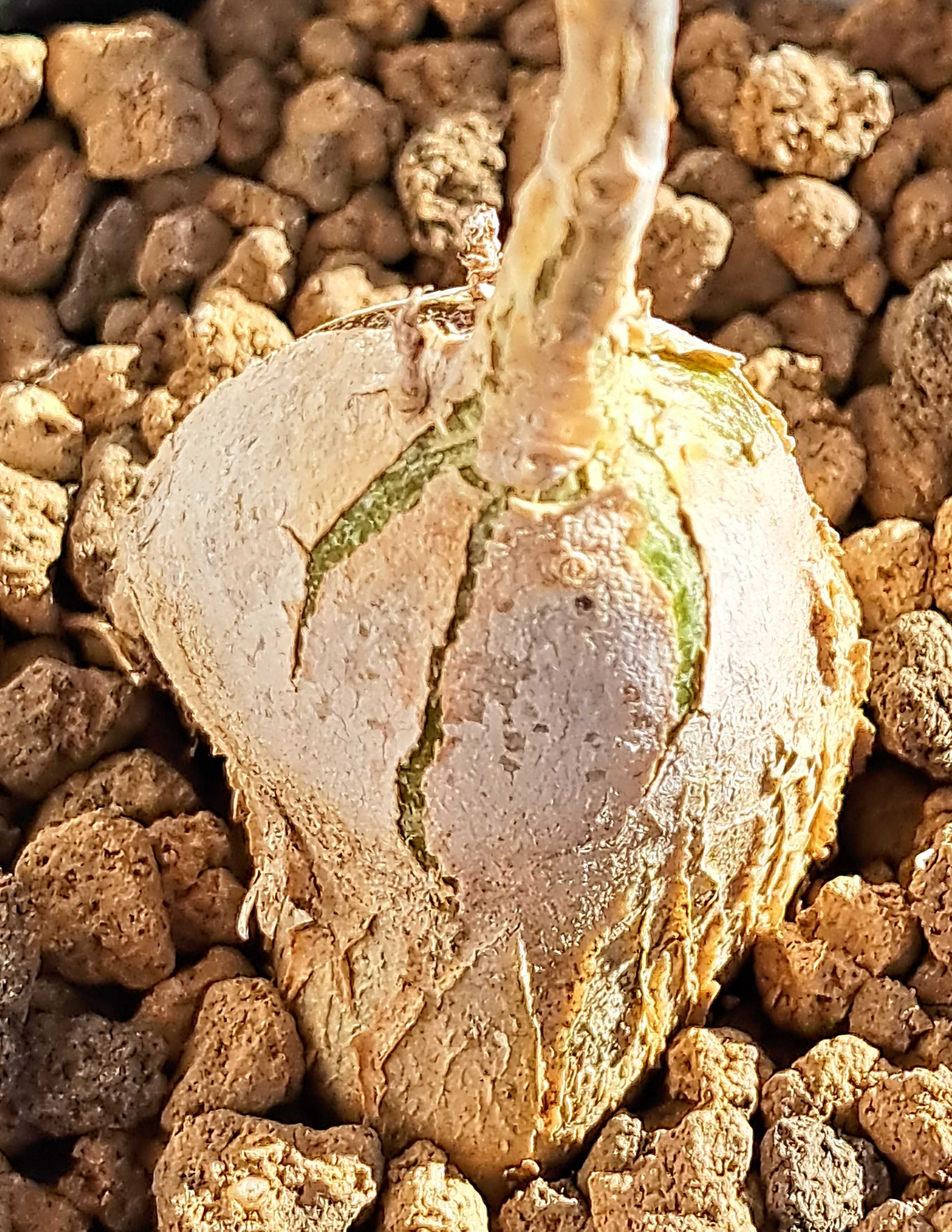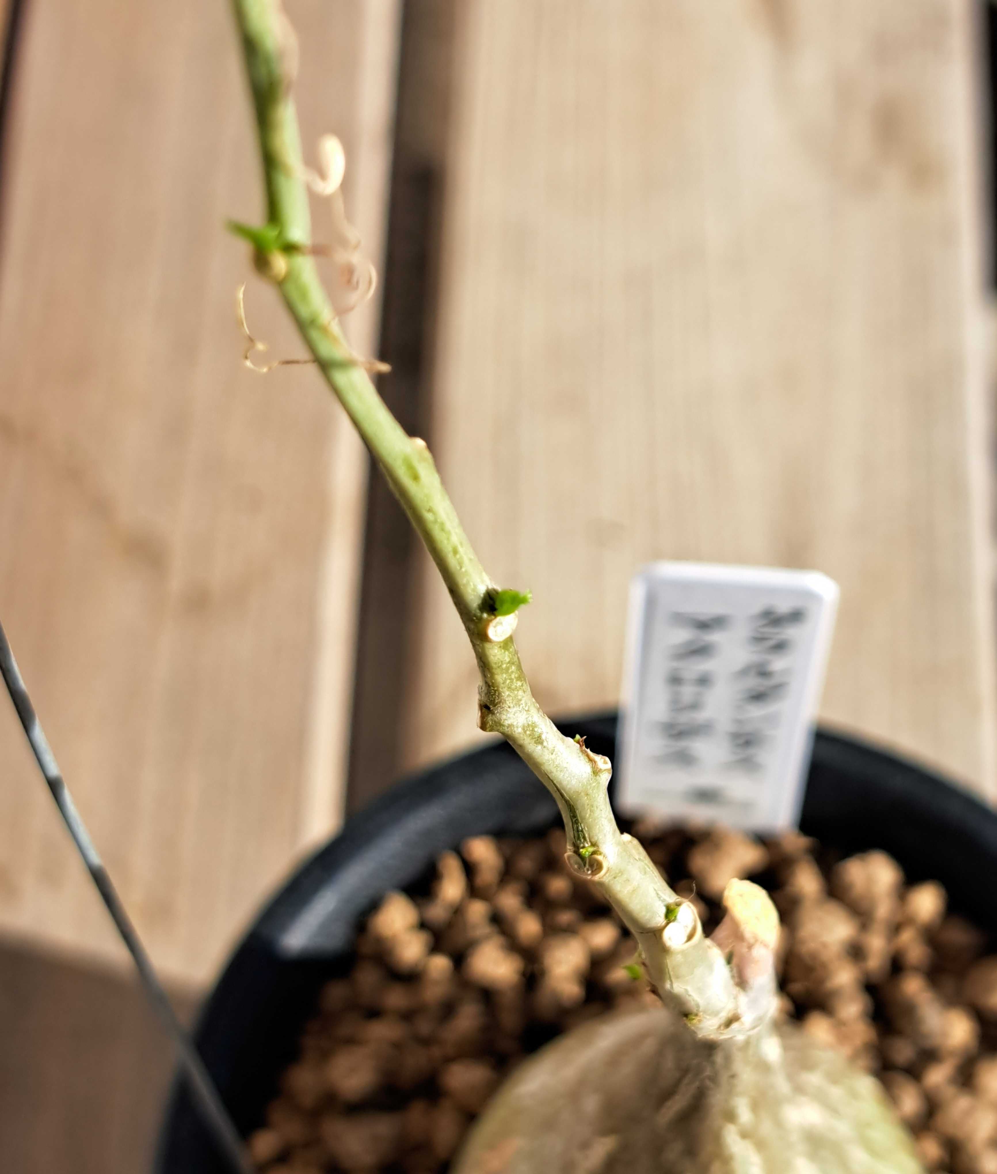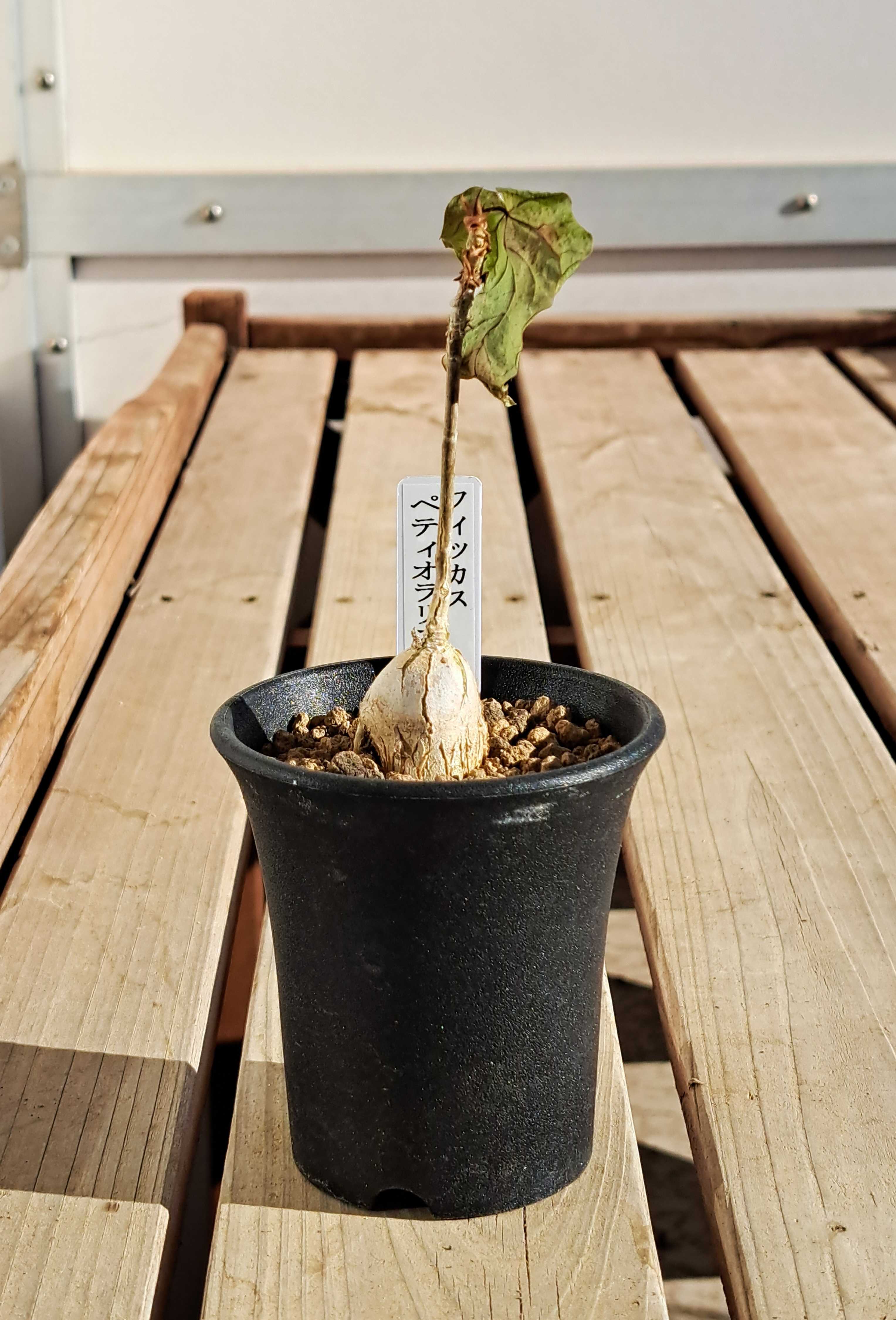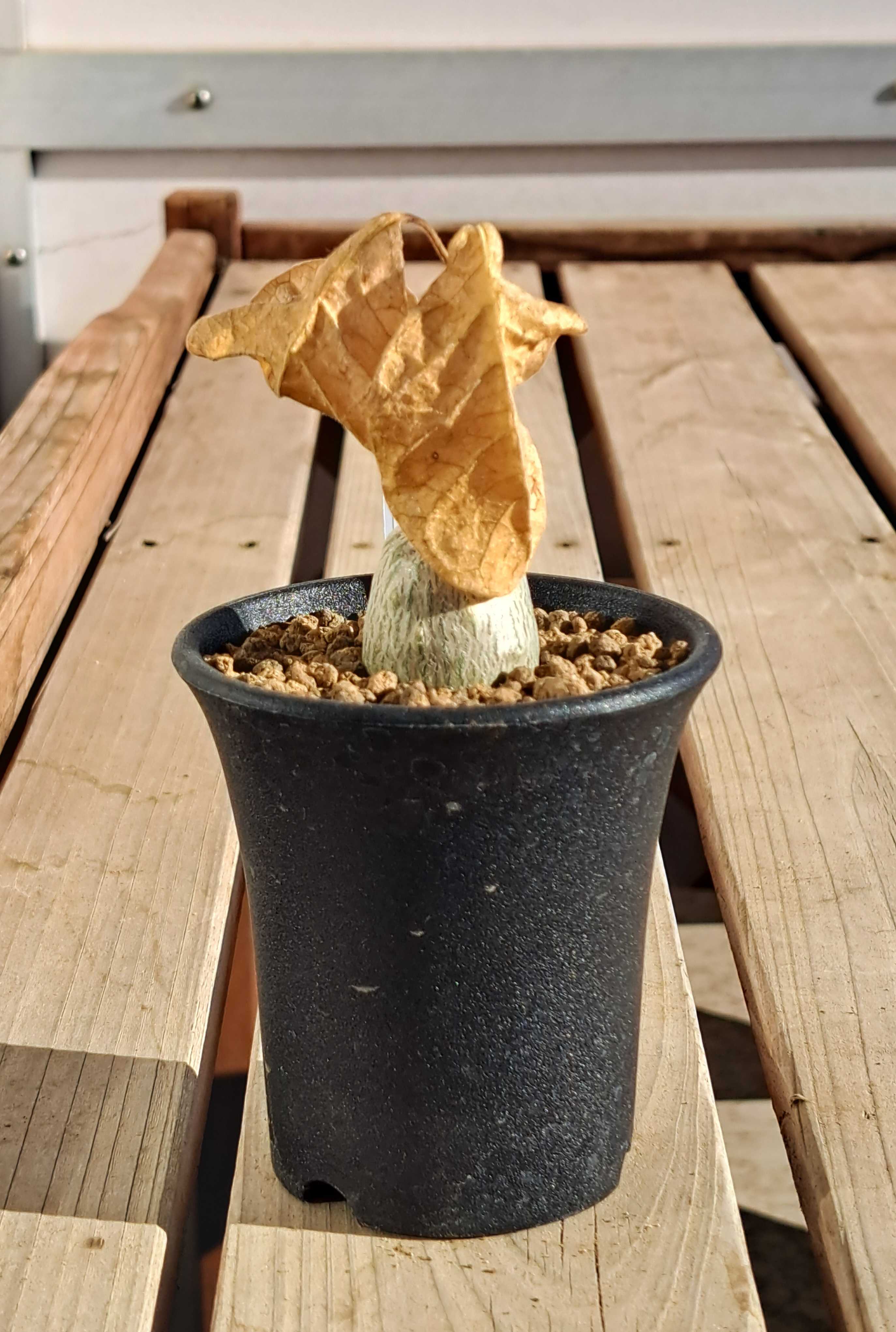 今年はコーデックスをたくさん買った。 一年目でまだ性質が分からないものが多く、用心のため室内置きにしているが様子はどうだろう。 さっそく見てみる。 マテレア・シクロフィラ。 ![]() すっかり葉が枯れた。 さみしくなったが塊根があるからいいのだ。 ![]() コルクのような質感の塊根。 他とは違う独特の雰囲気。 もう一個マテレア・シクロフィラ。 ![]() コイツも丸坊主。 冬になると葉を枯らし春になると出すパターンなのだろう。 この手のタイプは多い。 ![]() 春まではこのままだろうね。 何月に動き出すか? 種によって様々だから予想がつかない。 ゲラルダンサス・マクロリザス。 ![]() コイツもすっかり丸坊主。 ワサワサだった葉がなくなるとさみしいもんだ。 でも塊根は健在。 ![]() これがあるからいいんだよね。 マッソニアとかウンビリクスとかの球根植物は休眠期になると地上部全部枯れて何もなくなるからね。 それに比べればいい方だ。 あれ? ![]() あれあれ? 芽が出てるぞ。 ツルの途中、節のところから。 室内のさほど日が当たらないところに置いているが、それでも成長しちゃうの? よく見ると芽はあちこちから出ている。 ![]() 4か所ぐらいか? コレ、冬でも育つんじゃないの? フィカス・ペティオラリス。 ![]() 今最後の一枚が枯れつつあるところ。 ![]() 冬だねえ。 でも塊根は、 ![]() 内部が太ってきているのか表皮に亀裂が入り内側の緑色が見えている。 来年はひとまわり大きくなるかもしれないね。 楽しみだ。 フォッケア・マルチフローラ。 ![]() 枯れ葉~。 邪魔で塊根が見えないから取っちゃえ。 ![]() 塊根は元気そう。 近くで見るとミドリの島が模様みたいでいいじゃないか。 春までゆっくり休んでくれ。 暖かくなったらまた成長してくれよ。 コーデックス:マテレア シクロフィラ 実生*M 塊根幅4.5cm コーデックス:マテレア シクロフィラ 実生*S 塊根幅2.5cm 【お試し】 フィカス(ペティオラリス)4号 白色 プラスチック鉢(バークチップ) 赤ウンべ 赤ウンベラータ フィカスペティオラリス プラ鉢 苗 苗木 白 ホワイト 丸 4寸 12cm 観葉植物 植物 フィカス(ペティオラリス) 茶色 モスポット シリンダー型 陶器鉢(天然砕石) 赤ウンべ 赤ウンベラータ フィカスペティオラリス 鉢植え 鉢 素焼 テラコッタ 茶 ブラウン 丸 丸形 観葉植物 植物 送料無料 育て方カード ★【現品・現物】Fockea multiflora(フォッケア・ムルチフローラ)(フォッケア・マルチフローラ)9号 3G番 お気に入りの記事を「いいね!」で応援しよう