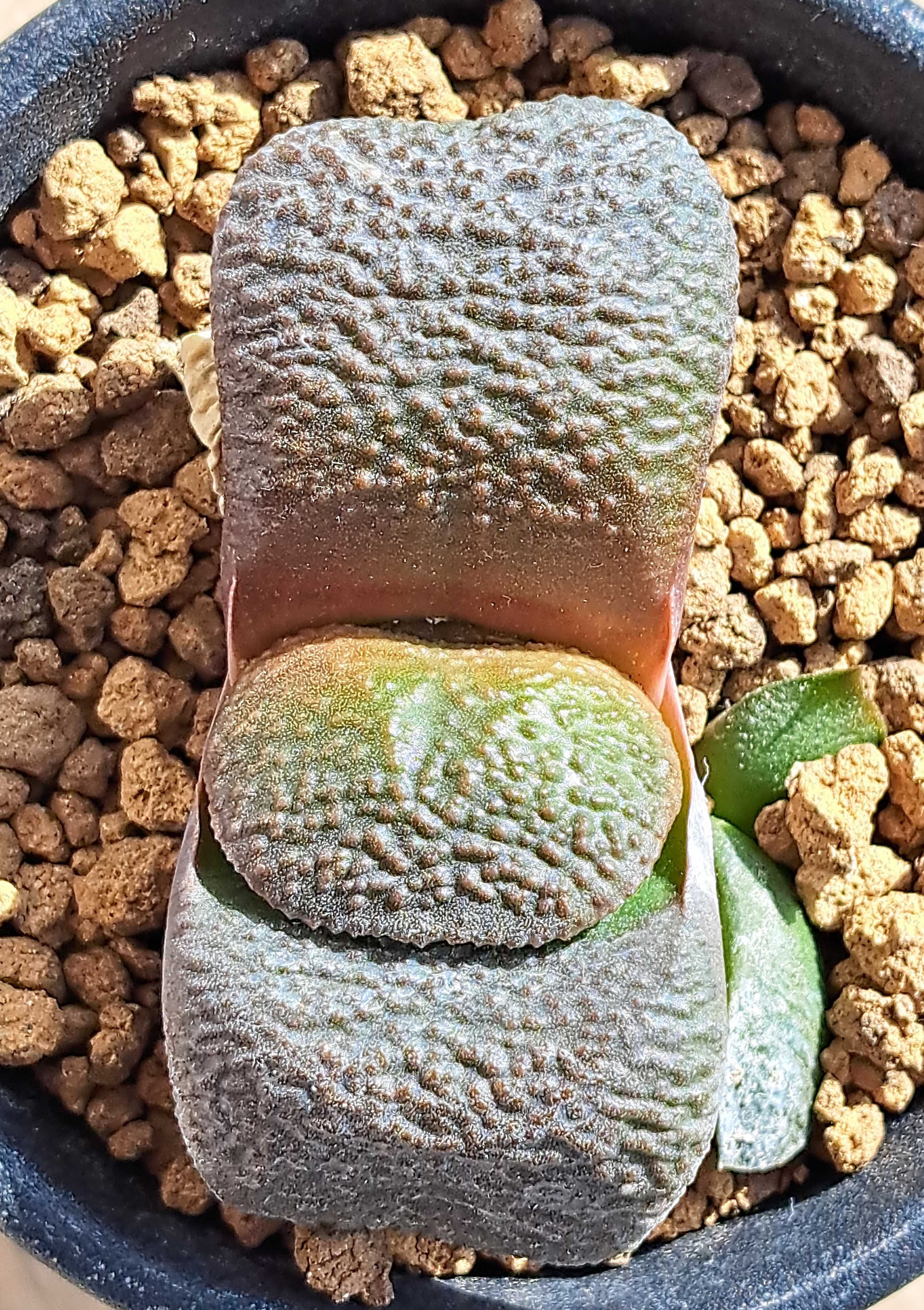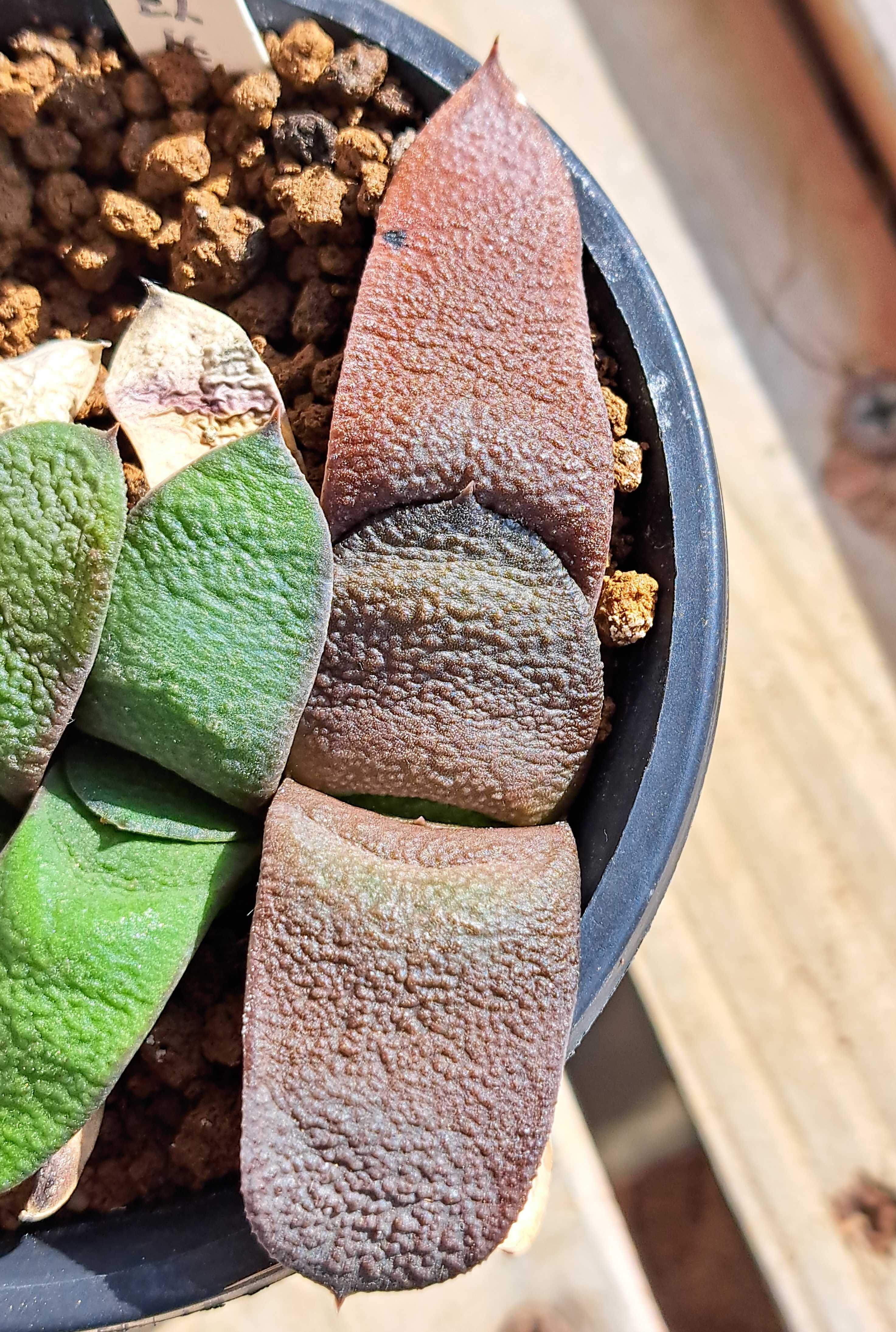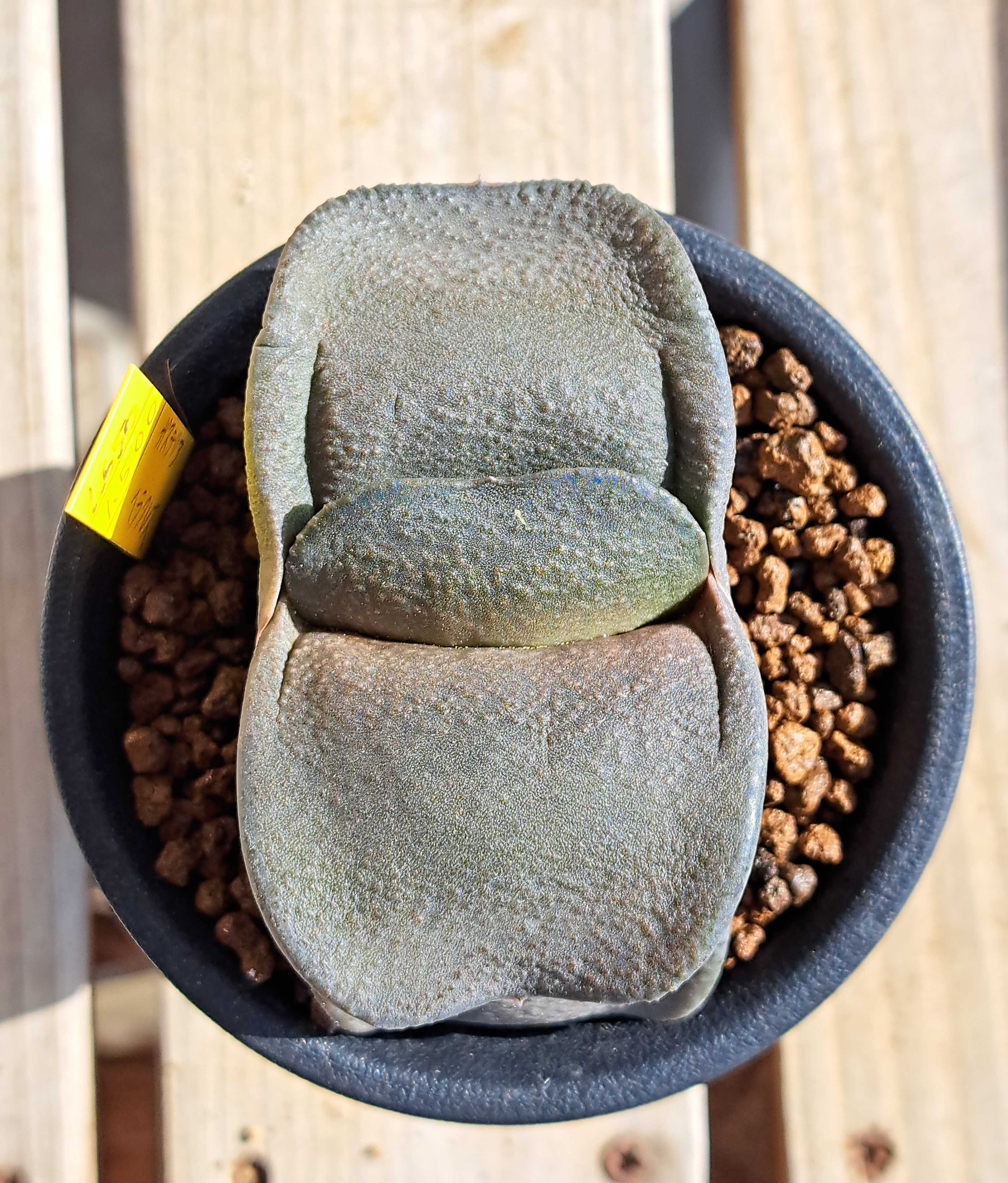 ガステリア臥牛。 好きでたくさん育てている。 頑強で暑さにも寒さにも強い。 傷むことも少なく腐ったりすることもほとんどない。 実に育てやすい植物なのだが、冬のこの時期はあまり得意ではないようだ。 これは室内窓際で育てている臥牛実生。 ![]() 健康そうな色をしている。 一方、外置きの実生臥牛。 ![]() 赤いというか茶色というか、とにかく色が悪い。 この鉢、実は2週間ほど前までは室内に置いていた。 そのときは上のヤツ同様ミドリ一色だったのだが、外に出すと徐々にくすみこうなった。 去年もそうだった。 臥牛は寒い時期外に出しっぱなしだと赤くなるのだ。 赤くなるだけではない。 葉のふっくら感もなくなる。 寒さで根が活動できず水を吸わなくなるのだろう。 だがそんな状態でも室内に入れると元に戻る。 これは上の鉢と入れ替えで外から室内に取り込んだもの。 ![]() 取り込んで2週間。 すでに4個がミドリに戻っている。 ![]() 一個だけまだ赤いがミドリに戻る兆候は出ている。 そのうちミドリになりふっくら感も戻るだろう。 じゃあ外なんか出さずに最初から室内で育てればいいじゃねえかよ。 いや、それもまた問題があるのだ。 この臥牛、徒長している。 ![]() 室内に置いていたらこうなったのだ。 こうなるともう元には戻らない。 新しい葉が出て成長し徒長葉が目立たなくなるまで数年かかる。 この株、徒長が発覚したあとすぐに外に出したのだが時すでに遅し、上の葉が妙に細長いカタチになってしまった。 なのでいまだずっと外に出しっぱなしの臥牛も多い。 コレなんかも徒長させたくないので室内には入れていない。 ![]() 良形の臥牛。 幅広短葉えくぼあり縁には溝もある。 ![]() 今まで一度も室内に入れたことはない。 当然赤くはなるが枯れたり腐ったりはしない。 耐寒性はあるのだ。 ヘラクレス。 ![]() コイツもずっと外に出しっぱなしのためやや赤くなっている。 ただ、これぐらいなら大丈夫だろう。 室内で徒長するよりだいぶマシだ。 冬はこれでいいのだ。 春になりまた元気に成長してくれればそれでいい。 多肉植物:ガステリア 臥牛*幅5cm 多肉植物:ガステリア 臥牛 吉積B*幅6cm 多肉植物:ガステリア 西村臥牛*S 幅4cm ガステリア・美鈴の富士 9cm鉢 カクタス長田 斑入り品種 多肉植物 ススキノキ科 珍奇植物 サキュレントプランツ ユリ科 アロエ・ハオルチア 多肉植物:ガステリア ラウリンソニー*幅8cm 現品!一品限り お気に入りの記事を「いいね!」で応援しよう