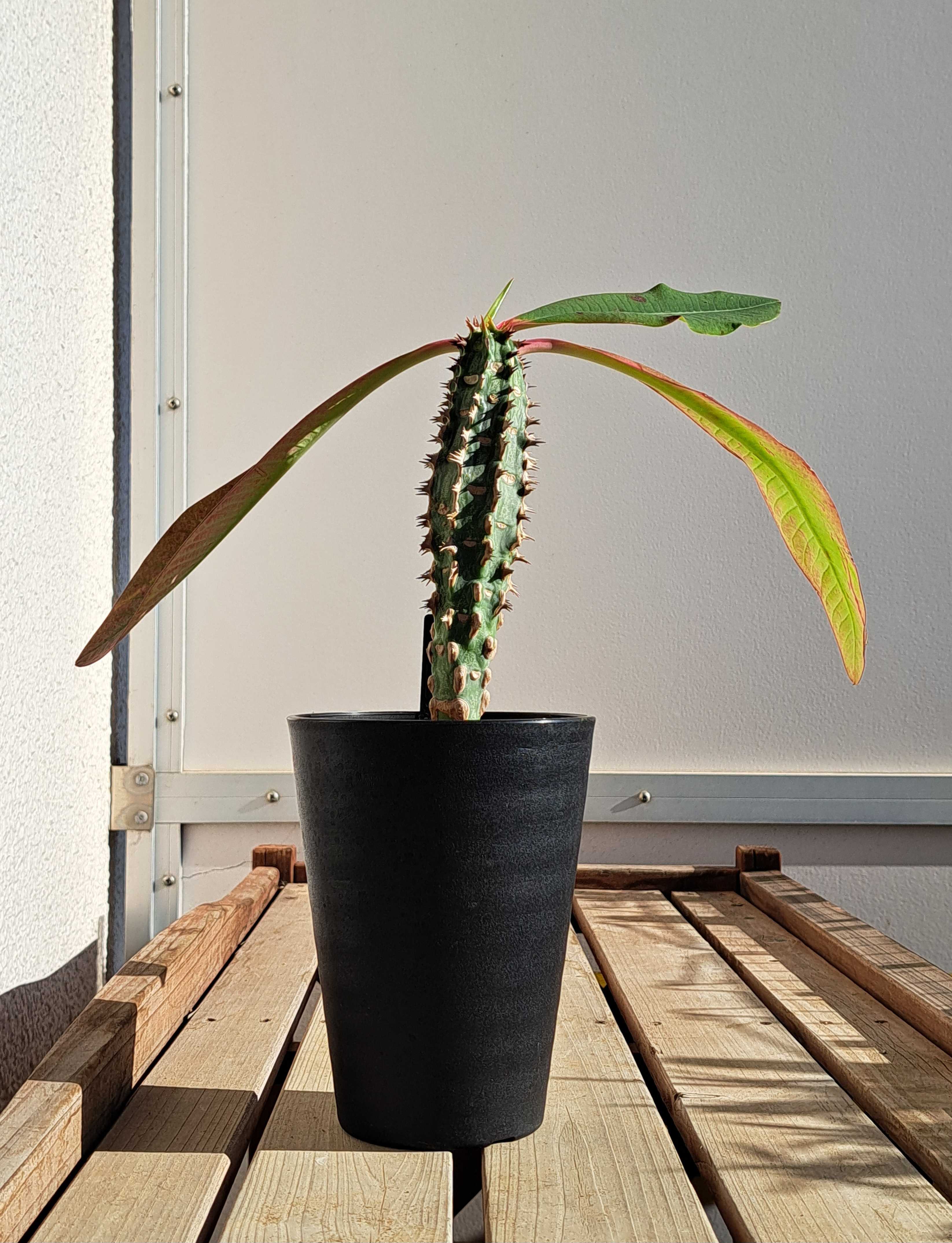 同じ室内置きだが葉があるヤツとないヤツがいる。葉がないフィルミアナ・コロラータ。だいぶ前に葉が全部枯れ丸坊主。今はゆっくりと休んでいる…といったところか。一方、同じフィルミアナ・コロラータの葉があるヤツ。コイツも室内置きだが葉を枯らすことなくここまで来ている。一体何が違うのか。葉を枯らしたコロラータは室内窓際置き。葉があるコロラータは室内の中央、窓からは3メートルほど離れた場所に置いている。これが違いだ。同じ室内だが窓に近いほど夜間は気温が下がる。おそらくそこで差が出ているのではないか。葉があるコロラータはワサワサ。しかも、ただ葉が残っているだけではない。新たな葉も出ているのだ。わずか3メートル奥に置いただけでこうも違うか。しかも奥には日が差さない。窓際の方には若干だが日が差すのだ。それでも奥の方が良いのか?葉がないボンバックス。ボンバックスは4鉢あるがうち3鉢はこんな具合。毎年のことだ。不思議はない。しかし去年買ったヤツだけは葉を枯らさない。何が違うのか。コイツも少し前まで窓際ではなく部屋のやや奥に置いていたのだ。奥といってもフィルミアナ・コロラータみたいに3メートルも奥ではない。窓から1メートルぐらいのところだ。それでも窓際の冷気は当たらないためか葉を枯らさずにここまで来ている。しかし少し前、2週間前ぐらいか、に窓際のラックに移したところ変化が起きた。葉が枯れ始めたのだ。しかも窓に近い方だけ。その差20センチほどだがその差で寒さに違いがあるのだろう。葉があるヤツ。ヤトロファ・ポダグリカ。葉はあるがデカくはなっていない様子。しかも、新しく出始めていた葉が枯れた。寒かったのか?実はコイツ部屋の奥3メートルのところから窓際に移していたのだ。それが原因だろう。でも日には当ててやりたい。奥3メートルでは全く日は当たらない。しかし成長点は活性化している。画像中央のぶつぶつは花芽だろう。その横には複数箇所葉が出始めている様子。これから暖かくなるにつれ大きくなっていくのではないだろうか。観葉植物/フィルミアナ:コロラータ 3号鉢植え観葉植物/フィルミアナ:コロラータ 3.5号硬質ポット観葉植物/プセウドボンバックス:エリプチクム(実生3年株) 3号鉢植え観葉植物/プセウドボンバックス:エリプチクム(実生4年株) 3号スクエア鉢観葉植物/ヤトロファ:ポダグリカ珊瑚油桐(さんごあぶらぎり)黄花 5号鉢植え