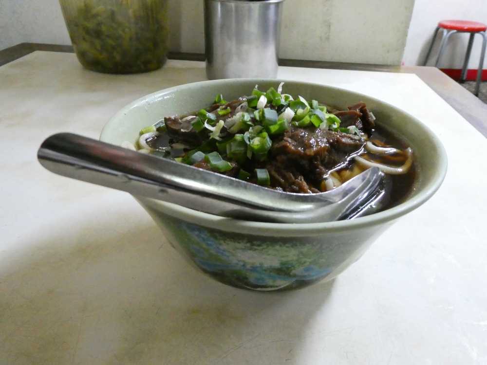 ![]() その後に資料整理をしなくてはならないので、その前に藍位hを一杯食おう。歩数も溜めたいため、少々距離のある西門町の裏に来た。古い建物がいっぱいある界隈に進んだら、小呉牛肉麺が見えた。この界隈では建宏や富宏などの同じ系譜の人気店があるが、小呉は異なる経営と言われるが評判もこれらの有名店に負けていない。ランチタイムの混雑時間帯に過ぎたのですぐ着席できた。牛肉麺小を注文。 ![]() しばらく待ったらご対麵。経営が異なるが、丼のタイプが似ている。 ![]() タレが結構濃いめだが出汁の旨味もしっかりしているのでなかなかハイレベルな牛肉スープだ。小だが麺の量が結構あり、150gを超えたのではないか。平打ち中太麺は厚みもあり、スープとの絡めもいいしコシもある。味付けのコイメの牛肉はほかのお店に比べやや固めだが歯ごたえがよい。値段からみれば6個でかつ厚手の肉を載せてくれたとは有り難い。辛味がないので、途中に無料の辛味をかけ、辛味を増した。 おいしかったね。同じ牛肉麺の専門店で24時間営業という同じ経営タイプだが、周りのお店との差別化ができた味だ。この周辺のお店を制覇しなくてはならないね。ご馳走様。 お気に入りの記事を「いいね!」で応援しよう