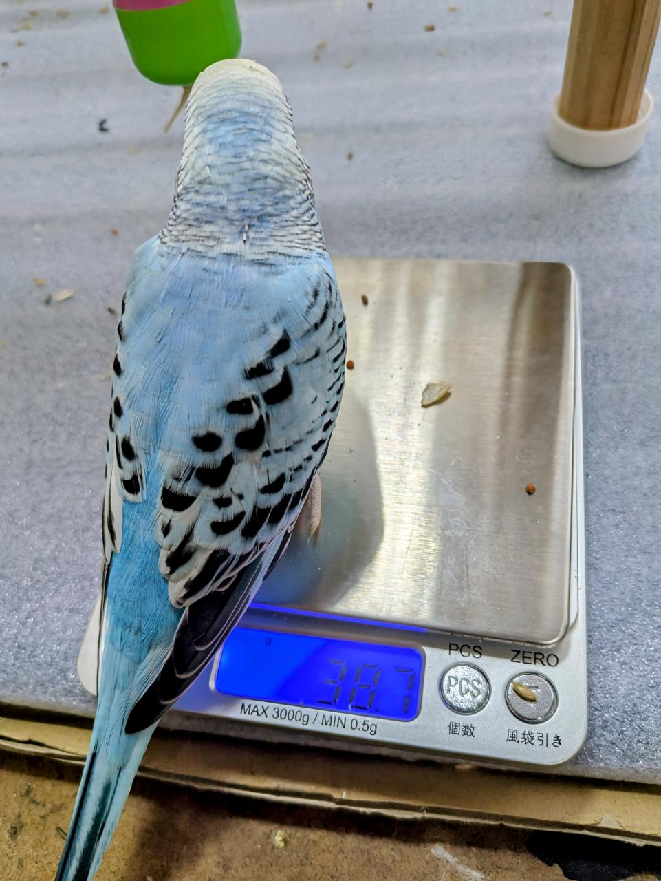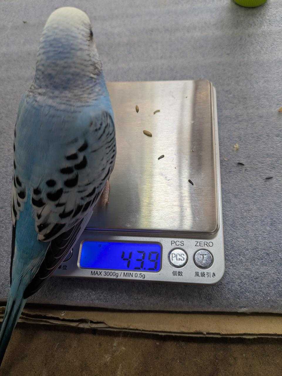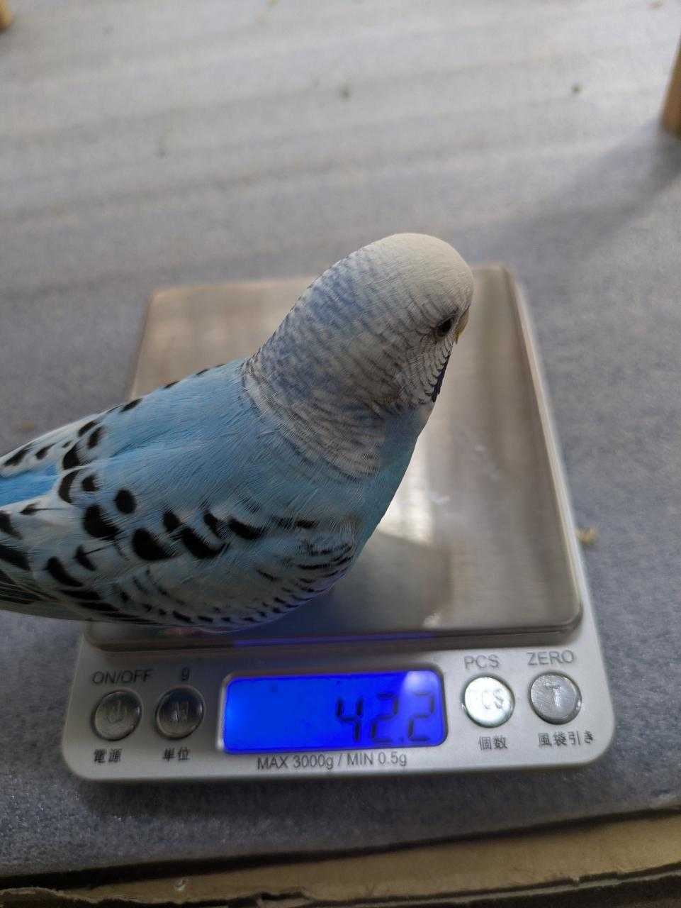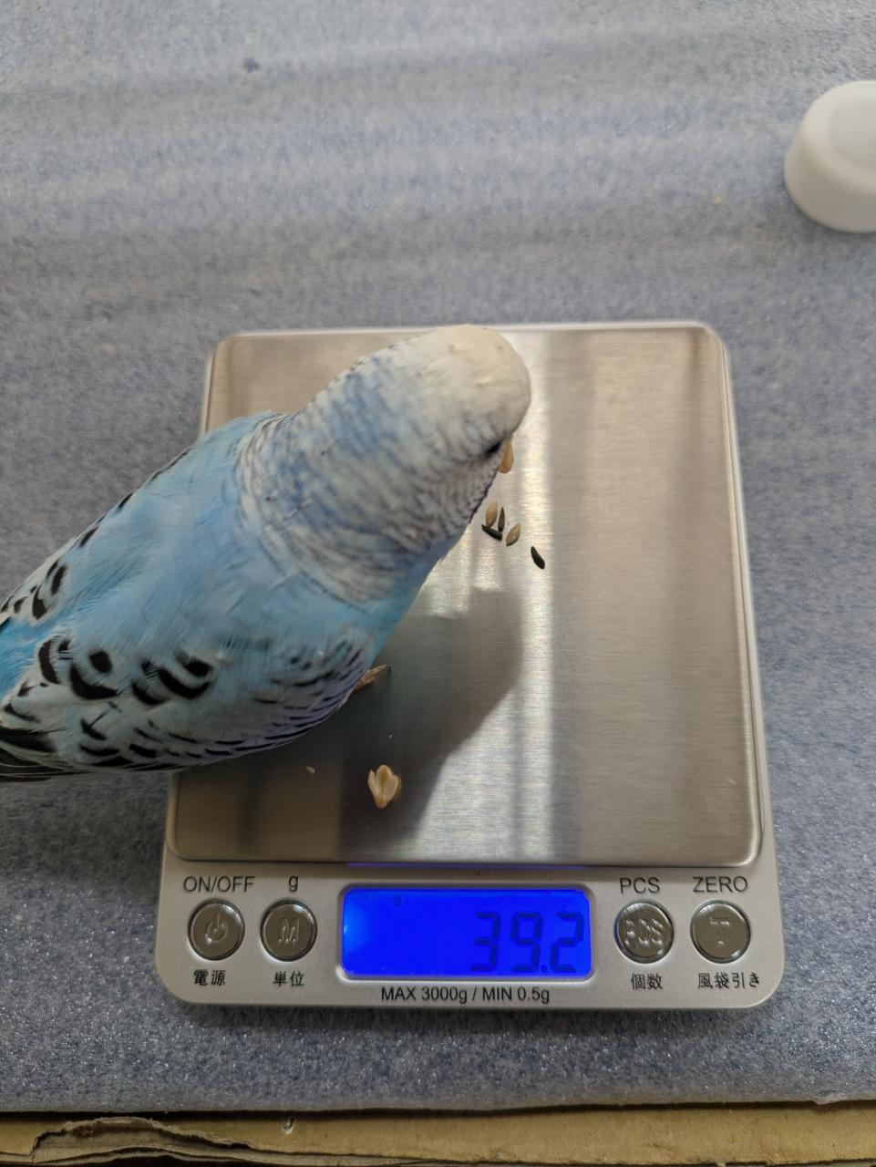 減り続けていた体重もそろそろ落ち着いてきたようです。換羽もだいぶ抜け羽毛も減ってきて換羽期も終盤なのでしょうか。39g台。いつもこのあたりが体重の下限で48g台が体重の上限のように思います。このように10gの体重の増減があってもいたってぴぃちゃんは変わらず元気で過ごしています。おそらく緩やかな体重の上下限はそれほど大きな負担になっていないように思われます。病気などではやはり急激な増加や減少が起こるのでしょう。毎日体重を計ることでこうした変化も見過ごすことなく察知することも出来ますね。このところぴぃちゃんの部屋の温度も夕方になると14℃辺りまで下がって来ましたのでなんとかケージに戻そうと奮闘するのですが逃げ回るは口を大きく開けて噛みついてくるはでにっちもさっちも行きません。エアコンがなくて暖房はガスファンヒーターなのですが夜中じゅう点けっぱなしにしておくことも出来ません。おそらく深夜や朝方はもうすでに10℃を下回ると思いますのでなんとか夜だけでもケージに戻したいのですが・・・。(ケージには鳥さん用のヒーターがあり20℃設定にしています。)苦戦中です!!家のぴぃちゃんですが、現在1歳と3ヶ月になりますが目の周りのアイリスリングがあるかないかぐらいの程度でジィーっと見るとあるようなないような・・。鼻の上のロウ膜も薄っすら青みが掛かったり肌色ぽかったりしてオスなのかメスなのかもよく分かりませんが、聞いたところによると1歳を過ぎて卵を産まなかったらオスだとか・・。にほんブログ村にほんブログ村