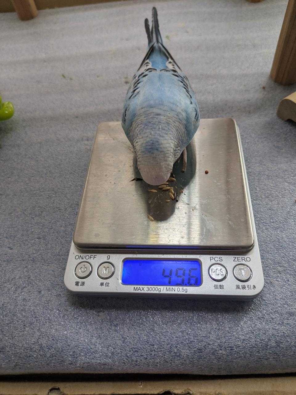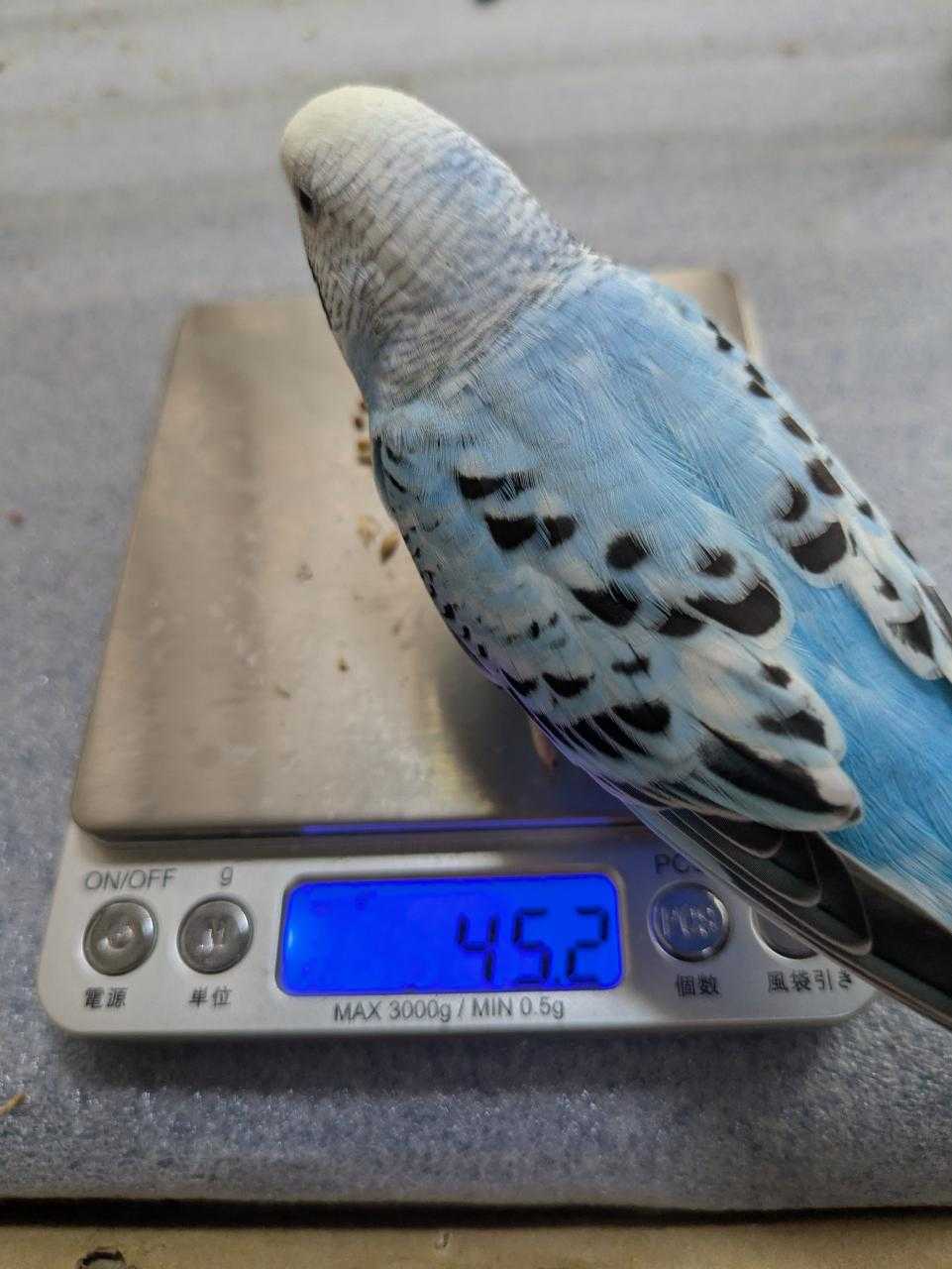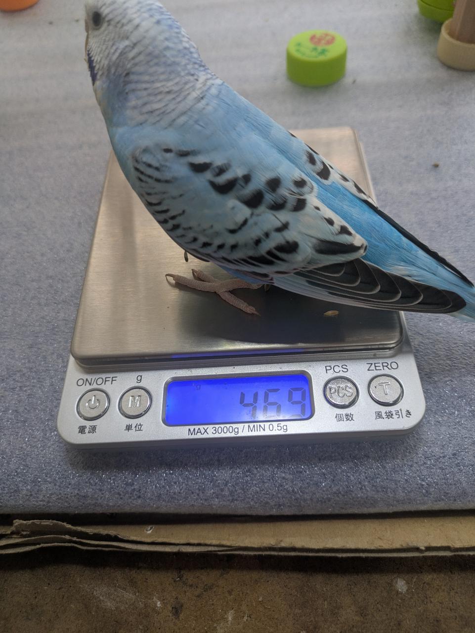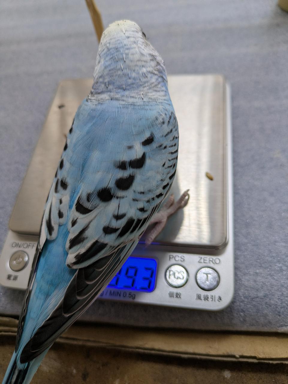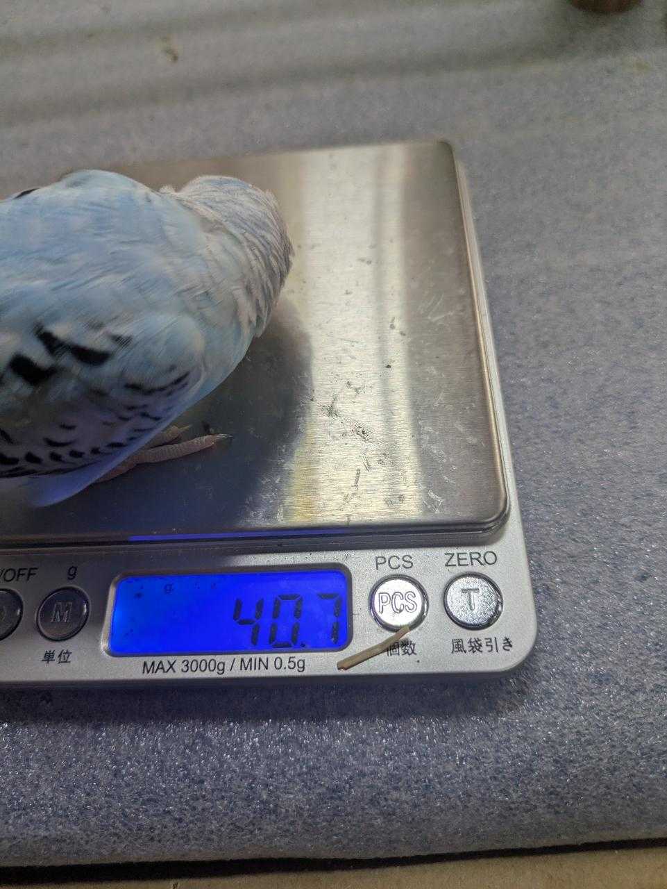 減り続けていた体重もそろそろ落ち着いてきたようです。換羽もだいぶ抜け羽毛も減ってきて換羽期も終盤なのでしょうか。39g台。いつもこのあたりが体重の下限で48g台が体重の上限のように思います。このように10gの体重の増減があってもいたってぴぃちゃんは変わらず元気で過ごしています。おそらく緩やかな体重の上下限はそれほど大きな負担になっていないように思われます。病気などではやはり急激な増加や減少が起こるのでしょう。毎日体重を計ることでこうした変化も見過ごすことなく察知することも出来ますね。このところぴぃちゃんの部屋の温度も夕方になると14℃辺りまで下がって来ましたのでなんとかケージに戻そうと奮闘するのですが逃げ回るは口を大きく開けて噛みついてくるはでにっちもさっちも行きません。エアコンがなくて暖房はガスファンヒーターなのですが夜中じゅう点けっぱなしにしておくことも出来ません。おそらく深夜や朝方はもうすでに10℃を下回ると思いますのでなんとか夜だけでもケージに戻したいのですが・・・。(ケージには鳥さん用のヒーターがあり20℃設定にしています。)苦戦中です!!家のぴぃちゃんですが、現在1歳と3ヶ月になりますが目の周りのアイリスリングがあるかないかぐらいの程度でジィーっと見るとあるようなないような・・。鼻の上のロウ膜も薄っすら青みが掛かったり肌色ぽかったりしてオスなのかメスなのかもよく分かりませんが、聞いたところによると1歳を過ぎて卵を産まなかったらオスだとか・・。にほんブログ村にほんブログ村
