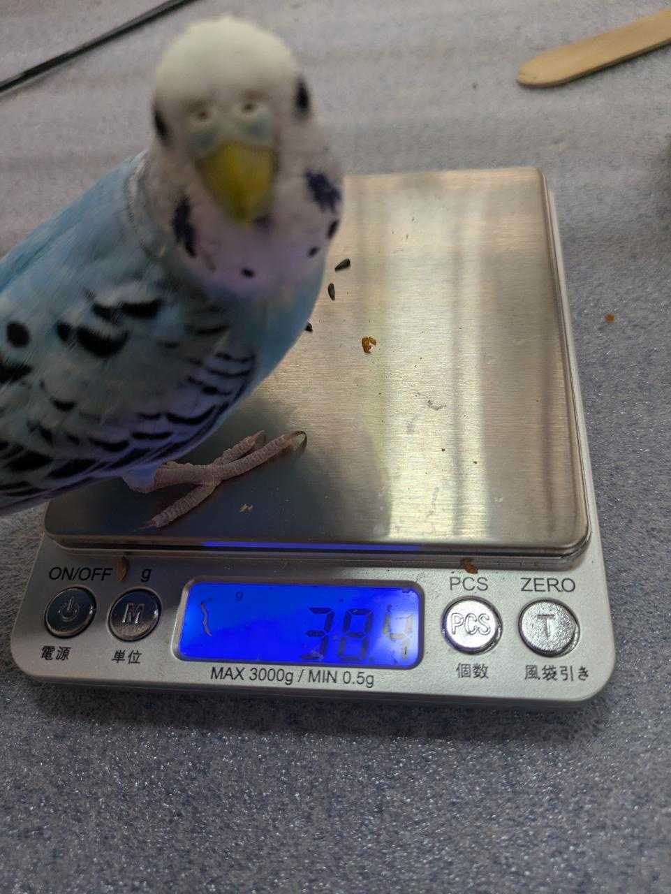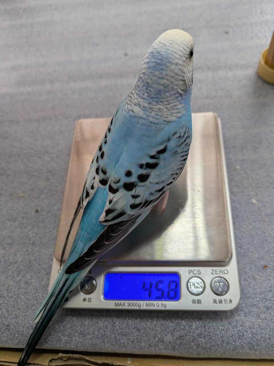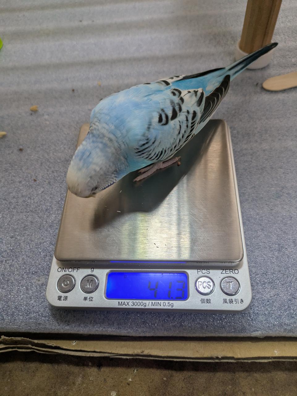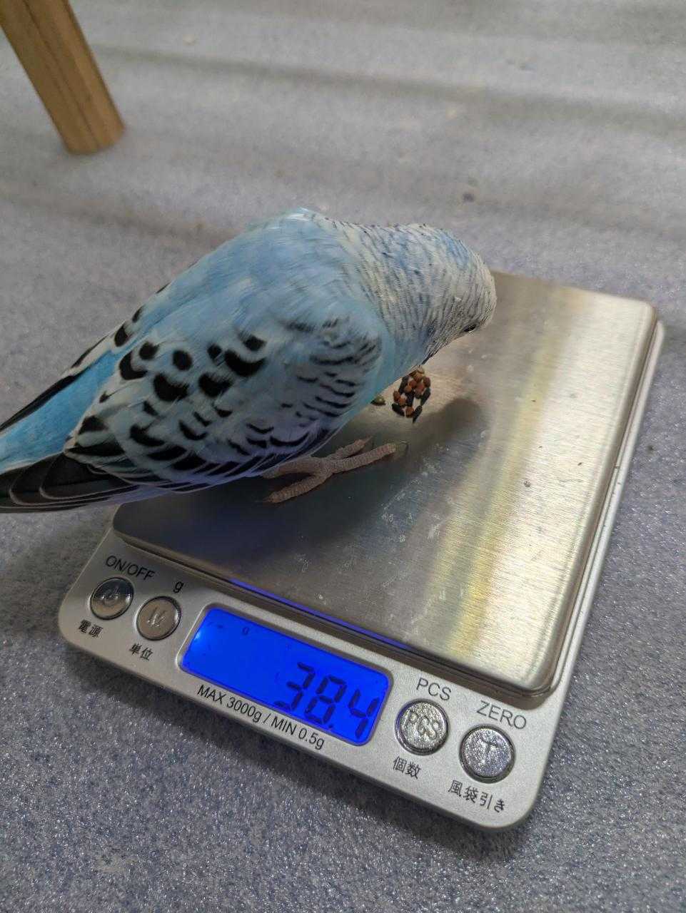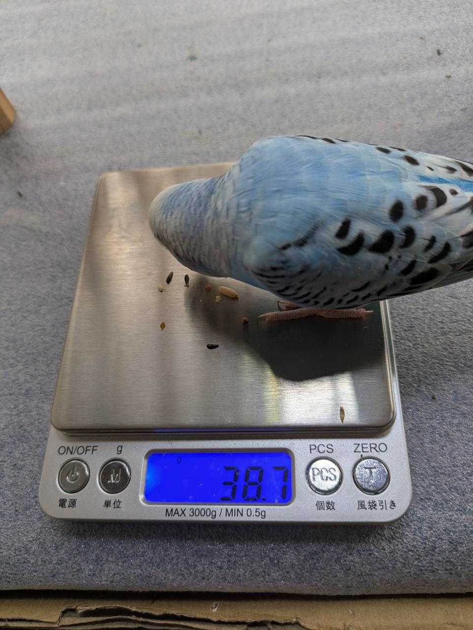減り続けていた体重もそろそろ落ち着いてきたようです。換羽もだいぶ抜け羽毛も減ってきて換羽期も終盤なのでしょうか。39g台。いつもこのあたりが体重の下限で48g台が体重の上限のように思います。このように10gの体重の増減があってもいたってぴぃちゃんは変わらず元気で過ごしています。おそらく緩やかな体重の上下限はそれほど大きな負担になっていないように思われます。病気などではやはり急激な増加や減少が起こるのでしょう。毎日体重を計ることでこうした変化も見過ごすことなく察知することも出来ますね。このところぴぃちゃんの部屋の温度も夕方になると14℃辺りまで下がって来ましたのでなんとかケージに戻そうと奮闘するのですが逃げ回るは口を大きく開けて噛みついてくるはでにっちもさっちも行きません。エアコンがなくて暖房はガスファンヒーターなのですが夜中じゅう点けっぱなしにしておくことも出来ません。おそらく深夜や朝方はもうすでに10℃を下回ると思いますのでなんとか夜だけでもケージに戻したいのですが・・・。(ケージには鳥さん用のヒーターがあり20℃設定にしています。)苦戦中です!!家のぴぃちゃんですが、現在1歳と3ヶ月になりますが目の周りのアイリスリングがあるかないかぐらいの程度でジィーっと見るとあるようなないような・・。鼻の上のロウ膜も薄っすら青みが掛かったり肌色ぽかったりしてオスなのかメスなのかもよく分かりませんが、聞いたところによると1歳を過ぎて卵を産まなかったらオスだとか・・。にほんブログ村にほんブログ村