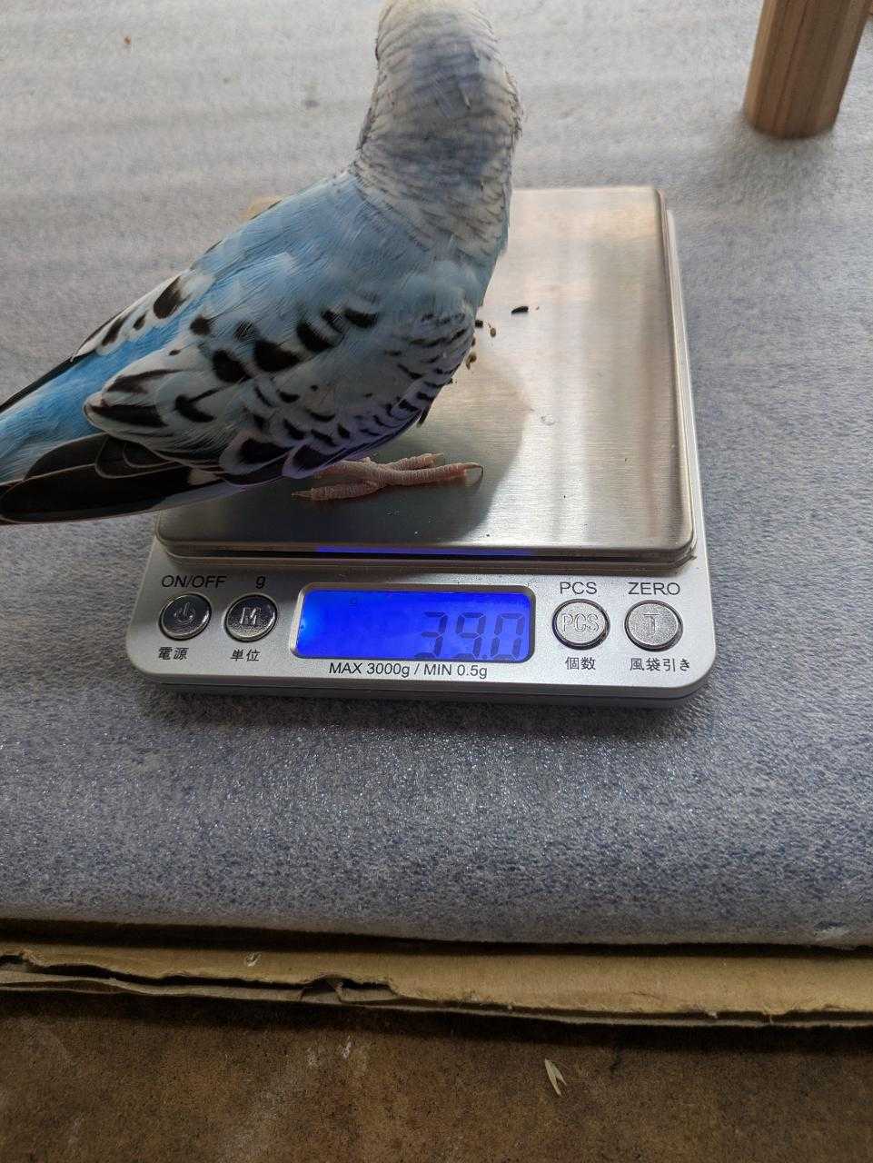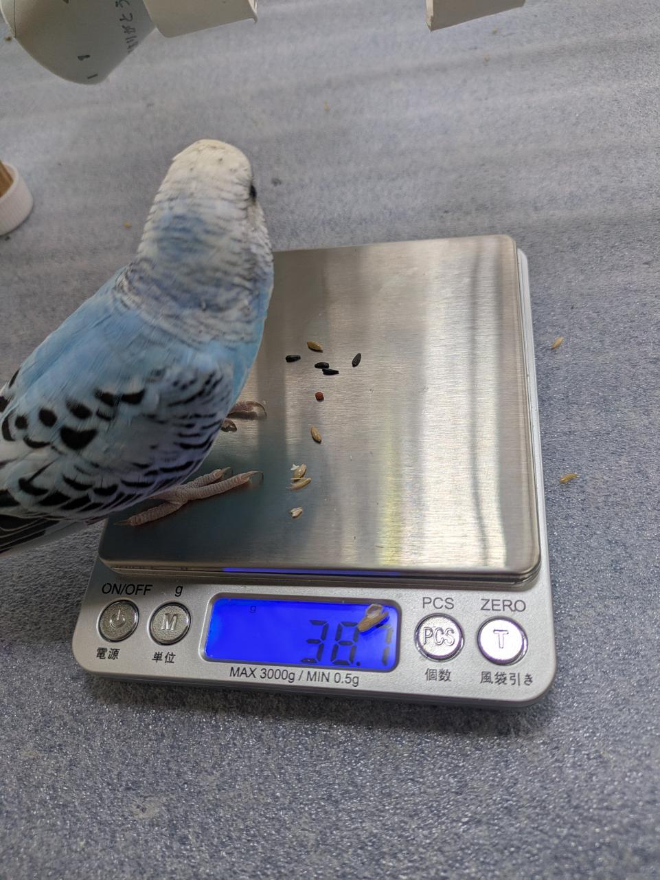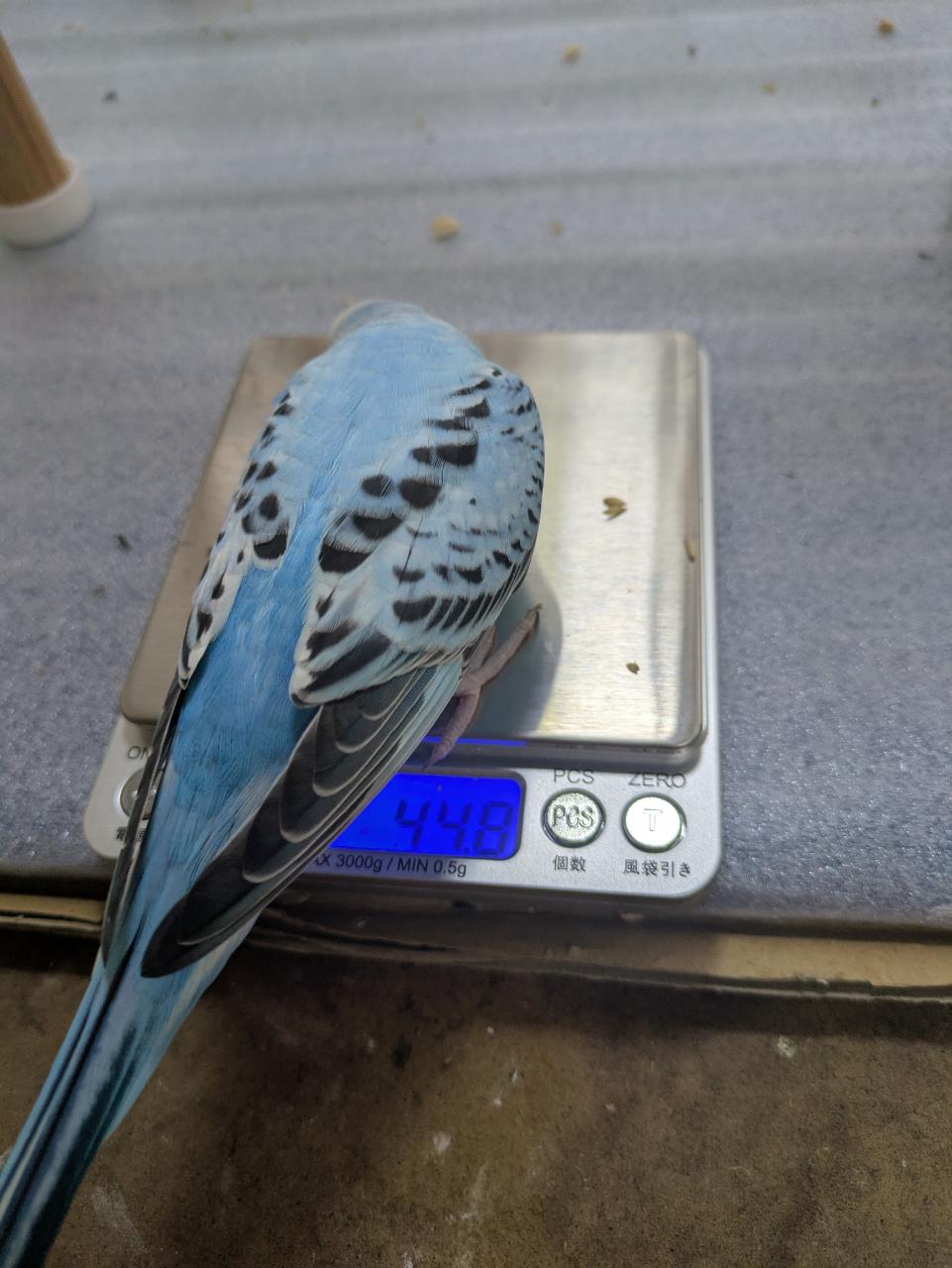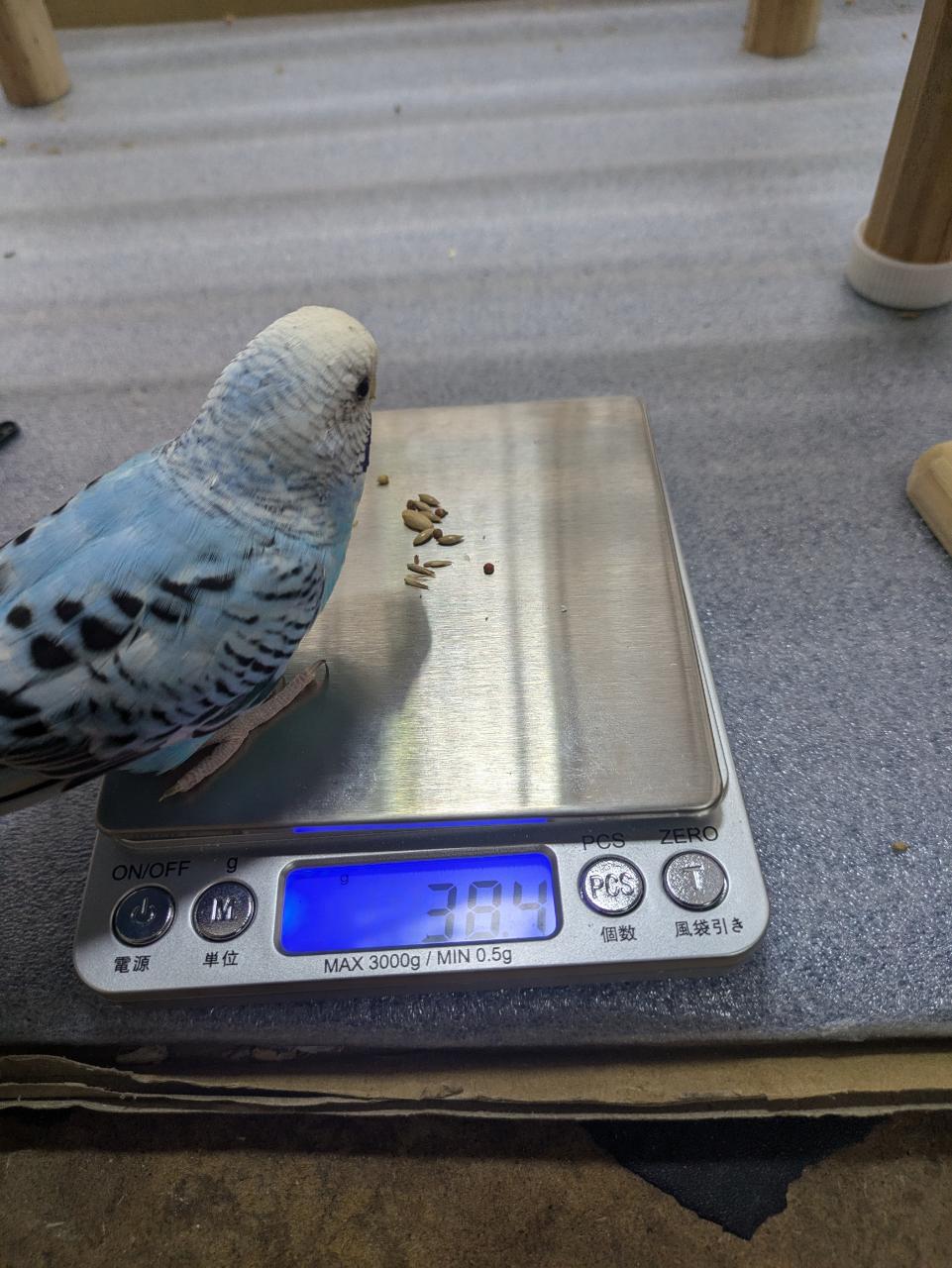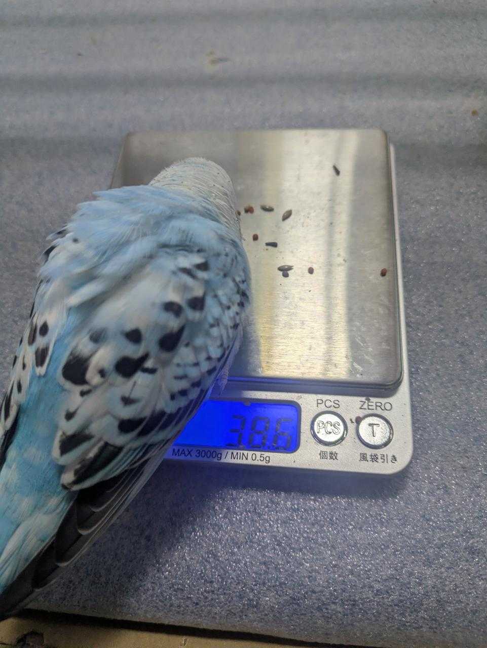 減り続けていた体重もそろそろ落ち着いてきたようです。換羽もだいぶ抜け羽毛も減ってきて換羽期も終盤なのでしょうか。39g台。いつもこのあたりが体重の下限で48g台が体重の上限のように思います。このように10gの体重の増減があってもいたってぴぃちゃんは変わらず元気で過ごしています。おそらく緩やかな体重の上下限はそれほど大きな負担になっていないように思われます。病気などではやはり急激な増加や減少が起こるのでしょう。毎日体重を計ることでこうした変化も見過ごすことなく察知することも出来ますね。このところぴぃちゃんの部屋の温度も夕方になると14℃辺りまで下がって来ましたのでなんとかケージに戻そうと奮闘するのですが逃げ回るは口を大きく開けて噛みついてくるはでにっちもさっちも行きません。エアコンがなくて暖房はガスファンヒーターなのですが夜中じゅう点けっぱなしにしておくことも出来ません。おそらく深夜や朝方はもうすでに10℃を下回ると思いますのでなんとか夜だけでもケージに戻したいのですが・・・。(ケージには鳥さん用のヒーターがあり20℃設定にしています。)苦戦中です!!家のぴぃちゃんですが、現在1歳と3ヶ月になりますが目の周りのアイリスリングがあるかないかぐらいの程度でジィーっと見るとあるようなないような・・。鼻の上のロウ膜も薄っすら青みが掛かったり肌色ぽかったりしてオスなのかメスなのかもよく分かりませんが、聞いたところによると1歳を過ぎて卵を産まなかったらオスだとか・・。にほんブログ村にほんブログ村