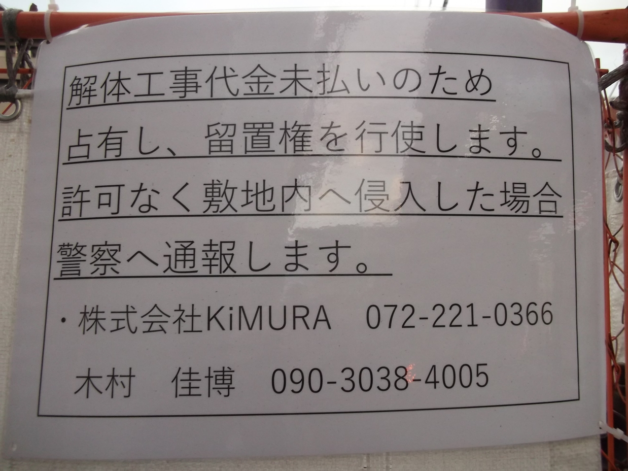 小森ビル跡地の留置権・占有 状態を考える公益目的のサイトです ![]() 小森ビル 跡地(〒617-0823 京都府長岡京市長岡2丁目1) 解体工事代金未払いのため 占有し、留置権を行使します。 許可なく敷地内へ侵入した場合 警察へ通報します。 ・株式会社KiMURA 072-221-0366 木村佳博 090-3038-4005 https://plaza.rakuten.co.jp/sevendorinagaoka/ https://sevendorinagaokakyosi.web.fc2.com/ ![]() 小森ビル 跡地(〒617-0823 京都府長岡京市長岡2丁目1) 解体工事代金未払いのため 占有し、留置権を行使します。 許可なく敷地内へ侵入した場合 警察へ通報します。 ・株式会社KiMURA 〒590-0953 大阪府堺市堺区甲斐町東1丁1-21 072-221-0366 木村佳博 090-3038-4005 木村組ホームページ https://kimura-gumi.jp/ 〒590-0953 大阪府堺市堺区甲斐町東1丁1番21号 TEL:072-221-7779/FAX:072-221-7676 代表者 代表取締役 小森保人 創業:昭和36年4月 設立:平成23年6月8日 https://kimura-gumi.jp/company.php 木村組フェイスブック https://ja-jp.facebook.com/japankimuragumi/ ![]() 小森ビル 跡地(〒617-0823 京都府長岡京市長岡2丁目1) 解体工事代金未払いのため 占有し、留置権を行使します。 許可なく敷地内へ侵入した場合 警察へ通報します。 ・株式会社KiMURA 〒590-0953 大阪府堺市堺区甲斐町東1丁1-21 072-221-0366 木村佳博 090-3038-4005 木村組ホームページ https://kimura-gumi.jp/ 〒590-0953 大阪府堺市堺区甲斐町東1丁1番21号 TEL:072-221-7779/FAX:072-221-7676 代表者 代表取締役 小森保人 創業:昭和36年4月 設立:平成23年6月8日 https://kimura-gumi.jp/company.php 木村組フェイスブック https://ja-jp.facebook.com/japankimuragumi/ ![]() 小森ビル 跡地(〒617-0823 京都府長岡京市長岡2丁目1) 解体工事代金未払いのため 占有し、留置権を行使します。 許可なく敷地内へ侵入した場合 警察へ通報します。 ・株式会社KiMURA 〒590-0953 大阪府堺市堺区甲斐町東1丁1-21 072-221-0366 木村佳博 090-3038-4005 木村組ホームページ https://kimura-gumi.jp/ 〒590-0953 大阪府堺市堺区甲斐町東1丁1番21号 TEL:072-221-7779/FAX:072-221-7676 代表者 代表取締役 小森保人 創業:昭和36年4月 設立:平成23年6月8日 https://kimura-gumi.jp/company.php 木村組フェイスブック https://ja-jp.facebook.com/japankimuragumi/ 占有権(民法180条~) https://ja.wikipedia.org/wiki/%E5%8D%A0%E6%9C%89%E6%A8%A9 留置権(民法265条~) https://ja.wikipedia.org/wiki/%E7%95%99%E7%BD%AE%E6%A8%A9 真知宇 先生の無料相談ページ★無料メール相談★無料電話相談 https://machiu.is-mine.net/consulting.htm 増田真知宇(ますだまちう)先生 公式ウェブサイト(連絡先 携帯番号・メールアドレス有り) https://matiu.web.fc2.com/ 真知宇 先生 ライン(Line)友達申請&連絡しよう! https://linevoom.line.me/user/_dUN8LIek8BlRZsK5_uNjAedlEiVAoMysI6Ka7Uo 増田真知宇(ますだまちう)先生 公式ツイッター(フォロワーになろう!連絡先 携帯番号&メアド有!いいね しよう!リツイートしよう!) https://twitter.com/machiumasuda 増田真知宇 先生を応援するツイッター 増田真知宇 先生 公式フェイスブック(フォローしよう!) https://www.facebook.com/machiu.masuda 増田真知宇 先生 公式インスタグラム(フォロワーになろう!「いいね」しよう!) https://www.instagram.com/machiumasuda/ 増田真知宇 先生を応援するインスタグラム https://www.instagram.com/masudamatiu/ 増田真知宇 先生の海上自衛隊幹部候補生学校 案内・自衛隊幹部候補生試験合格体験記 https://jieitaikanbu.exblog.jp/32467003/元 同志社高校写真部部長 増田真知宇 様の写真館 http://matiumasuda.web.fc2.com/index.html 増田真知宇政策研究会 寄付募集中 https://kifubosyu.exblog.jp/28560912/ 増田真知宇 先生への記事閲覧・写真など報酬振込先 https://journalistmachiu.exblog.jp/32787713/ フリーカメラマン 元 同志社高等学校写真部部長 増田真知宇 先生の報酬振込先 https://procameraman.exblog.jp/32824776/ 増田真知宇政策研究会 寄附募集中(1口5万円~年間30口まで) 増田真知宇 政策研究会ボランティア募集中https://machiu.is-mine.net/volunteer2013.html 便利屋 何でも屋 増田真知宇 先生への仕事依頼ページ(海外出張可・全国出張可) https://benriyakansai.exblog.jp/33085021/社長・経営者・人事部に朗報 増田真知宇 先生 転職先募集中 https://tenshoku2023.exblog.jp/32056350/