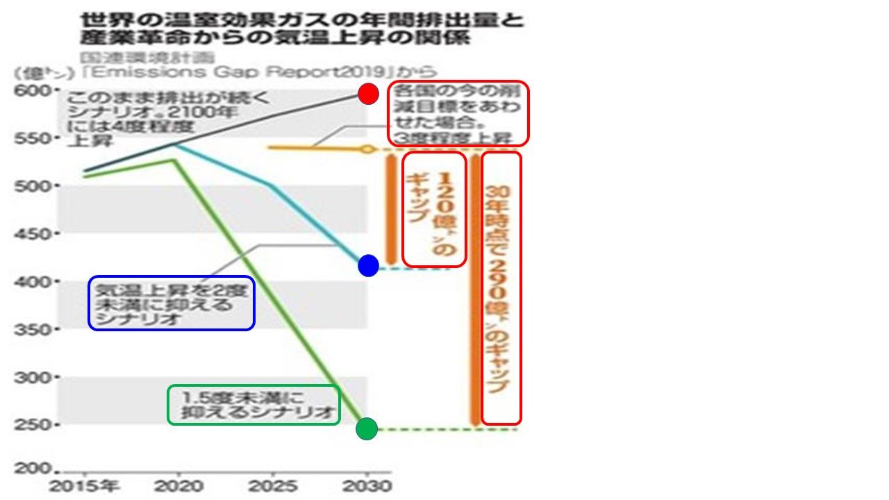 今年もよろしくお願いします。 12月に入ったというのにその滝は凍りついていなかった。8割以上が氷で覆われるグリーンランド。中心都市ヌークからボートで1時間ほど東にある高さ40メートルほどの滝は、通常なら10月中には完全に凍るという。(・・・) 北極圏は温暖化を先取りしている。世界の平均気温は産業革命前から約1度上昇したが、北極域では約3度に達する。白い氷や雪が解けて黒っぽい陸や海が顔を出すと、太陽光の反射率が減って熱がこもり、氷の融解が加速する。そんな増幅効果が働く。 極域の氷と、足元の異常気象はつながっている。 温暖化は私たちの家計をも脅かす。西日本豪雨などが相次いだ昨年度、気象災害による損害保険会社の保険金支払額は1兆5千億円を超えて過去最大に。今年度もこれに次ぐ1兆円規模になりそうだ。損保各社は今年10月、火災保険料を5~6%程度上げた。2021年1月にも再値上げの予定だ。 スウェーデンの環境活動家、グレタ・トゥンベリさん(16)に触発された若者主催で、9月に世界で760万人が参加した「グローバル気候マーチ」。11月29日、国内では25都府県で約2千人が行進した。東京・新宿の都庁近く。「地球は暑くなり過ぎている」などと書いたプラカードを持ち、生まれて初めてデモ行進に加わった学習院大3年の栗林燦(あきら)さん(22)の姿があった。 きっかけは台風19号だ。 グリーンランドのヌークの高校生、サッシャ・ビルドルフさん(19)は今年3月、グリーンランドで初めて若者による気候危機を訴えるデモ行進を企画した。約200人が、石油やプラスチックの使用削減などを求めて行進した。 「科学から離れている暇はない」。12月にスペイン・マドリードで開かれた気候変動枠組み条約締約国会議(COP25)で、グレタさんは訴えた。世界各地から集まった若者たちも連日、温暖化の原因をつくった先進国やこれまでの世代に責任ある行動を求める「気候正義」の実現を迫った。日本から参加した約20人の若者は、世界の若者たちの行動力に目を見張った。日本大3年の太田紘生(ひろき)さん(22)は「どうしたら活動が広がるのか、まず自分自身が勉強したい」と話した。 若者たちは動き出した。次は私たち大人の番だ。 ■排出上限は目前 パリ協定は、産業革命前からの世界平均気温の上昇を2度未満、できれば1・5度に抑えることを目指し、今世紀後半に排出を実質ゼロにすると定めた。ただ、各国が今の削減目標を実現しても3度程度に達してしまう。