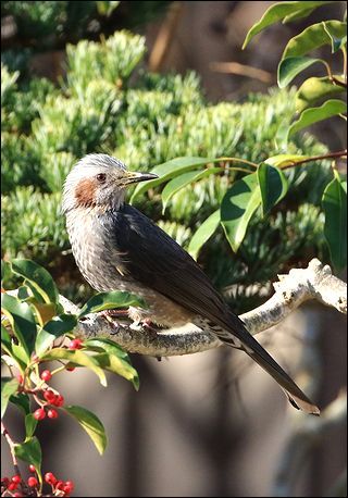 ヒヨドリを追い回すのは、ハシブトガラスかトビぐらいでしょう。人家の辺りにはこれらの大形の鳥はやってきません。