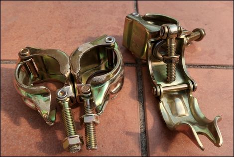 最終的には失敗 3.5メガバンドや7メガバンドは波長が長いため、アンテナ線が長くなる。7メガバンドは中心(屋根馬)から10mずつの銅線を張らなければならない。そのためには、屋根馬から10mプラスアルファの距離の所に2本の支柱が必要となる。 アンテナ支柱はアルミ製の、昔使っていたポールを流用することにした。ポールの支柱としてはホームセンターで工事現場の足場にする48mmパイプの杭を見つけた。 金属の杭は木製の杭よりも高価である。しかし、この杭をコンクリートで固定すれば、かなりしっかりした支柱を建てることができる。 「コンクリート打設」 花壇を50cmほど堀り込んでコンクリートを打設したが、高さを少しでも稼ごうとレンガを巻き込んで再度枠を作ってコンクリートを流し込んだ。枠は田んぼの畔に使うトタンの波板を利用した。 かなりしっかり立てることができたが見栄えが悪い。最悪だったのは、詳しい計測の結果屋根の中央部からの距離が不足し、この位置に支柱は立てられないことがわかったことだ。 「足場連結金具」 設計の間違い、部品のサイズ違い、天候予測の誤りなど、これからも失敗がいくつもあるだろう。自分でやるということはこのような無駄が避けられないということだ。