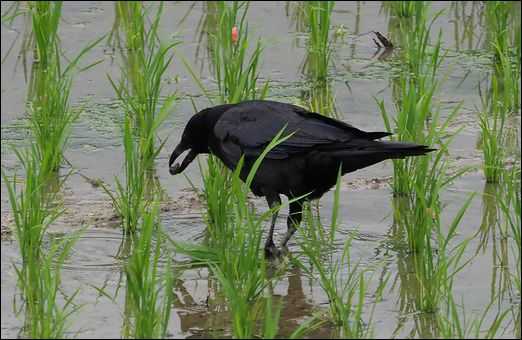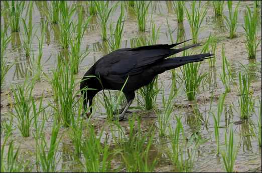 田んぼでタニシを見た。それも一つ二つではない。もともと食用として移入されたという巻貝の一種である。しかし、何でも食べるので田んぼで増殖すると、いねの茎が食べ尽くされたりして大きな被害が出る。 「田んぼの中のタニシ」 ![]() (この大きさ(約3cm)は間違いなくジャンボタニシだ) 稲の根っこにあつまっている。せっかく伸びかけている稲が悲惨な状態だ。このままではこの田んぼの稲は根っこを喰いつくされてしまう。 別の田んぼで、カラスが田んぼの中を歩いているのを見た。カラスが田んぼの中にいるのはあまり見ない光景である 「田んぼの中のカラス」 ![]() (ハシボソガラス、ただ一羽で田んぼの中で何かを探している) 観察していると、何かをくちばしにくわえた。どうもタニシをくわえたように見える。もしかしてカラスはジャンボタニシの天敵になっているのだろうか。 「ジャンボタニシにしては小さい」 ![]() (咥えているのはタニシに似ている、ジャンボタニシの子どもかもしれない) ジャンボタニシは繁殖力が高い。上の写真で、稲の茎にわずかにリンク色をしたものが見えると思う。これが、ジャンボタニシのたまごだという。 ジャンボジャンボタニシはもともと食用として移入されたものだそうだ。食生活が豊かになって見向きもされなくなったのだろう。 そのジャンボタニシが日本人の主食である稲の天敵になっているというのも皮肉と言えば皮肉だ。卵からかえった小さなタニシをカラスが食べているのなら、ハシボソガラスの存在は福音である。 ↓ランキングに参加しています。良かったらクリックをお願いします。 ![]() 写真日記ランキング お気に入りの記事を「いいね!」で応援しよう
