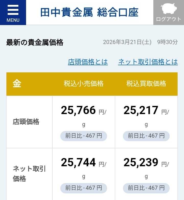 ⬇田中貴金属の金積立は、毎月コツコツ10,000円😜⬇⬇iDeCoのファインゴールドは、毎月コツコツ5,000円😜💦⬇こんにちは😊週末、いかがお過ごしでしょうか?僕は、ドライブ旅から無事に家に帰り、旅の疲れを癒やしながら、充実感を味わっている😌今回の旅は、大成功‼️天候にも恵まれ、地元飯を食べ尽くし、歴史遺産を巡り歩き、ついでにお花見まで済ませた😊さて、金関連商品の口座残高を確認すると、田中貴金属の口座残高は、約457万円になり、iDeCo(ファインゴールド)の口座残高は、約892万円になり、2つの口座残高を合わせると、約1,349万円になる。先週末が、約1,412万円たったので、1週間で、約63万円の減少ということになる😵僕の金価格の見通しとしては、中長期的には、まだ上昇する可能性があると考え、需要>供給の構図の変化を追うようにして、需給状況を確認するように、心掛けている毎日だ。つまり、現状の変化を観察しつつ、その流れに乗っかっていくという姿勢だと言える。まぁ、投資はこんな感じで良いのではないか。詳細な調査分析をして投資判断するにしても、判断材料が多すぎると、思い切った判断は出来ない。ある程度、自分のレベルに合わせ単純化し、投資経験知に今感じる時流を加味して考えれば良い。投資の楽しみは手放さないようにし、利益確定との両立が、僕の投資ある暮らし方になる。楽しくなければ投資は続かない、利益が出て儲からなければ投資はおもしろくない😉本日もお読みいただきありがとうございます。✳✳投資は、自己責任でお願いします✳✳☆米国株の情報なら米国株四半期速報2026年春号 [ 亜州リサーチ株式会社 ]☆中国株の情報なら中国株二季報2026年春号 [ DZHフィナンシャルリサーチ ]☆スマホ対応ドアホンなら【工事不要★スマホでドアホン】インターホン スマートドアホン ワイヤレス 配線不要 電源不要 連動 録画 防犯カメラ付き 屋外 通話 暗視 玄関 wifi対応 スマホ 連動 呼び出しチャイム インターフォン バッテリー 充電式 子機付き 防水 スピーカー 賃貸 MI73(A) MI75 MJ75☆アセチルLカルニチンならアセチル-Lカルニチン 500mg ベジカプセル 200粒 ナウフーズ ナウ ビタミン びたみん サプリ サプリメント アミノ酸 アセチルL-カルニチン【Now Foods Acetyl L-Carnitine 500mg, 200 Veg Capsules】☆有機桑茶なら【総合1位★】( 有機 桑茶 100包 ) 送料無料 わくわく園 おいしい 桑の葉茶 オーガニック 桑 お茶 健康 対策 制限 ノンカフェイン 国産 桑の葉 有機JAS ティーバッグ くわ 温活 桑葉 有機桑茶 ギフト