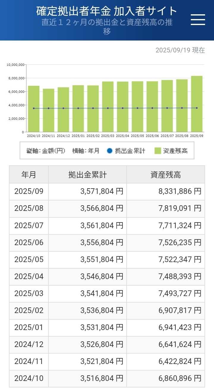 ⬇毎月5千円の拠出金でどこまで増えるだろうか😁⬇ こんにちは😊 週末、いかがお過ごしでしょうか? 僕は、妻の手術に向けて準備も終わり、 心配もあるが、元気に旅する未来を思い描いている😜 もう、今さら心配するよりも、 退院したら、二人で何処に行こうか、何食べようか、 そんなことを考えながら、過ごす方が良いだろう😌 さて、金価格の上昇傾向に変化はなく、 田中貴金属の口座残高、iDeCoの口座残高は増え、 現時点では、老後資金の確保に成功しつつあるね😜 iDeCoは、52%をあおぞらDC定期にし、 元本確保しつつ、待機資金として待っている状態、 そう、待っているのは、〇〇ショック級の大暴落😋 その時は、機動的にスイッチングしたいね! 国内金価格も短期目標の2万円/gに近づいてきた。 田中貴金属の金を売却する計画は考えてないが、 2.5万円/g位になると、一部売却を考えてみようか。 国内金価格は、為替の影響も受けるので、 その動向も確認しながら、考えることになりそうだ。 病気になったりして、 あまり先のことを悲観するのは良くないね。 人は心配しすぎる生き物に変化したようだが、 楽しい未来を思い描いて、日々生きていたいものだ😊 いろいろあるが、前向きにいこう😉 本日もお読みいただきありがとうございます。 ✳✳投資は、自己責任でお願いします✳✳ ⬇田中貴金属の金積立は、2万円/gで約2倍になる😁⬇ ☆米国株の情報なら 米国株四半期速報2025年秋号 [ 亜州リサーチ株式会社 ] ☆中国株の情報なら 中国株二季報2025年夏秋号 [ DZHフィナンシャルリサーチ ] ☆スマホ対応ドアホンなら 【レビュー特典付★日本メーカー製スマートドアホン★スマホでドアホン】インターホン ワイヤレス 工事不要 連動 録画 防犯カメラ付き 屋外 通話 暗視 玄関 wifi対応 呼び出しチャイム インターフォン バッテリー 充電式 配線不要 電源不要 賃貸 子機付き MI73(A) MI75 MJ75 ☆アセチルLカルニチンなら アセチル-Lカルニチン 500mg ベジカプセル 200粒 ナウフーズ ナウ ビタミン びたみん サプリ サプリメント アミノ酸 アセチルL-カルニチン【Now Foods Acetyl L-Carnitine 500mg, 200 Veg Capsules】 ☆有機桑茶なら 【総合1位★クーポンで半額】( 有機 桑茶 100包 ) 桑の葉茶 桑茶 有機JAS 送料無料 わくわく園 おいしい 桑 桑の葉オーガニック お茶 健康 対策 制限 ノンカフェイン 国産 ティーバッグ くわ 温活 桑葉 有機桑茶 ギフト