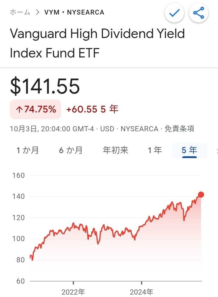 ⬇旧NISAで保有していたVYMを半分利益確定した⬇ こんばんは😊 週末、いかがお過ごしでしょうか? 指値注文をしていたVYMが寝ている間に約定、 142$で半分売却、約36万円の利益確定となった😜 分配金もまぁまぁ出てたし、 価格も右肩上がりで、良いETFだと思っているが、 NISA期間が、2026年末までなので、 残りの半分も、もう少し上昇したら利確したい😌 損益率は、+64%程度だ😊 約4年半で、この損益率は効率が悪そうだが、 資金効率を考え、利益を目指している訳ではなく、 いろんな投資の経験知を増やしながら、 投資スタイルを築いていく過程も楽しんでいるのだ。 簡単には儲からないと思っているが、 確実性の高い投資というのは、ありそうだよね😉 本日もお読みいただきありがとうございます。 ✳✳投資は、自己責任でお願いします✳✳ ☆米国株の情報なら 米国株四半期速報2025年秋号 [ 亜州リサーチ株式会社 ] ☆中国株の情報なら 中国株二季報2025年夏秋号 [ DZHフィナンシャルリサーチ ] ☆スマホ対応ドアホンなら 【レビュー特典付★日本メーカー製スマートドアホン★スマホでドアホン】インターホン ワイヤレス カメラ付き 工事不要 連動 録画 防犯カメラ付き 屋外 通話 暗視 玄関 wifi対応 呼び出しチャイム バッテリー 充電式 配線不要 電源不要 賃貸 子機付き MI73(A) MI75 MJ75 ☆アセチルLカルニチンなら アセチル-Lカルニチン 500mg ベジカプセル 200粒 ナウフーズ ナウ ビタミン びたみん サプリ サプリメント アミノ酸 アセチルL-カルニチン【Now Foods Acetyl L-Carnitine 500mg, 200 Veg Capsules】 ☆有機桑茶なら 【総合1位★クーポンで半額】( 有機 桑茶 100包 ) 桑の葉茶 桑茶 有機JAS 送料無料 わくわく園 おいしい 桑 桑の葉オーガニック お茶 健康 対策 制限 ノンカフェイン 国産 ティーバッグ くわ 温活 桑葉 有機桑茶 ギフト
