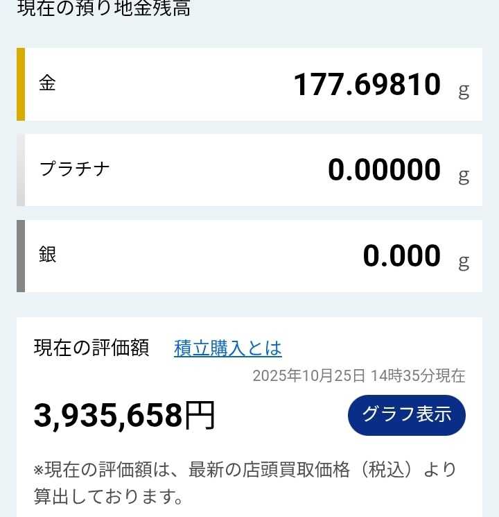 金関連商品の口座残高が、約1306万円へ。金… 2025.11.15