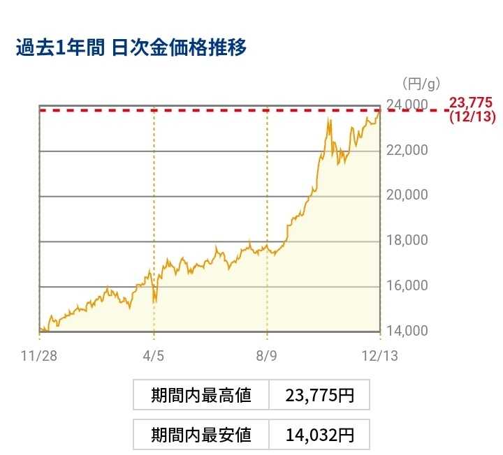 ⬇田中貴金属の口座残高は、約420万円に増加した⬇ ⬇iDeCo(ファインゴールド)の口座残高は、約917万円に⬇ こんにちは😊 週末、いかがお過ごしでしょうか? 僕は、仕事を終えてまったりしている、 録画していたテレビ番組を観ながらくつろいでいる。 さて、 国内金価格が史上最高値を更新し、 田中貴金属、iDeCoの口座残高は共に増加している😊 田中貴金属の口座残高=約421万円、 iDeCo(ファインゴールド)の口座残高=約917万円で、 2つを合わせると、約1,338万円まで増加している😁 評価損益額を、ざっくり計算すると、 田中貴金属は、約240万円、 iDeCo(ファインゴールド)は、約559万円で、 2つを合わせると、約799万円まで増加している😁 金関連商品で、こんなに含み益が出来るとは、 金投資を始めた頃には、想像していなかったね😓 想像していなかったが起こるのも投資で、 たまたま運が良かった、ということになるだろう😉 予想外の出来事や大暴騰&大暴落ですら、 投資の楽しみのひとつとして、 起こる出来事のすべてを楽しめれば良いのだが😉 本日もお読みいただきありがとうございます。 ✳✳投資は、自己責任でお願いします✳✳ ☆米国株の情報なら 米国株四半期速報2026年新年号 [ 亜州リサーチ株式会社 ] ☆中国株の情報なら 中国株二季報2026年春号 [ DZHフィナンシャルリサーチ ] ☆スマホ対応ドアホンなら 【レビュー特典付★日本メーカー製スマートドアホン★スマホでドアホン】インターホン ワイヤレス 工事不要 連動 録画 防犯カメラ付き 屋外 通話 暗視 玄関 wifi対応 呼び出しチャイム インターフォン バッテリー 充電式 配線不要 電源不要 賃貸 子機付き MI73(A) MI75 MJ75 ☆アセチルLカルニチンなら アセチル-Lカルニチン 500mg ベジカプセル 200粒 ナウフーズ ナウ ビタミン びたみん サプリ サプリメント アミノ酸 アセチルL-カルニチン【Now Foods Acetyl L-Carnitine 500mg, 200 Veg Capsules】 ☆有機桑茶なら 【総合1位★クーポンで2,640円】( 有機 桑茶 100包 ) 桑の葉茶 桑茶 有機JAS 送料無料 わくわく園 おいしい 桑 桑の葉オーガニック お茶 健康 対策 制限 ノンカフェイン 国産 ティーバッグ くわ 温活 桑葉 有機桑茶 ギフト