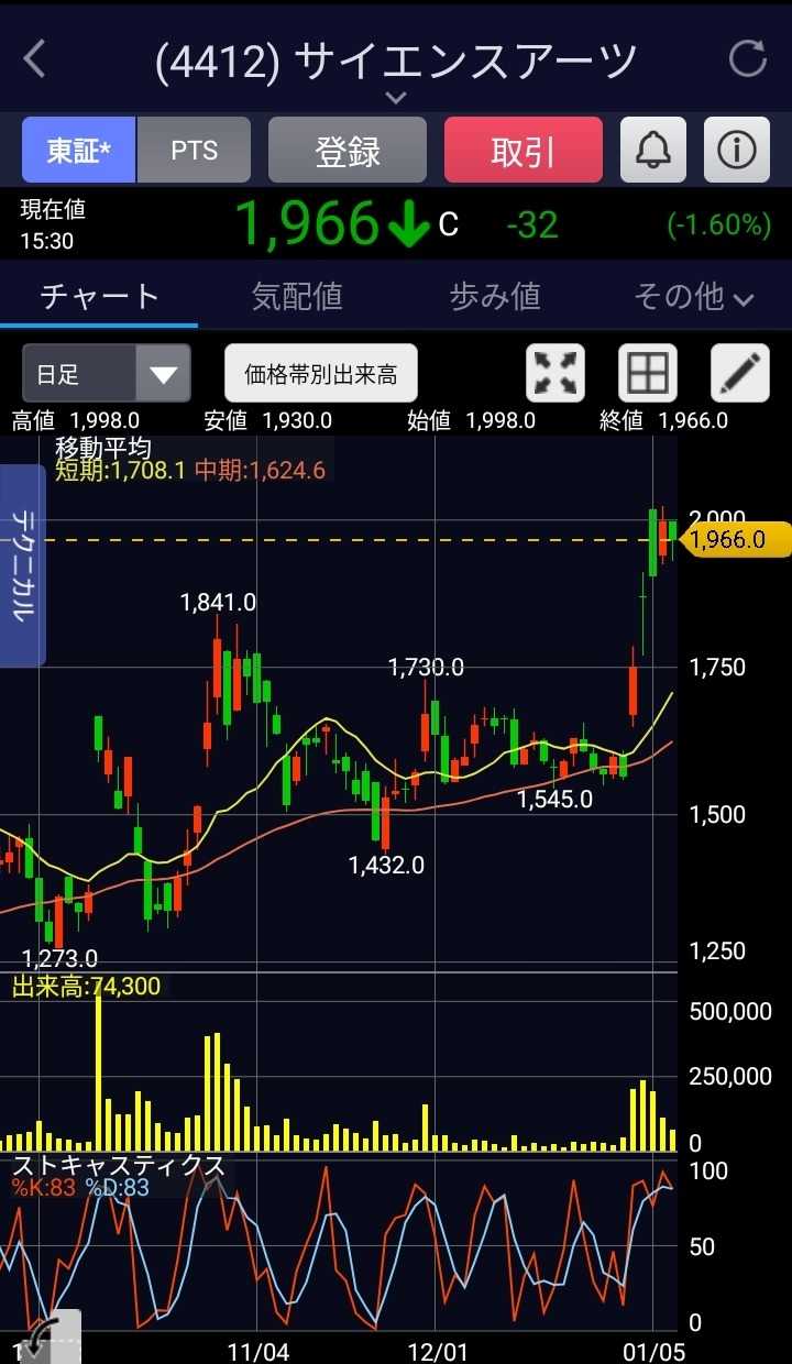 こんばんは😊 本日の投資結果どうだったですか? 僕の日本株資産は、0.84%の減少、 米国株資産は、0.36%の増加で株式資産は減少した😵 今日は日本株の保有株はほとんどが下落、 米国株は踏ん張っている感じで、資産も増えている。 最近は、質問を考えてAIに聞く機会も増え、 その回答内容を「なるほどねぇ」と思いながら、 納得している自分が居たりするので驚いている😲💦 投資銘柄関連の質問をすることも多くなって、 自分で調べる作業量を考えると効率的で、 ほんの数秒でポイントを押さえてまとめてくれる😓 こんなに便利なものがあるなら、 投資活動に使わなくちゃ、と最近は思っている。 この前AIがおしえくれた銘柄のその後は、 カバー(5253)+8.95% 三浦工業(6005)+4.18% Appier Group(4180)+4.10% FPG(7148)+3.91%などが、まぁまぁ好調だね😜 しかし、銘柄選択の参考にするだけで、 全てを誰かや何かに任せる、とかはしたくないね😌 僕は、投資は自己責任という言葉を、 投資の全てを思う存分楽しめ、と解釈しているよ。 だから、投資を楽しんだ過程と結果というのは、 負けても勝っても、自分のモノになり、 投資経験知力が高まり勝率が上がるのではないか😌 勝率をもっと上げたいのなら…… やることは一つ、もっと投資を楽しむのだ😁☝ 本日もお読みいただきありがとうございます。 ✳✳投資は、自己責任でお願いします✳✳ ⬇ウォッチ銘柄を追いかけるのは大切な投資活動⬇ ⬇保有株たちは今日は元気なし😓明日があるさ😜⬇ ☆米国株の情報なら 米国株四半期速報2026年新年号 [ 亜州リサーチ株式会社 ] ☆中国株の情報なら 中国株二季報2026年春号 [ DZHフィナンシャルリサーチ ] ☆スマホ対応ドアホンなら 【レビュー特典付★日本メーカー製スマートドアホン★スマホでドアホン】インターホン ワイヤレス 工事不要 連動 録画 防犯カメラ付き 屋外 通話 暗視 玄関 wifi対応 呼び出しチャイム インターフォン バッテリー 充電式 配線不要 電源不要 賃貸 子機付き MI73(A) MI75 MJ75 ☆アセチルLカルニチンなら アセチル-Lカルニチン 500mg ベジカプセル 200粒 ナウフーズ ナウ ビタミン びたみん サプリ サプリメント アミノ酸 アセチルL-カルニチン【Now Foods Acetyl L-Carnitine 500mg, 200 Veg Capsules】 ☆有機桑茶なら 【総合1位★ラスト5時間限定半額】( 有機 桑茶 100包 ) 桑の葉茶 桑茶 有機JAS 送料無料 わくわく園 おいしい 桑 桑の葉オーガニック お茶 健康 対策 制限 ノンカフェイン 国産 ティーバッグ くわ 温活 桑葉 有機桑茶 ギフト