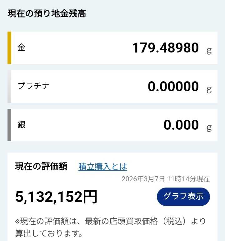 金関連商品の口座残高は約1,412万円に減少… 2026.03.21