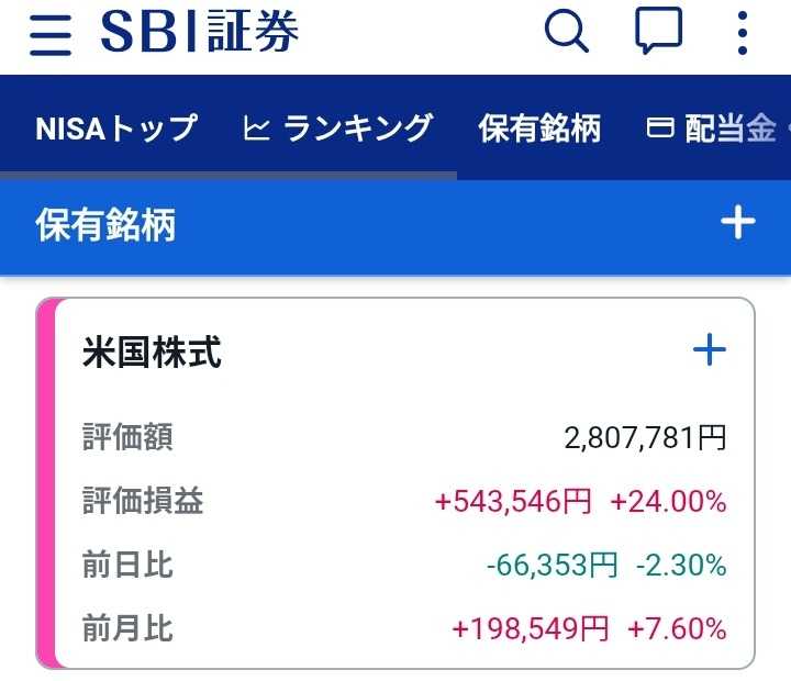 ⬇今週末のNISAの米国株の含み益は、約46万円に⬇ ⬇先週末のNISAの米国株の含み益は、約54万円だ⬇ ⬇金曜日の保有米国株は下落するものが多かった⬇ こんにちは😊 週末、いかがお過ごしでしょうか? 僕は、妻とドライブ旅の予定を話し合い、 楽しめるスケジュールを決定することができた😜 今回が妻の手術後の初めての宿泊旅なので、 無理をしないゆったり目の計画にしてみたのだが、 どんな旅になるのか、今からワクワクするんだよね😊 さて、NISAの米国株の含み益は、 先週末の約54万円から、今週末は約46万円へ、 約8万円の減少で、大きな減少とはなっていないが😉 長期的に見ると米国株は上昇基調、 今回の下落も、チャートではさざ波程度になるのか。 中長期的投資をしているということは、 数日、数週、数ヶ月、1年の株価変動は気にせずに、 ドンと構えて、業績を確認し信じ続けろということ😌 株価変動に振り回されず保有し続けるには、 そんな信念みたいなものも、時に必要になってくる。 信念という強い意志は、影響力が強いから、 それは、僕の生き方にも自然と変化をもたらすのか。 中長期的投資思考が生き方になる。 気長にのんびり成長する過程を見届ける、 何があっても慌てず、信じて待つことも可能になる。 良いことばかりではないが、 いつしか、そんな生き方をするようになっていた😉 本日もお読みいただきありがとうございます。 ✳✳投資は、自己責任でお願いします✳✳ ☆米国株の情報なら 米国株四半期速報2026年春号 [ 亜州リサーチ株式会社 ] ☆中国株の情報なら 中国株二季報2026年春号 [ DZHフィナンシャルリサーチ ] ☆スマホ対応ドアホンなら SS限定59%OFF【工事不要★スマホでドアホン】インターホン スマートドアホン ワイヤレス 配線不要 電源不要 連動 録画 防犯カメラ付き 屋外 通話 暗視 玄関 wifi対応 スマホ チャイム インターフォン バッテリー 充電式 子機付き 防水 スピーカー 賃貸 MI73A MI75 MJ75 ☆アセチルLカルニチンなら アセチル-Lカルニチン 500mg ベジカプセル 200粒 ナウフーズ ナウ ビタミン びたみん サプリ サプリメント アミノ酸 アセチルL-カルニチン【Now Foods Acetyl L-Carnitine 500mg, 200 Veg Capsules】 ☆有機桑茶なら 【総合1位★クーポンで半額 3月11日1:59まで】( 菊芋 桑茶 100包 ) 送料無料 菊芋 菊芋茶 桑 桑の葉 桑茶 桑の葉茶 わくわく園 国産 ティーバッグ イヌリン きくいも 茶 美味しい ティーパック 九州産 健康茶 食物繊維 ノンカフェイン 痩活 正月太り