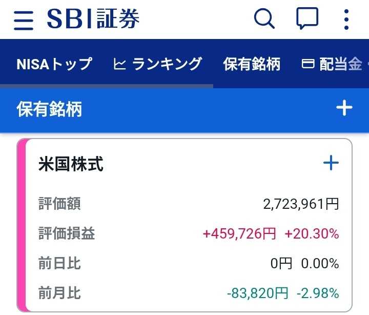NISAの米国株の含み益は、約39万円に減少(-… 2026.03.22