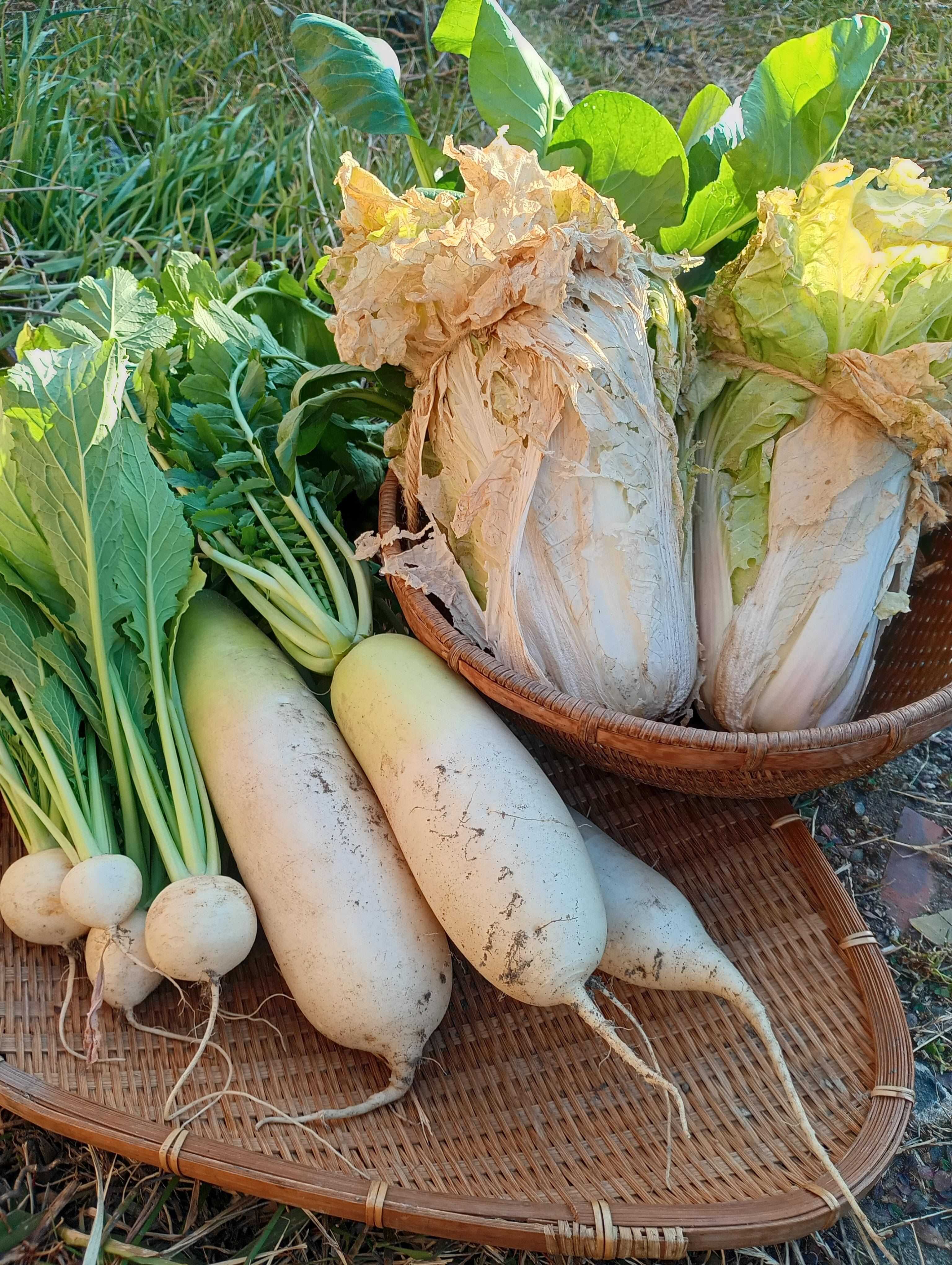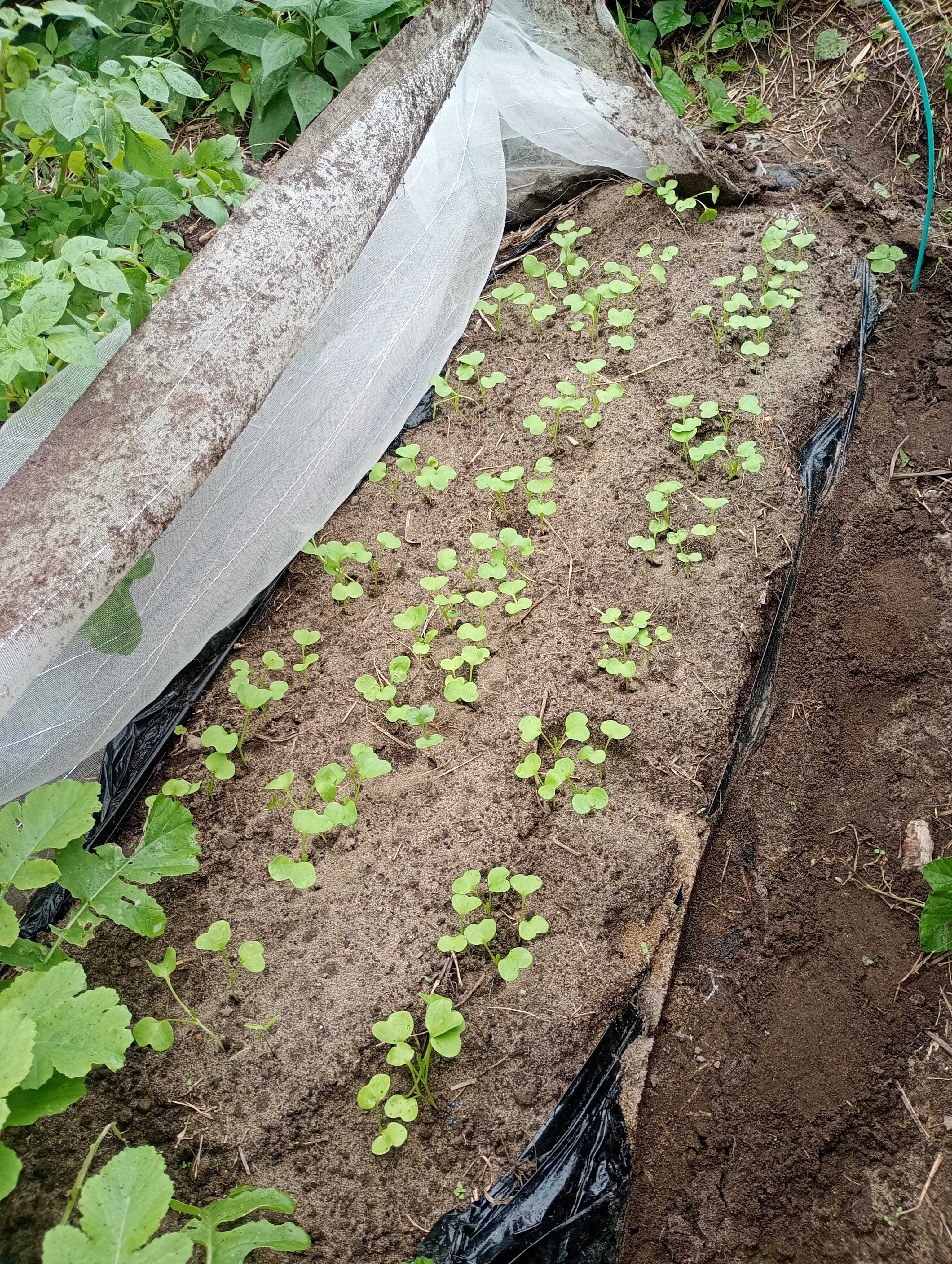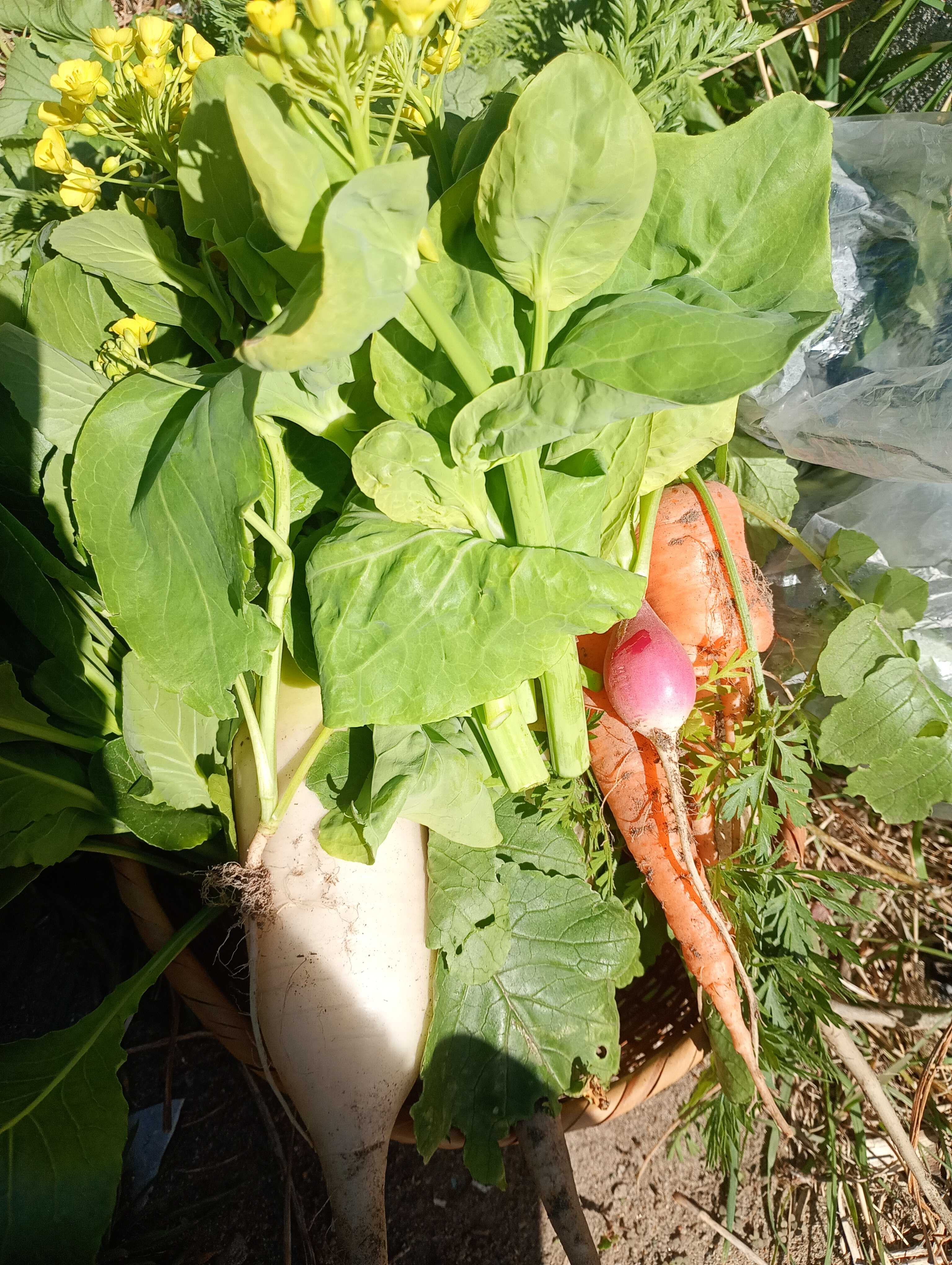 皆さま、こんにちは😊 今日もお越し頂き、ありがとうございます🙇 今日の振り返りの野菜は、大根です✨ ![]() 品種は耐病総太り大根。 播種は9月と10月の2回しました ![]() 太陽熱消毒した畝にマルチを貼り、残暑が厳しい為に 遮光と乾燥防止に不織布を被せました。 なんとか発芽まではこぎ着けたのですが… 発芽後の双葉展開の様子です。 何か違和感を感じませんか…🤔 ![]() 10月の様子です。 ![]() 反省点の1つ「徒長」です🤔 播種〜発芽まで遮光していたのですが… やり過ぎました😥 トンネルは防虫ネット+不織布を上に被せる 乾燥防止にさらに不織布をベタ掛けにしていました😥 且つ、播種した畝は、午前中のみの陽当たりの為、 光量が却って不足してしまいました😥 いくら嫌光性とは言え、発芽直後のタイミングで、 ベタ掛けの不織布が外せなかったのは不味かったです。 リカバリーとして、畝半分をリセットして、再播種。 その時の様子がコチラ ![]() 抜いた大根は、葉大根として収穫しました😊 ![]() 残りは土寄せを行い、そのまま栽培を続けました。 冬を迎え、ビニールトンネルしての冬越しに。 再播種分もなんとか発芽しましたが… ![]() 害虫被害の中々の物でした😥 出る葉っぱが次々に食害に遭い、成長が遅れました。 反省点その2がやはり「害虫対策」です🤔 アブラムシが来なかったのは良かったです。 目立った害虫はヨトウムシ。 この時期、人参🥕、白菜も食害でボロボロ😥 徒長+害虫被害のセットで、肥大化も遅れました。 そして迎えた12月 ![]() なんとか収穫まで辿り着きましたが… 徒長+害虫被害のセットで、大きく肥大しませんでした😥 特に害虫被害からのリカバリーは、かなり難しくなる事が分かりました。 一方、10月蒔きの大根ですが… ![]() さらに小振りですが、無事に収穫まで辿り着きました😆 そして3月 ![]() 春大根として収穫出来ます🤗 ここで良かった点は、10月蒔きで冬越しすれば、 春大根として収穫出来る事が分かった事です🤔 とは言え、3月温かい日が数日すると、トウ立ちが。 3月いっぱい迄収穫をするなら、必ず一度は摘花が必要です 花芽も収穫と思えば、2度大根を楽しめますしね✨ 一方、冬大根は1月で終わり、直ぐに春蒔きの大根を播種しました(-ω☆)キラリ 3月現在、ここまで育っています🤗 5月に収穫出来ると思います😊 ![]() 纏めると 反省点と改善点 ・害虫対策と遮光の加減が出来なかった事。 →忌避剤(唐辛子焼酎等の自然農薬)を使う 発芽までは遮光ネットを使う(発芽したら防虫ネットに 切り替える) 良かった点と気付いた点 ・10月蒔きして冬越しすれば、余り太くはならないけど、春大根として収穫出来る。トウ立ちは花芽の収穫で、2度味わえる😃(9月播種は冬大根で収穫出来る) ・冬大根を収穫し終えてから、春大根の播種すると、1月〜3月、そして5月と連続して収穫出来る。 こうして振り返ると、本当に考えが纏まりますね✨ 引き続き、栽培野菜の振り返りを綴ります😆 ここまでお読み頂き、ありがとうございました🙇 お気に入りの記事を「いいね!」で応援しよう