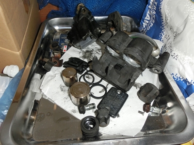 窓を修理した「ブレーキマスターシリンダー」ですが色はげがひどかったので筆塗りですが綺麗にしてみました クレオス MRメタルプライマー (ビン入)賛否あるようですがアルミなので一応これを塗ってから上塗りしました写真では分からないくらいに傷や塗装のはげが直せました上に写っている純正部品のカラ袋はブレーキマスターピストンのダストブーツです品番は59666-44300ですが実はWOLFのパーツリストには載っていません知らないとブレーキマスターピストンごと注文しなければなりませんブーツのみの破損で全て購入するという財布に優しくない事態になりますブーツを新品にして組み上げました 交換前のマスターシリンダーです 今のところ漏れたりなんかはないんですが油面が分かりづらく細かいクラックが入っています 交換していきます・・・・っていつものごとく写真はありません だってブレーキフルードとの格闘なんです 抜くのはエア抜きのニップル(下側)からシリンジで抜きました ここまではこぼさずOKでした 入れるのは下から入れるとエア抜きの手間が無くいいらしいので試しに行うと・・・・ フルード噴出です 誰だこんなこと言い出したのは! 下から入れるとフルードが飛び散って塗装面を侵します 少しずつならOKかもしれませんが絶対にお勧めしません!! 加減が難しすぎます 本当に避けたかったんですがまたやってしまいました 慌ててパーツクリーナーで掃除して(特に塗装面) 通常通り上から入れてエア抜きしました 少し走ってみましたが今のところ漏れはありません 修理は成功のようです クリアな油面確認用の窓っていいもんです