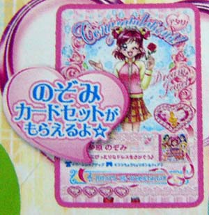 何で、プリキュアのカテが増えてるの~~?ってな感じですが(汗)ついに、今まで一切レンコ自粛していたプリキュアをレンコしちゃいました。あ~~あ。恐竜、ドラクエとレンコして、決してはまるまい。と決意してたのに~~。給料後というのもあり気が緩みました、反省です。でも娘はいつも以上に盛り上がっちゃって、私もそのときは、レアが出るたびに「おっ!!」とか思っちゃって(笑)レアっていってもPRだから、お金入れりゃ何枚かに一枚出るんですけど。今まで普通にやってきた者にしたら、あのキラキラは目に毒だ~~。多分15クレぐらいしかやってないと思うんですが(ホント?)、ドリームのあたりカードが出ました!!う、うれしいぃ~~!!これが出るとのぞみのレア入りカード3枚と交換してくれるのです。あたりカードはもう交換したので、カードリストよりそして3枚のカードがこれそのほか、PRのみですが下の5枚出ました~~~。あ~~、ヤバイですね~~、ひじょーにヤバイ。少し面白くなってきましたよ~~。カードホルダーの整理が楽しくなってきましたよ~~。なんだか旦那の気持ちがわかるような・・・・・・(!?)。他のプリキュアドリームライブ愛好家の方のブログ見てると皆さんよくCR,MRを出してらっしゃいますね(驚)私もぜひ出してみたいものですが、その前に、使ってる額が違うんでしょうね。私には無理です。。。ま、ぼちぼちやっていきますよ~~!余談ですが、以前くら寿司に行った時に旦那が、くらカード買ってみました。これってどうなの?レアなの?誰でも出るの~~?誰かわかる人いませんか~~~~~?