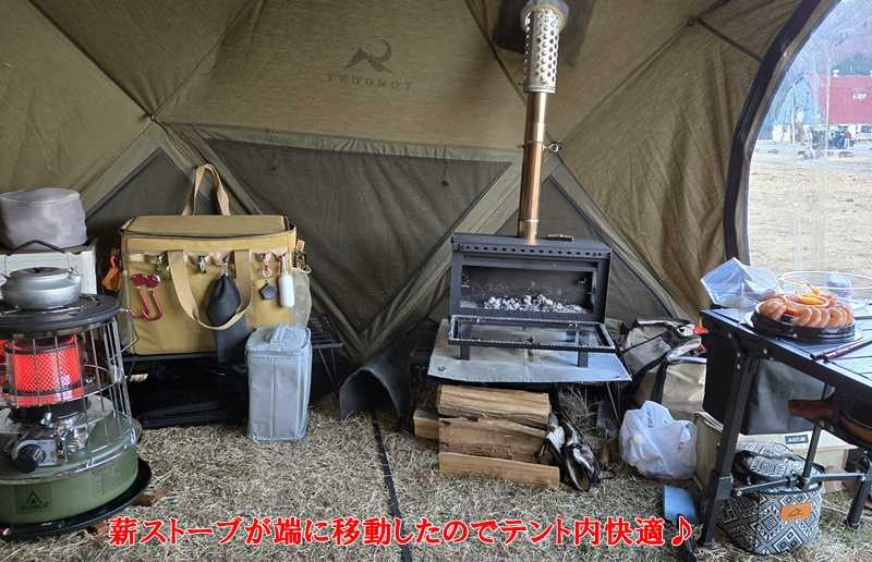 木曜日から2泊3日で「ふもとっぱらキャンプ場」に行ってきました。 ![]() 今回はNEW薪ストーブ「Mt.SUMI ミドラ」を使うので「薪屋ネイチャー」で太割薪を4束購入 ![]() 今回は迷惑キャンパーが居なく、Aサイトの前の方を確保出来ました。 (私の中ではベストポジション(トイレ、お風呂も近く金山テラスのWiFiが入る ![]() 「TOMOUNT MOON-TC」の標準の煙突穴はテント中央に近く薪ストーブを設置すると 居住空間が狭くなるので、AMAZONで「SJK245 テント煙突穴キット」を購入して テントに穴を開ける事にしました ![]() 穴開けは勇気がいるな~ ![]() 「SJK245 テント煙突穴キット」はマジックテープで耐熱シートや煙突穴蓋を取り付ける方式なので取りあえず耐熱接着剤で貼り付けましたが、何の問題もなさそうです ![]() 薪ストーブ使わない時や雨の時などに煙突穴蓋があると大丈夫そうです。 ![]() テント内が広くなり超快適になりました ![]() 本日の設営風景です。相変わらずゴチャゴチャ汚いな~ ![]() 「Mt.SUMI ミドラ」の初火入れを行いました。100℃~200℃で1時間燃やし、その後1時間冷やして完了です。 ![]() ![]() 「Mt.SUMI ミドラ」は前面オープンで窓が大きく炎が綺麗に見えますね 「Mt.SUMI ミドラ」にはオプションで「ピザストーン」を買うと庫内で本格的なピザが焼けると 言う事で、試してみました ![]() 市販の冷凍ピザを7,8分焼いて見た所、表側はこんがり&パリパリで美味しそうですが、、、 ![]() 裏側は、コゲコゲ 初めてでは加減が分りませんね~ ![]() 焼き芋にも挑戦して見ました ![]() しかし割ってみると、中心部分は少し硬かったです。もう少し長めに焼かないと、、、 ![]() 薪ストーブの設置や煙突穴開け等色々遊んでいたら夕方になり、赤富士が綺麗に見えました ![]() 今年最強の寒波が来ているらしく、18時でも0℃、明け方はー7℃と年内にしては異常な寒さでしたよ ![]() その代わり、日の出 ![]() ![]() ![]() 2日目も-7℃と寒かったので、年内としては珍しくふもとっぱらの池が凍りましたよ さて食事編ですが、寒かったので今回は初めてきりたんぽ鍋を作りました。 翌朝はうどんを入れて朝食にしました。 ![]() 昼間っからアヒージョで飲んでいました ![]() おつまみは、OKストアのカクテルシュリンプがお気に入りです ![]() 今回のキャンプは、隣に設置する時にも一声かけて設置して貰ったので、前回とうって変わりマナーの良い人ばかりで快適でした 「Mt.SUMI ミドラ」は良いですね~ ・前面オープンなので薪の投入が楽 ・前面ガラスが大きく、炎を眺めるのが楽しい ・前面ガラスが曇りにくい ・二次燃焼なので、燃えカスが少ない&テントに火の粉が飛ばない ・40cmの薪が入るの薪を選ばず買える ・サイズが少し大きくなったのと鉄製だから暖かい ・前面オープン&上蓋が外せるので、撤収時の掃除が簡単 「Mt.SUMI ミドラ」はお勧めできる薪ストーブです 追伸)初日に「TOMOUNT MOON-TC」の設置時に突風が一瞬吹きテントが倒れてしまった時に、メインポールが曲がってしまいました ![]() 現在、楽天でもAMAZONでも交換用ポールが売切れなのでどうしようかサポートに確認中です ポチっとしてくれると励みになるな♪ お気に入りの記事を「いいね!」で応援しよう