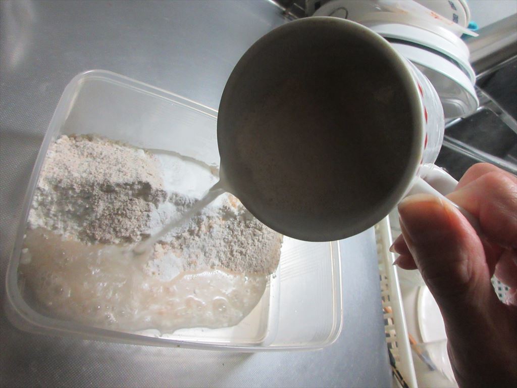 漸く暑さも和らぎ過ごし易い陽気 どちらかと言うと 寒いのは苦手なので 冬の二歩手前位の季節が個人的には好み そんな週末休みに これらの食材達で ![]() Let's cooking! まずは ![]() ![]() ドライイースト2.5gと砂糖5gを ぬるま湯100gに入れ ![]() 予備発酵イースト作り お次はタッパに ![]() 強力粉225g、全粒粉25g、塩、クリーミーパウダー、ぬるま湯 ![]() 予備発酵イーストを流し入れ ![]() カードで混ぜ混ぜ ![]() 混ぜ混ぜし 粉っぽい所が無くなったら ![]() 台に移し・・・捏ね捏ね6分 ![]() バター風を加え・・・捏ね捏ね6分 ![]() 表面がつるんとしたら ![]() 一次発酵開始・終了後 ![]() 生地君が成長してくれたので ![]() 台に移し・・・二分割にし ![]() 濡れ布巾を掛け ベンチタイム10分後 ![]() 生地を成形し型に入れ ![]() 二次発酵開始・終了後 ![]() 再び 生地君が成長してくれたので ![]() 220℃で予熱したオーブンで 200℃27分焼き焼き すると ![]() ![]() まーまーですかね・・・ これを冷ましている間に 今回は特にする事は・・・ありましぇ~ん(^^; まずは ![]() 麒麟淡麗生で乾杯! 10月最初の週末休みの午前中早くから 自宅で飲む麒麟淡麗生 マジ、格別ですね♪ 出来上がったおつまみは ![]() これ ![]() 「京風だし巻サンド」 そのお味は ![]() ![]() うん、うん メチャ・・・旨いんだな♪ だ・か・ら ![]() 「まる」の冷 飲み始めちゃうんだな(^^; では、では