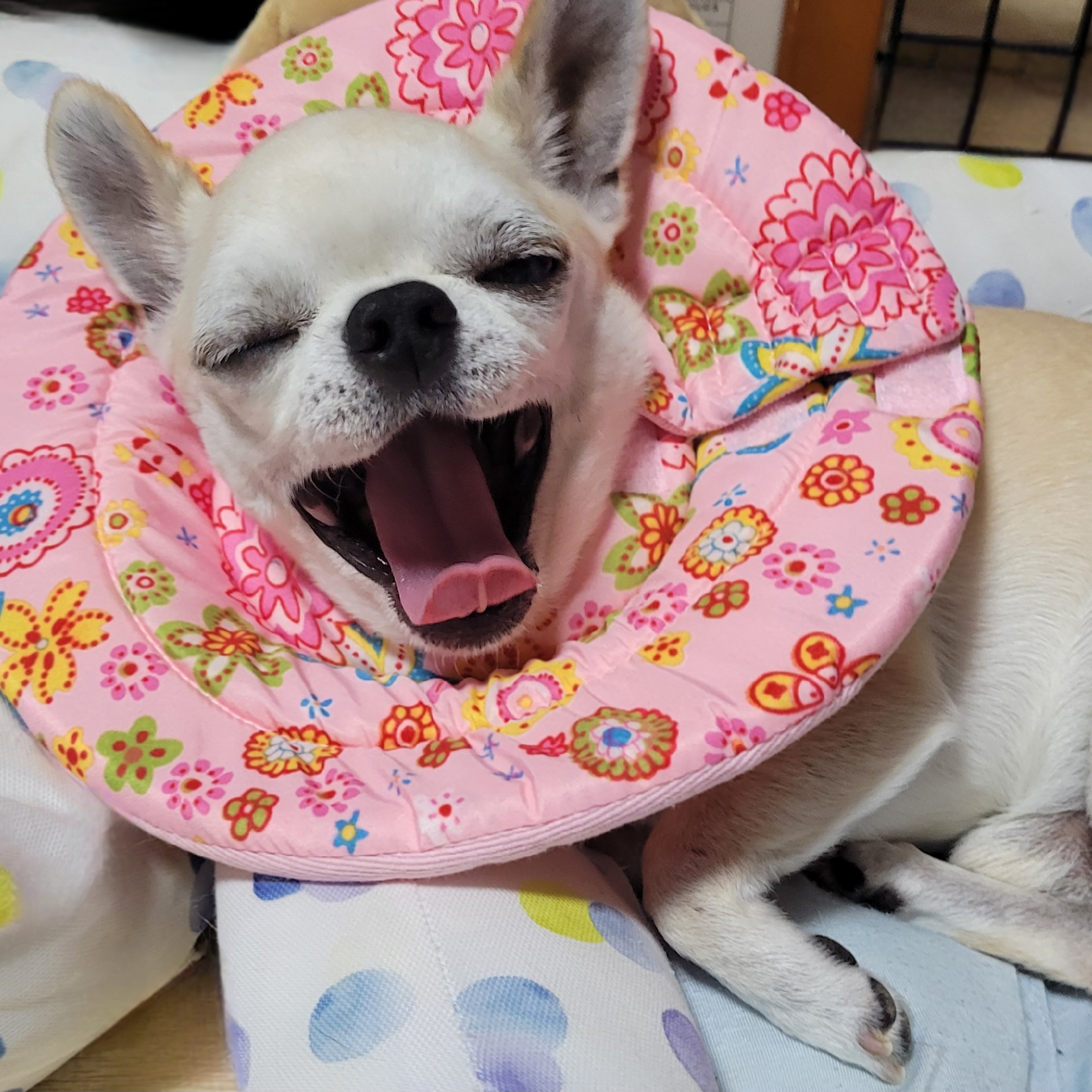 いよいよ、わん蔵~去勢手術。 わん蔵は元繁殖犬として頑張ってきたからねー 6歳過ぎてからの去勢手術だね。 わん太は約14年前~ さすがに、当時とはいろいろ違う( ´艸`) エリカラもずいぶん、オシャレというか柔らかくってよさげー 術後服も用意~ ![]() ▲術前の前日夜のごはんはコレ。 病院で事前に出してもらいました~ 美味しそうに飲んでた~ ▼わん蔵のエリカラはコレ