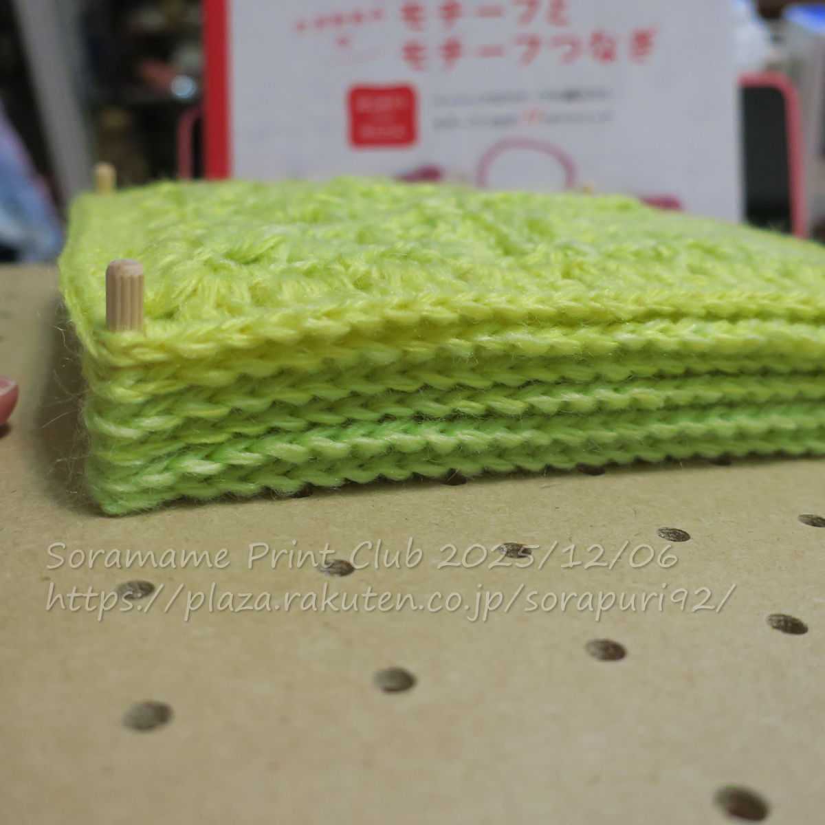 ![]() 毎日違う編み図が公開されている #かぎ針編みアドベント2025 笠石あきさんのデザインです。 今日は Day06はなたば モチーフの中に、小さなモチーフ4枚。 2枚目からは途中でつなぎながら編むんです。 真ん中は、4つの角がつながるのですが、 適当にやったら、仕上がりがイマイチで…(^_^;) なので、持っていた本でおさらいして、 もう1枚最初から編みなおしました。 4つのモチーフを編んでつないで、 さらに糸をつけて周りを編んで… ちょい、難易度が上がりましたが、 明日からも欠かさず編むつもり。 ![]() ユザワヤのワンダーウール色番43 グリーンからイエローになってきました。 200gで糸長約500mもあるので、 24枚のモチーフは編めると思ってるけど… ちなみに、ブロッキング中のモチーフは、 一辺が15.5センチになります。 普段、ナイフ持ちで編むことが多いけど、 今回は、ペン持ちでふんわり編んでます。 朝晩冷える~ お気に入りの記事を「いいね!」で応援しよう