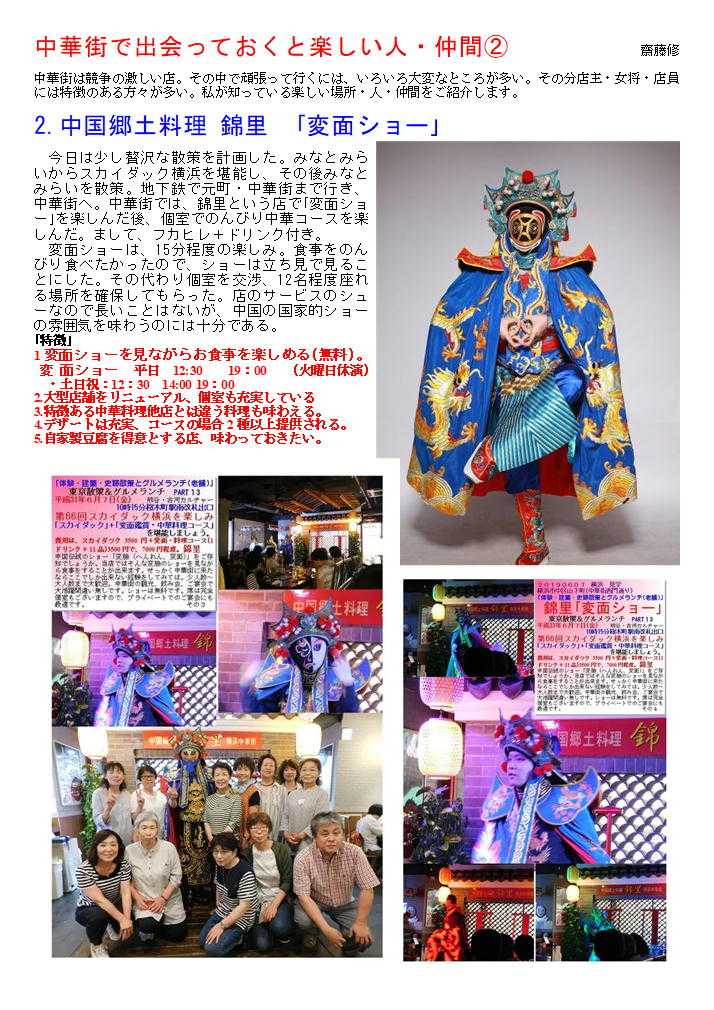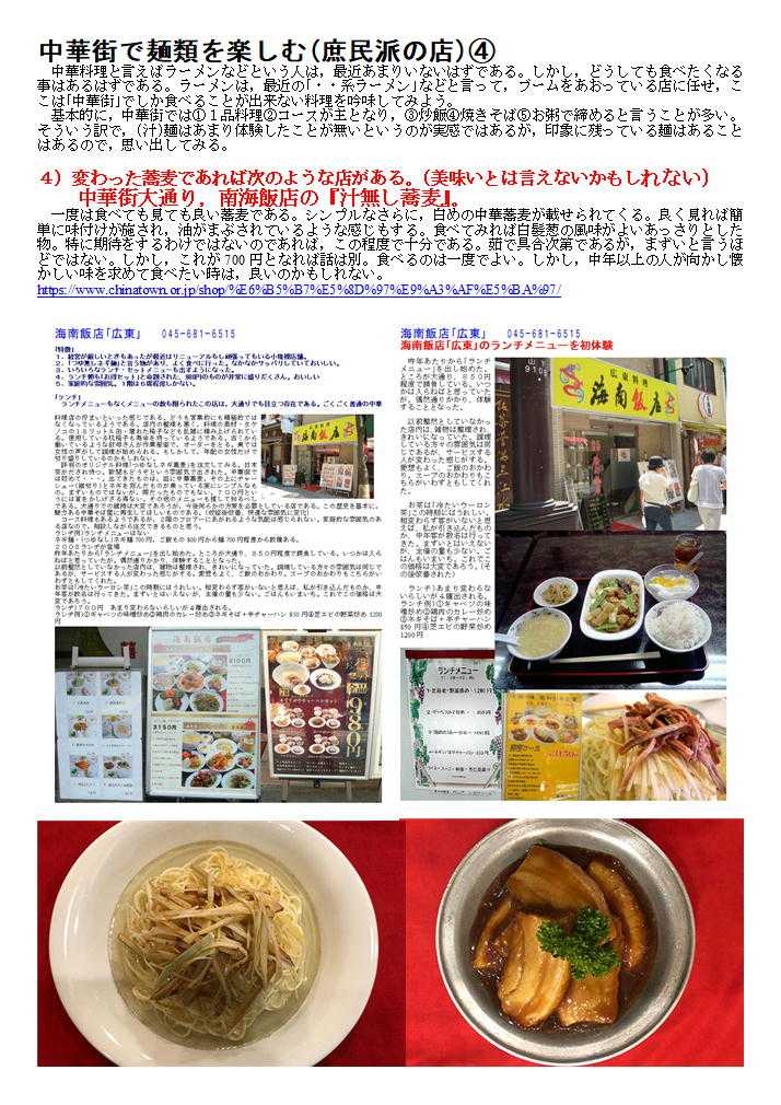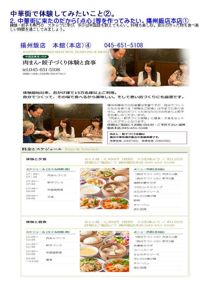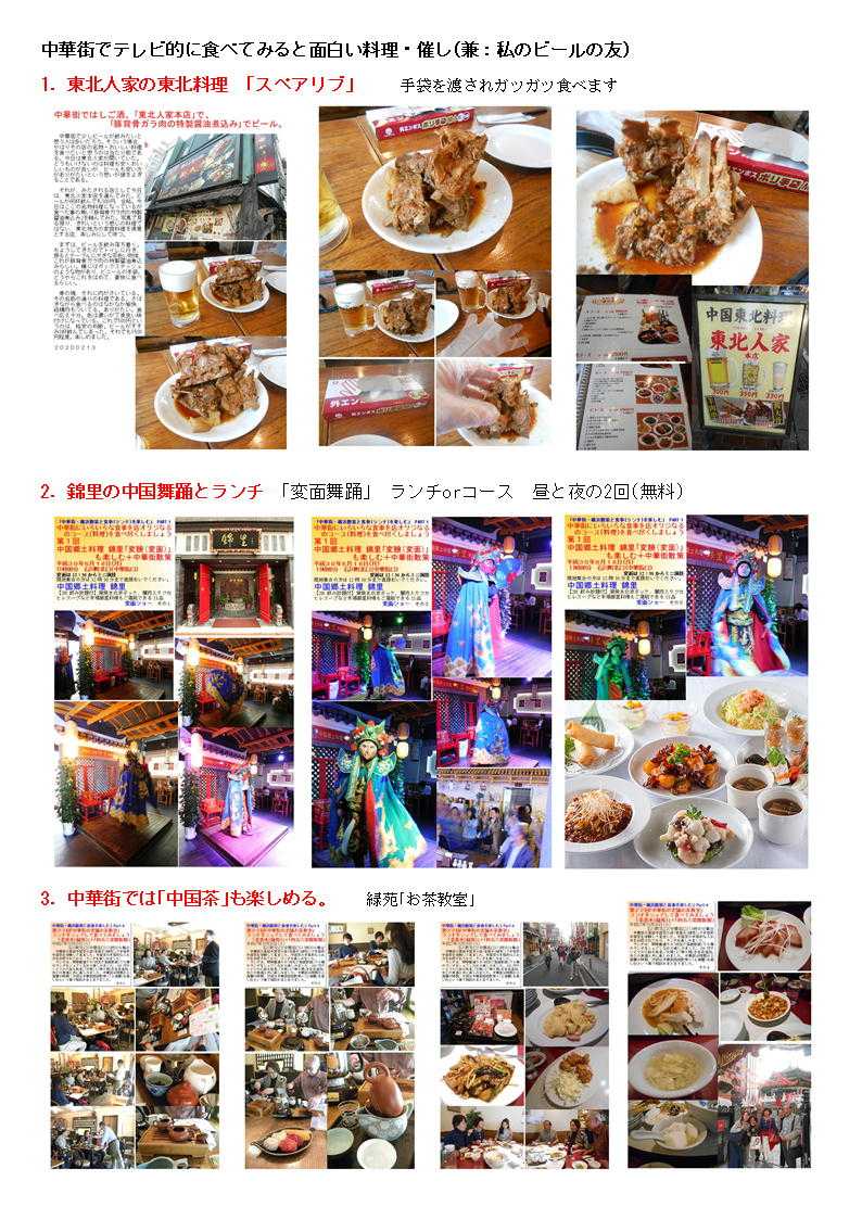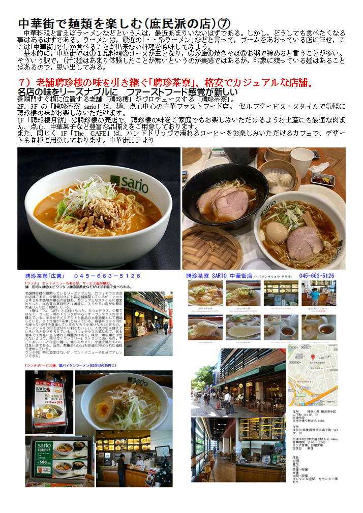 私の情報は、facebook twitter. を確認ください。「中華街を大切にする人」「ご利用する人」にはご協力をします。質問があれば、コメント欄 or sosamu@ya2.so-net.ne.jp にご連絡ください。中華街は、中華街の魅力を、最近の中華街は中年おじさんの散策part2-ご覧ください。私のもう一つの趣味山登り(過去の記録をまとめています)。山好きおじさんの部屋 もご覧ください中華街で出会っておくと楽しい人・仲間④ 齋藤修 中華街は競争の激しい店。その中で頑張って行くには、いろいろ大変なところが多い。その分店主・女将・店員には特徴のある方々が多い。私が知っている楽しい場所・人・仲間をご紹介します。 1.横浜博覧館・横浜大世界 取り仕切るコンシェルジ天江 節子 さん 非常に丁寧な方です。(そして魅力的な方) 転職されました中華街を守り、学問と商売の神様として関羽様が祀られる「横浜関帝廟」。夜はライトアップされて絢爛豪華な美しさが際立ち、ため息がでるほど。私たち中華街コンシェルジュは、「中華街にまた来たい」と思っていただけるよう、お手伝いをさせていただきたいと思っています。みなさまの中華街へのお越しを心よりお待ちしております。会える場所:3Fガーデンテラスカフェ横浜中華街コンシェルジュとは?横浜中華街の歴史や中国の食文化、イベントなど、中華街の魅力を訪れた方々に正しく伝える“街のコンシェルジュ”のこと。大きな特徴は中華街で働き、お店にいながら街をガイドしています。中華街を楽しむ人のすぐそばにいて、サポートしてくれる心強い存在です。このバッジが目印なのでお気軽にご相談ください。20130408 中華街横浜市中区山下町 横浜博覧館 この春新しい施設として登城した「横浜博覧館」。以前の安楽亭の敷地を利用した形で、大通り・中山路に入り口が設けられた。 中華街にしては珍しく、大きな吹き抜け・3階部分には、公共広場を持つ構成。その一角には「足湯(無料)」も作られました。 1階は売店(土産物店)、2階は「ベピースター」のアンテナショップ。3街は「インフォメーションセンター」「軽食喫茶」も入った施設。休憩説のない休暇街には福音の建物かもしれない。3街のテラス席は、オープンテラス部分は自由に使って良いとのこと。利用しておきたい。 20190607 中華街 商店街神奈川県横浜市中区山下町 横浜博覧館「買」、「楽」、「愉」をテーマにした ショッピングセンター1階には横浜みやげのセレクトショップ「横浜博覧館マーケット」と本格中華の味を食べ歩きや持ち帰りもできる「開華楼」、2階には日本で唯一の「ベビースターランド」があり、ベビースターラーメンができあがる様子を見ることができます。3階では足湯が併設された緑あふれる「ガーデンテラスカフェ」で一息つきながらタピオカミルクティーやスイーツを手軽に楽しめます。住所 横浜市中区山下町145【大通り】電話番号 45-640-0081営業時間 9:00 ~ 21:30土日祝日は9:30 ~ 22:00 フロアにより異なる 定休日年中無休 2017年11月30日(水)メインMC 南原清隆、水卜麻美(日テレアナウンサー) その1 「ヒルナンデス!」①「マニアと街歩き~中華街~」中華街マニアがタレントを引き連れ、中華街の有名スポットからあまり知られていない。マニアックなお店を巡るという企画。中華街を巡る。マニアを中華街を案内する企画。極上グルメ。だけじゃない今までにない中磯野貴理子華街の楽しみ方メンバー 佐藤栞里、ノブ(千鳥)、磯野貴理子さん20220922 中華街 南門シルクロード神奈川県横浜市中区山下町中華街の2022年9月③-4横浜中華街大世界店横浜大世界とは?横浜中華街最大級の総合エンターテインメント施設横浜大世界は、「遊ぶ・買う・食べる・癒される」のすべてが揃った全天候型エンターテインメント施設。横浜大世界でまるごと一日遊べると大好評!横浜の観光スポットとして全国のお客様にご利用いただいております。 黄金の獅子がお出迎えする1Fは、約3,000点ものお土産が揃う「横浜大世界マーケット」、本格食べ歩き中華「開華楼」や「富貴包子楼」がございます。2F「横浜チョコレートファクトリー&ミュージアム」には、横浜中華街ならではの「花文字ボンボンショコラ」などオリジナルのチョコレートを豊富に取り揃えております。20220922 横浜横浜市中区山下町 土曜はナニする横浜大世界変身写真館 横濱中華街を案内することが多くなった昨今。今日は関西テレビを主とする番組から出演依頼があり、ロケ同伴しました。演者は、なんとデビ夫人。すえひろがりさんというお笑いの方。お二人が執事として同伴。進行役もして頂いたので、私の仕事は非常に軽減されました。夫人も非常に気を遣う方で、番組の主旨に合わせ辛口の発言をするのですが、ご自身でも柔らかく補正、ロケではすえひろがりさんの見事なリカバリーが連発、同行した私も十分楽しませて頂きました。 ロケの成功は、演者も大切ですが、中華街の皆様、とりわけロケを協力してくださる店舗関者の力が大