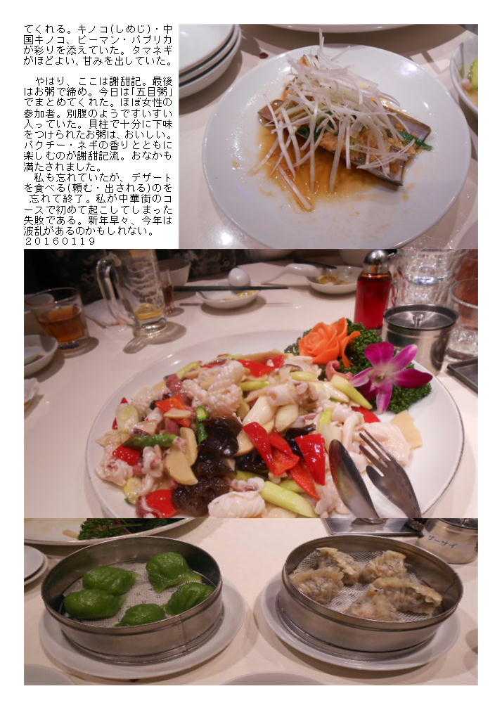謝甜記 貮号店⑨「読売㉕・正月料理」 045-664-4305 第25回 謝甜記貳号店。 中華街は春節(正月)、正月料理を楽しんでみましょう。 長くつづけてもらっている中華街散策。読売カルチャー・自由が丘のおかげと参加者の協力のたまものである。特に前回参加している方には頭が下がる。食事場所は、基本的に決まっているが、参加者の希望に応じて多少変化させている。これを不満とする人もいるが、中華街は食べる時期。タイミングが大切、臨機応変な対応が私は良いと思っている。今回も参加者の希望で、新年は「謝甜記貳号店」という事になった。