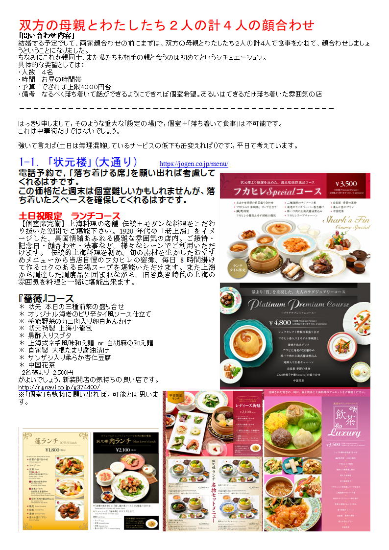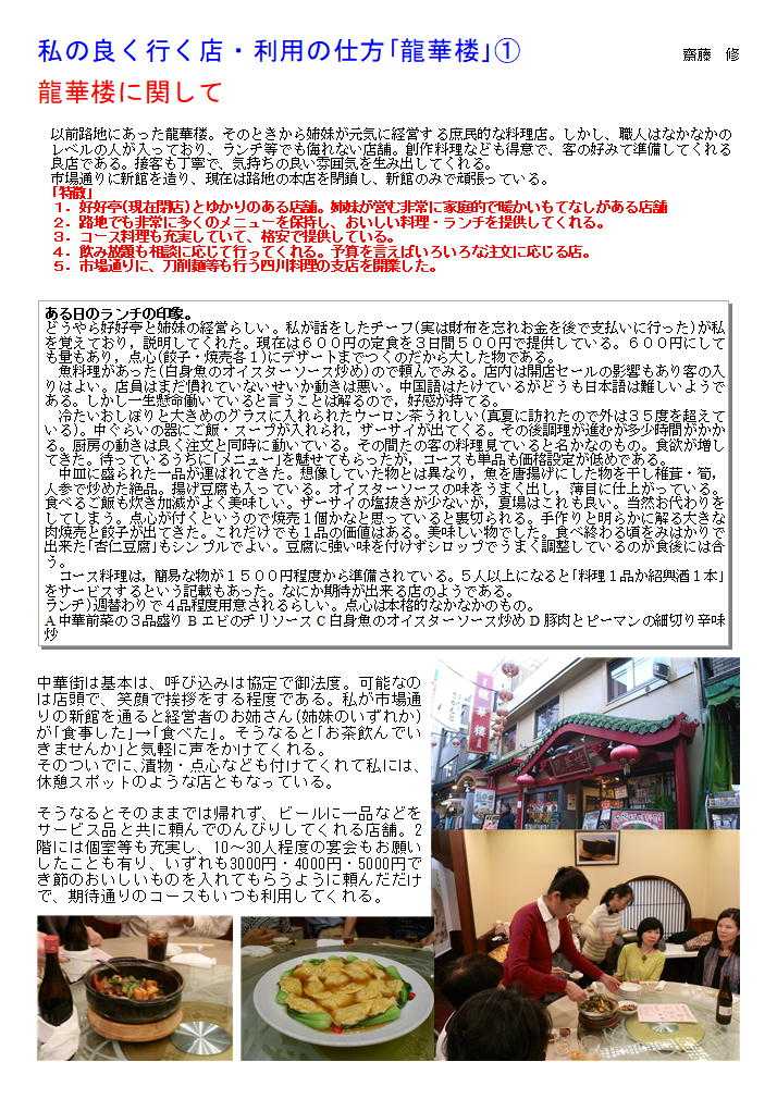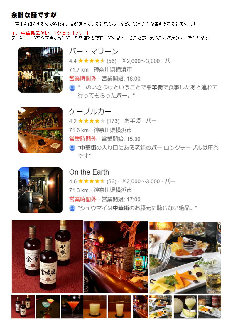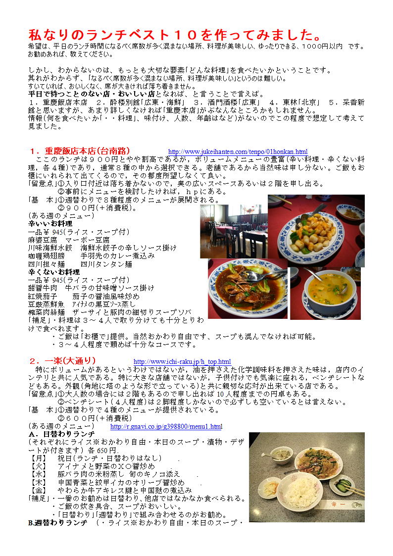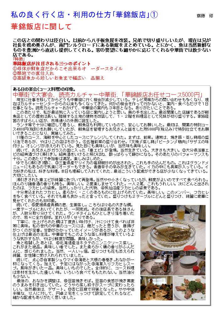 私の情報は、facebook twitter. を確認ください。「中華街を大切にする人」「ご利用する人」にはご協力をします。質問があれば、コメント欄 or sosamu@ya2.so-net.ne.jp にご連絡ください。中華街は、中華街の魅力を、最近の中華街は中年おじさんの散策part2-ご覧ください。私のもう一つの趣味、山登り(過去の記録をまとめています)。山好きおじさんの部屋 もご覧ください中華街、ここに来たらこの珍しい物(店)もいって見よう 1.外から見るとオフィス、入ってみればワンタンの名品が食べられる店、「慶華飯店・海老ワンタン」。・店舗が道路よりやや下っているのも原因だがシンプルな店構え中華料理店とは思えない。・店内のメニューはワンタンがメイン、ボリュームのあるワンタンが提供される。・サービスもほとんどシンプル中華街にいることも忘れてしまう。ある意味で取材が難しい(好まない)店です。https://blog.goo.ne.jp/to-sai00/e/34741457c1d07cf5973524c4f0883d35 https://www.hotpepper.jp/strJ000104779/このお店、なんといっても 「エビワンタン」です!大通りに平行する路にあるモダンな建物。一見、中華料理店に見えないモノトーンの入り口に、これといって看板らしきものもない。ここで味わうのはやっぱりエビワンタン。食通のあいだではかなり有名なので、黙っていてもエビワンタンが出てきてしまうほどの人気ぶり。とってもシンプルなインテリアも、通いつめるごとに味わいを増すから知らず知らずリピーターになってしまう不思議な魅力のお店だ。【広東道】 2.関帝廟を眺められるテラス席がある「七福」。中華街の雰囲気にしたりながら時間を過ごす。・食べ放題がメインだが、単品もコース料理も楽しめる店。・点心もおいしい店。天気の良い日は、2階席(テラス)から眺められる。・数種のランチを組み合わせてシェアするのもおもしろい。https://blog.goo.ne.jp/to-sai00/e/e45c6777a89f995d591598f64cb88f34【プレミアム小籠包コース】食べ放題コース!平日だけの限定価格≫宴会やお食事に最適♪食べ放題+2hアルコール飲み放題をご希望の場合は+1628円で2時間飲み放題も追加できます!料理は圧巻の112品!北京ダックや自慢の点心、季節野菜を使ったお料理がお楽しみいただけます。食べ放題はプラス550円でプレミアム小籠包付きにできます!詳細はコース欄をご確認下さい 3.中華街では最小の店舗、。厨房は店舗の外、珍しい料理が食べられる店。・外観からすると「ガレージ」、聞けば以前。倉庫・車庫だったとも聞く。・素っ気ない対応ではあるが珍しい料理が掲げられている店。・常連客が自然と集まってくる店はなかなか雰囲気がある。ガレージを改装したような店舗。一番小さな素朴な店。https://blog.goo.ne.jp/to-sai00/e/d3d622f2502b8a59df1d40c807884735伝統的な広東家庭料理が楽しめる店黒酢の酢豚 ¥1,000骨付き鶏肉とキクラゲと百合の花 ¥1,500椒塩軟殻蟹(ソフトシェルクラブのピリ辛唐揚)¥1,500広東手作りベーコンとスナップえんどうの炒め ¥1,500陳皮蒸肉餅 当店オリジナル料理 当店にしかない一品 ¥1,000サービスランチ 11:00~15:00 ¥500金額は全て税込価格です。【西門通りそば】