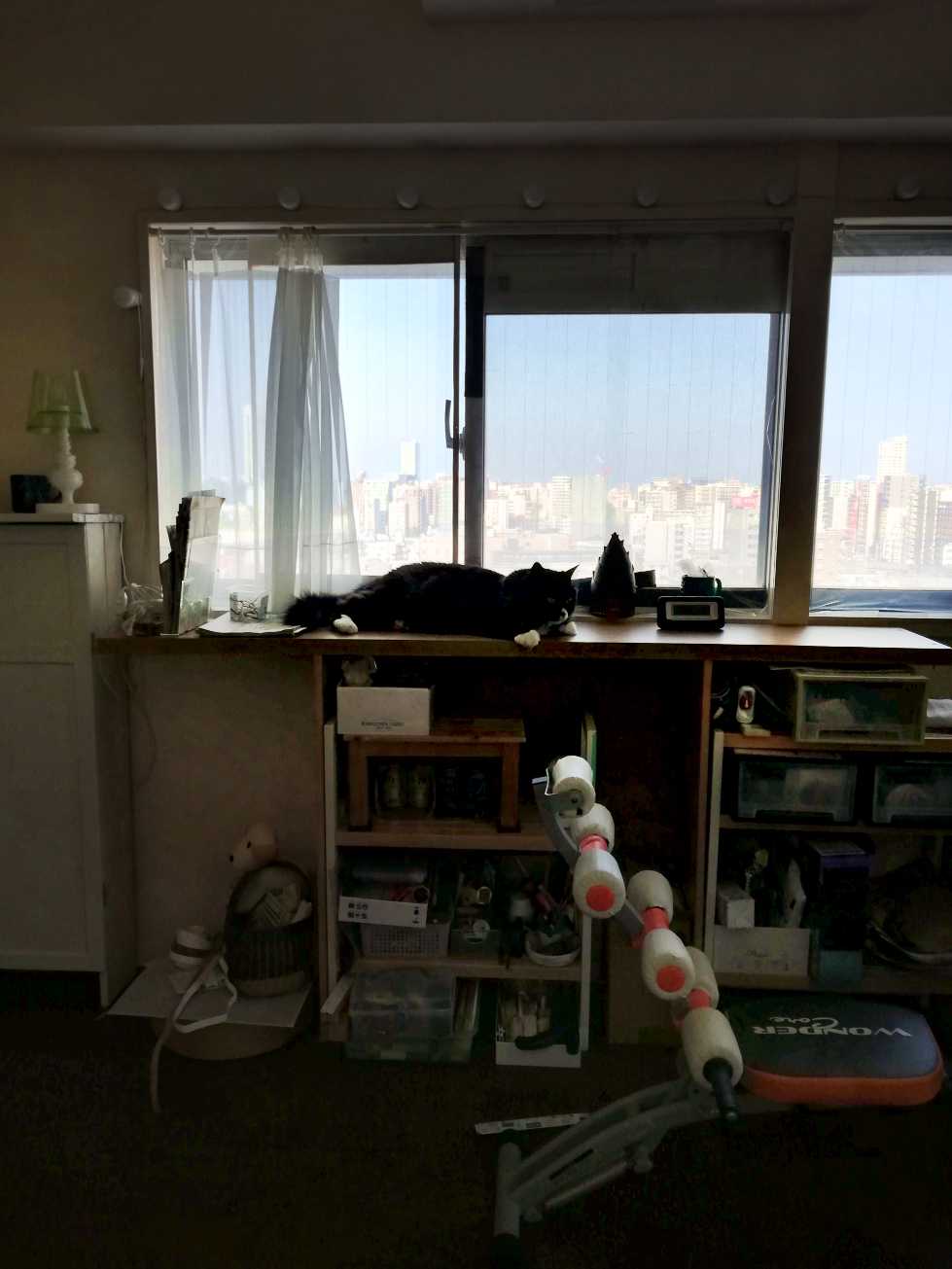 # 3584 (4/6) 北の部屋の窓辺で 寝そべるくーちゃん。 くーちゃんが乗って…
