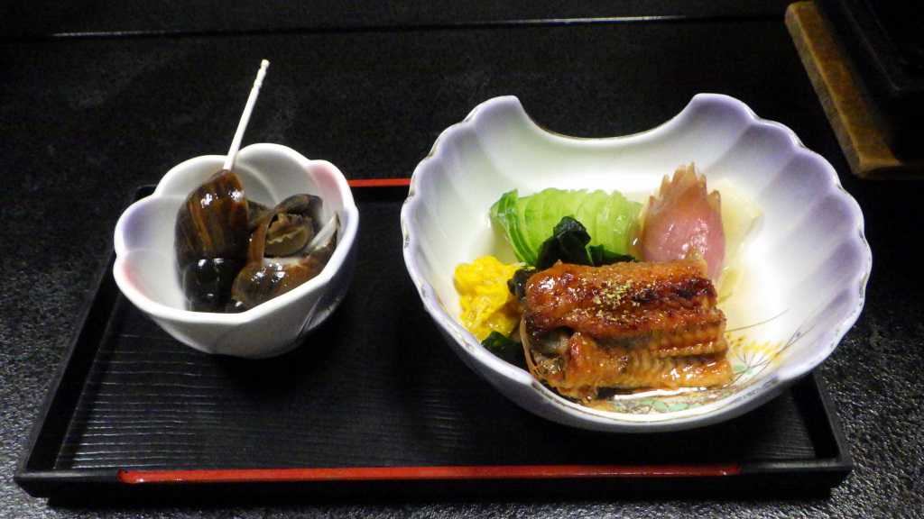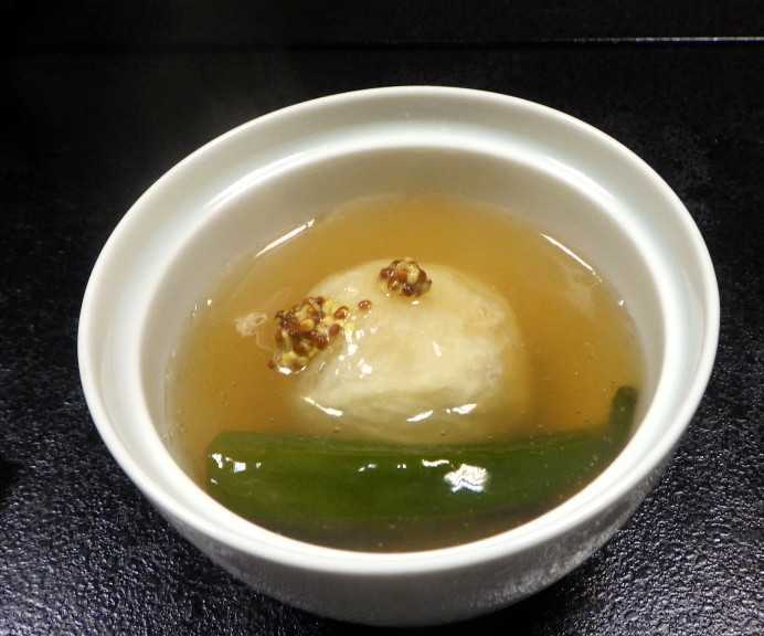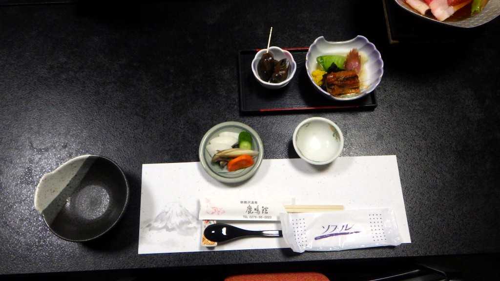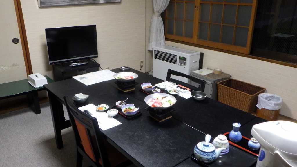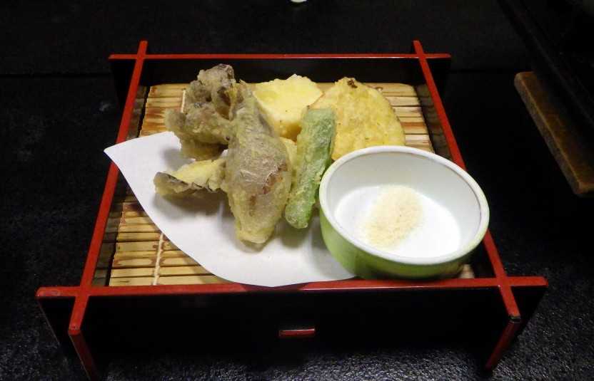 夕食は、温泉に行く途中の個室「つつじ」に用意されていました。 ![]() テーブルに料理が並んでいます。 ![]() 最初は、少しの料理で、次々持ってこられます。 ![]() 最初に置かれていたのは、バイ貝とうざく。 ![]() 松茸の土瓶蒸し 普段は、上田で購入するようですが、まだちょっと早く、カナダ産だということです。
