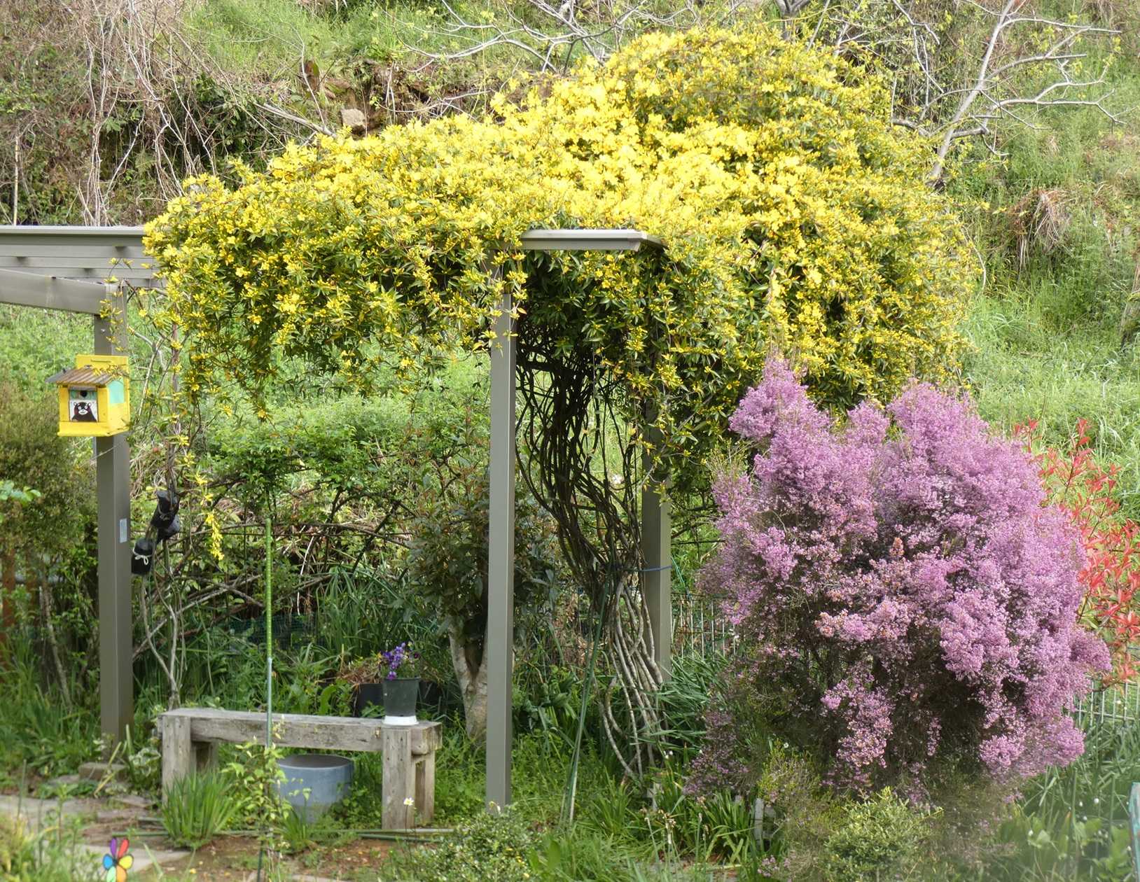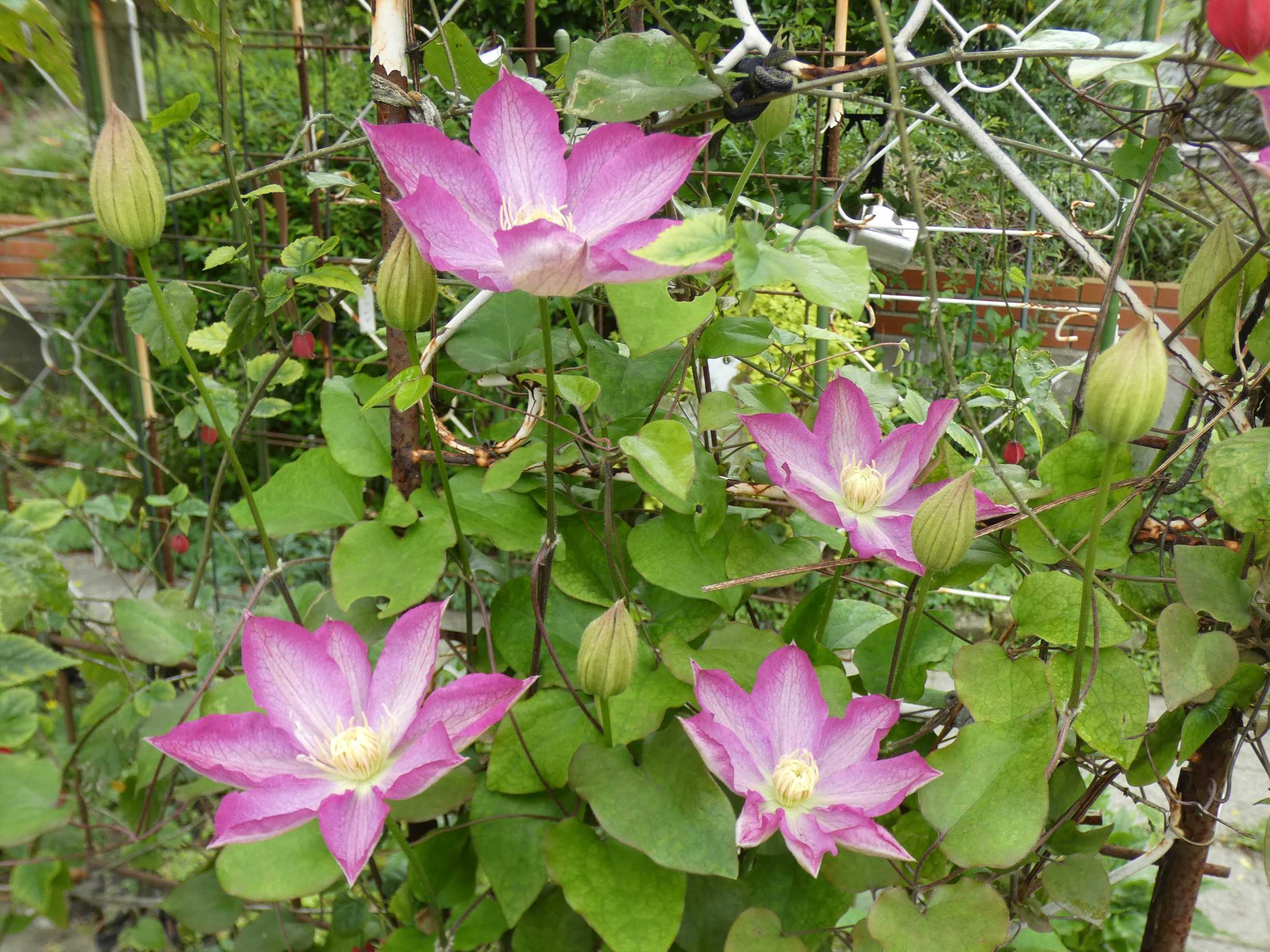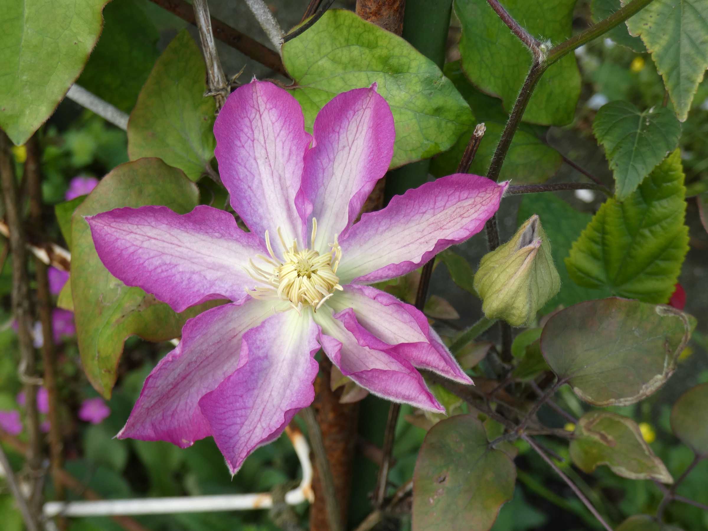 紫系クレマチス&スパラキシスが一気に咲きましたね~・キツネノボタンを抜いて行く