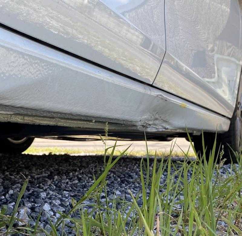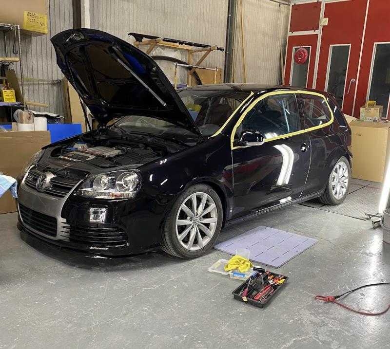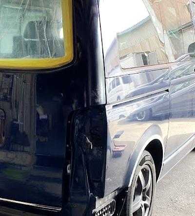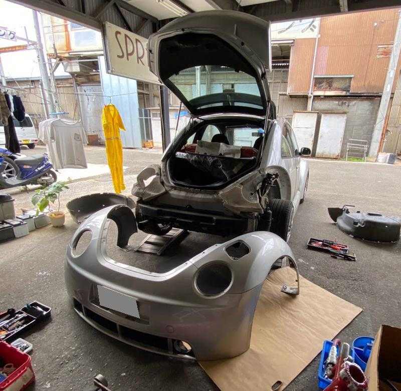 路肩や 歩道との段差 などで ぶつけちゃう時って ありますよね 車の下側 サイド ロッカーパネル部 ここ かたいし 修理もやりにくいですから 意外と ぺちゃんこに なってます 鉄板出して 鈑金 引っ張り出します すこしづつ 形になるよう 引っ張り続けます 道具をひっかけられるように 専用の鈑金道具で 溶接したり ひっぱったり 剥がしたり を繰り返して ほぼほぼ いい感じになったところで パテ作業へ すっかり 暗くなってしまって・・・ 回りの工場さんも 本日の作業終了で いいですね これ サイドスカート 改造しているので 改良してあるので ツルっとしあげで キレイに仕上げしないと VW GOLF MK5 GTI ゴルフ5 保存会 横浜