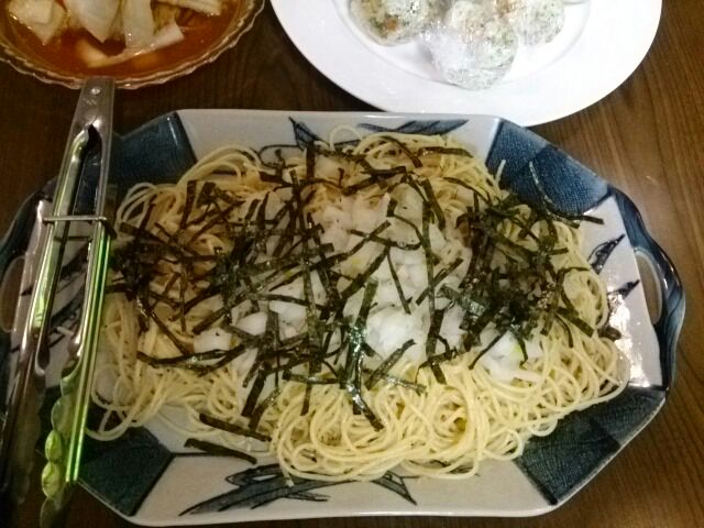 たらこパスタ たこのカルパッチョ アボガドのサラダ 年に一回の包丁を この時期に 持ってしまった私 味も う う う めぇ~でごさんす グットジョブ