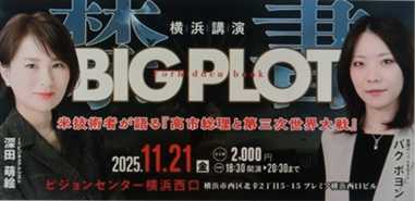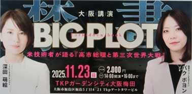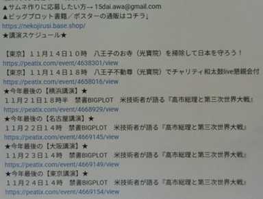 11月14日 ![]() 夜は「和太鼓ライブ」 ![]() そして「ビッグプロット講演会」 11月21日 横浜 ![]() 11月22日 名古屋 ![]() 11月23日 大阪 ![]() 11月24日 東京 ![]() 概要欄から、申し込みを…