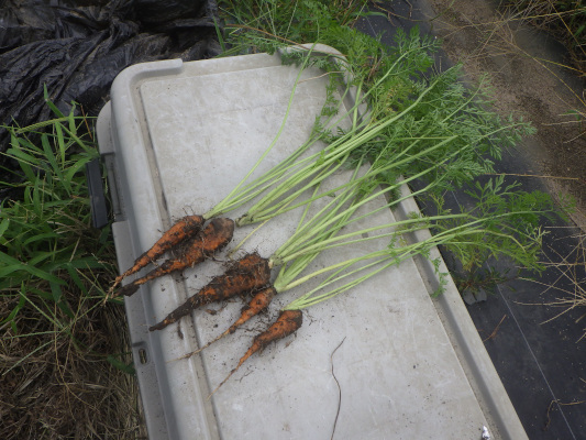 5月上旬に種まきをしてニンジンのイエローハーモニーを育てていました。6月下旬時点で、かなり生長のバラツキがありました。その後追加で種を植えるなどしてここまで生長しました。かなり雑草も混じったりの状態で、あまり期待していませんでした。収穫したところ以外と形になったイエローハーモニーが11本収穫できました。収穫した野菜は、家庭菜園で収穫していたじゃがいも、たまねぎを使ってカレーにして食べました。初めて作って食べたニンジンですが、とても美味しく食べる事が出来ました。2021年度の通算収穫数 イエローハーモニー:11本ブログ村に参加していますので押していただけると今後の活力になります。にほんブログ村野菜作り楽しいですよ。畑で野菜を作ってみませんか。興味のある方は下記サイトをご覧ください。