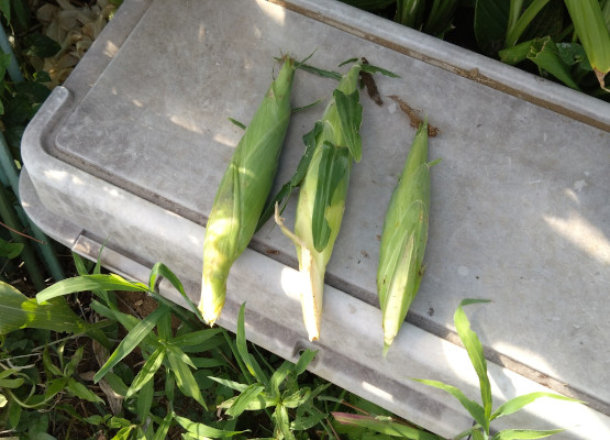とうもろこしも順調に育っていて、梅雨も明けたこともあり収穫することにしました。過去育てた中では一番良い出来となっています。普通に売っているものと同じぐらいです。こちらはやや小ぶりではありますが、それでも昨年よりも上出来です。マルチの効果が出たのかもしれません。茹でとうもろこしで食べましたが甘くてとても美味しい出来で大満足です。畑にはまだ小さいものが数個残っているので、もう1回楽しめそうです。2020年度の通算収穫数 とうもろこし(ゴールドラッシュ90):7個ブログ村に参加していますので押していただけると今後の活力になります。にほんブログ村野菜作り楽しいですよ。畑で野菜を作ってみませんか。興味のある方は下記サイトをご覧ください。