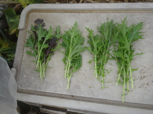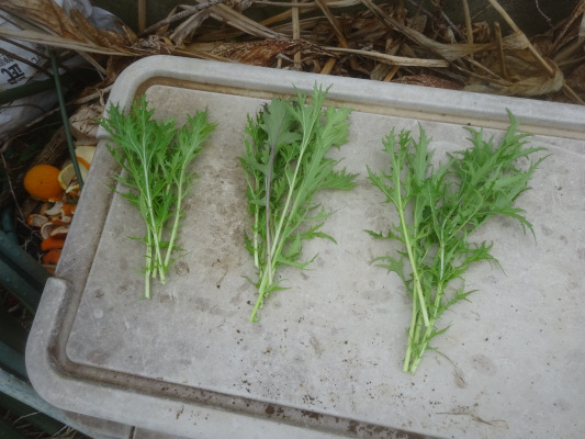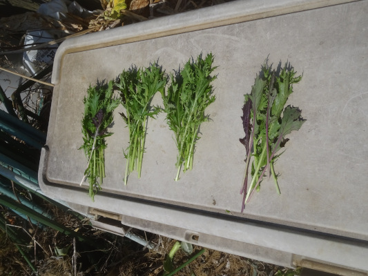 今年は夏野菜が終わった後と冬野菜を植えるまでの隙間時間に育てる野菜として水菜の種まきを行いました。今年度から初めて育ててみることにしました。品種は京しぐれです。9月中旬に種まきをして下旬には本葉が出てきていました。そして1ヶ月半で以下の大きさまで育ちました。まだ十分な大きさではありませんが、次の野菜の準備があるため収穫することにしました。全部で14株となりました。小さいですが味はとても美味でサラダとして楽しめました。今度は、冬のビニールトンネル栽培を試してみる予定です。2020年度の通算収穫数 水菜(京しぐれ):14株ブログ村に参加していますので押していただけると今後の活力になります。にほんブログ村野菜作り楽しいですよ。畑で野菜を作ってみませんか。興味のある方は下記サイトをご覧ください。