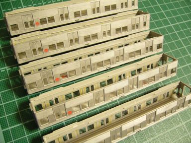 待ちに待った試運転を行いました。試運転動画はこちら(リアルプレーヤー版)☆試運転動画ver.2はこちら☆(ムービーキャスター版)イメージ画像一見スムーズに走っているようですが、ここで問題が発覚しました!1つ!動力車の床板機器がレールにこすれているようで、引っかかります。2つ!同じ台車がカーブ(C280-45)で、軽く脱線をします。3つ!動力モーターが、たまにキュルキュル鳴ります。4つ!今、お腹が空いています。4つ目は、もう少ししたらご飯食べるので解決しますね・・・。床下機器は1mm程さらに削りました。(写真は削る前)モーターの音は、分解して中のシャフトとギア部分にモリブデングリスを塗ってみましたが、う~ん、という具合です。脱線の考えられる原因は、1,レールに問題2,台車の取り付け具合3,カプラーの変更によるもの(スペーサーを取り付けて解決?)これらを後日チェックしたいと思います。(他にも原因はあるかも?)