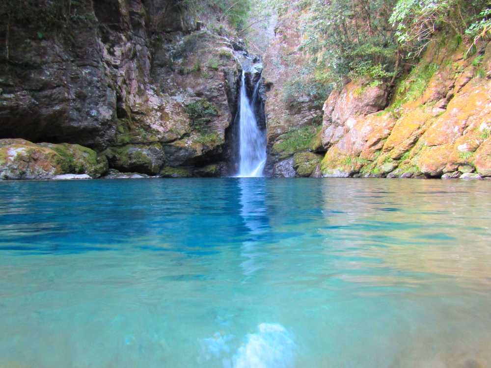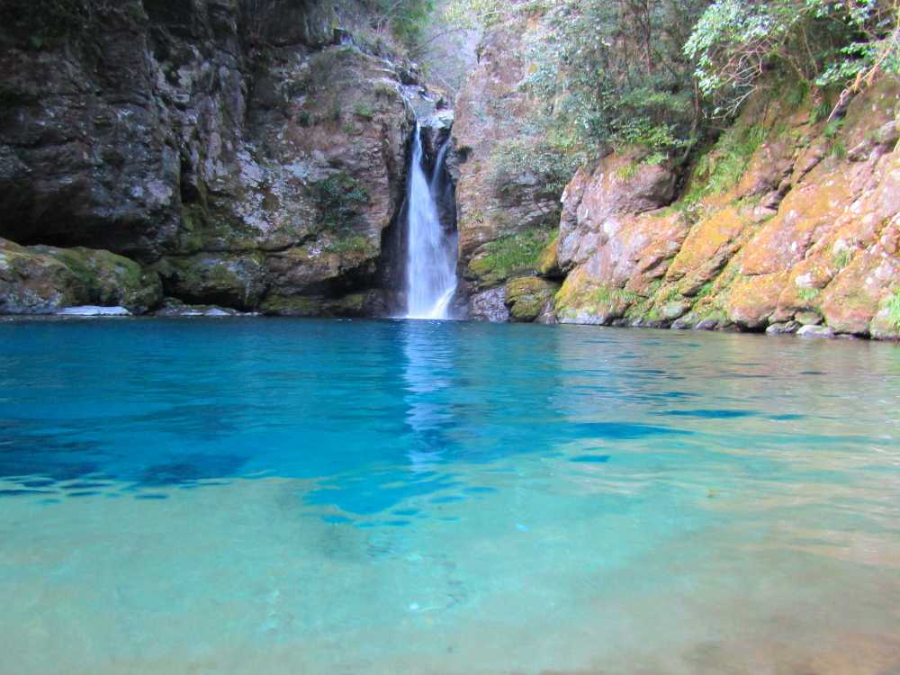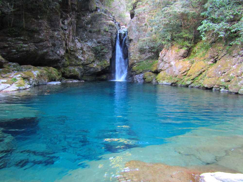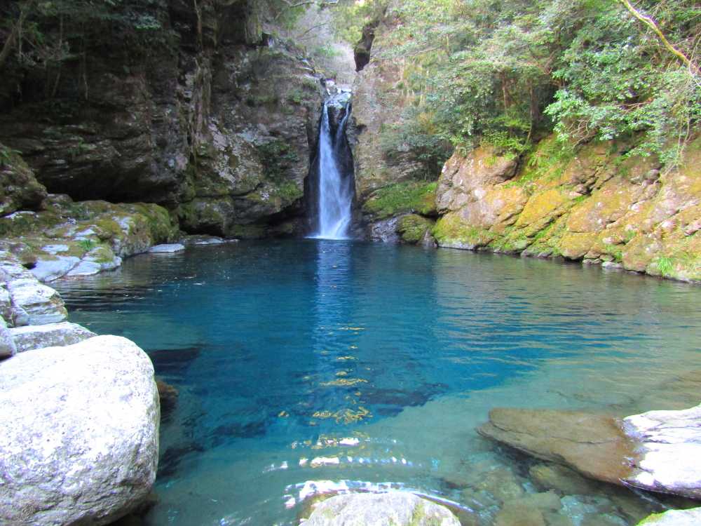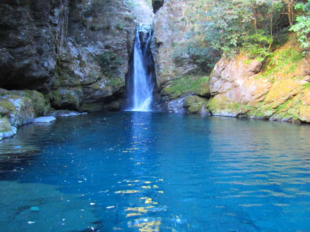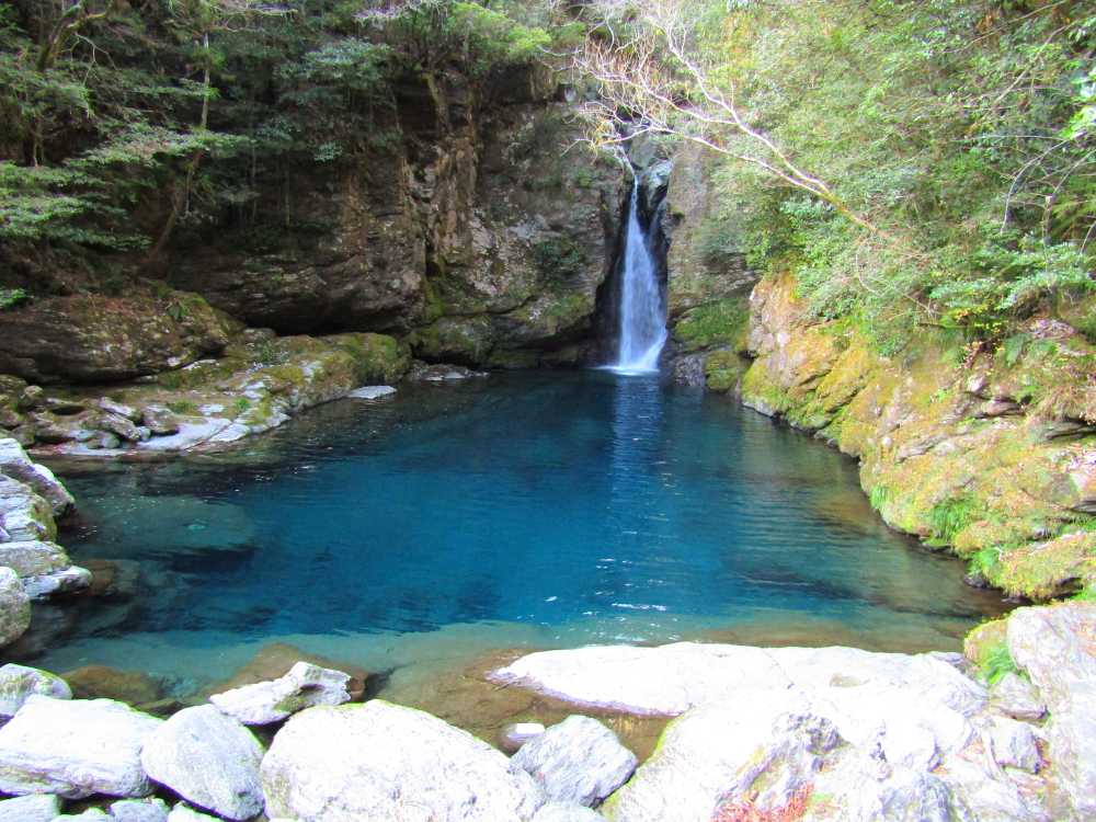 仁淀川ブルーを代表するスポットの一つ。落差7mの小滝と、透明度が非常に高い滝壺が特徴の神秘的な淵。太陽の光が注ぐ時間帯、光の角度や加減によって滝壺の色がブルーやグリーンに輝く幻想的な光景が見られる。およそ10年前に「仁淀ブルー」の言葉と共に紹介され大きな話題を呼び、最近は雑誌やテレビでも紹介され沢山の観光客が訪れている。 にこ淵までは急な階段を下りていく必要があるため、健脚向け。サンダルやハイヒール履きは禁止されている。また、神聖な場所とされているため、遊泳、喫煙、飲食、ゴミ捨ては禁止されている。 ![]() にこ淵入り口。周辺に駐車場有。 ![]() 長い階段を下ってにこ淵へ。勾配も急なのでゆっくりと。 ![]() ![]() にこ淵の全景。仁淀川ブルーと呼ぶにふさわしい、宝石のように青く輝く滝壺に、小滝が流れ落ちていく神秘的な光景。 ![]() ![]() ![]() 小滝。 ![]() ![]() ![]() ![]() ![]() ![]() ![]() 滝壺。水は滝底が見えるほど透き通って深い青色に輝き、まるでサファイアのよう。 ![]() ![]() ![]() ![]() 滝壺に光が差し掛かると、光の網が水面に揺れ、水深の浅いところがエメラルドグリーンに輝く。 ![]() ![]() ![]() 水面ギリギリにカメラを構えて撮影。 にほんブログ村