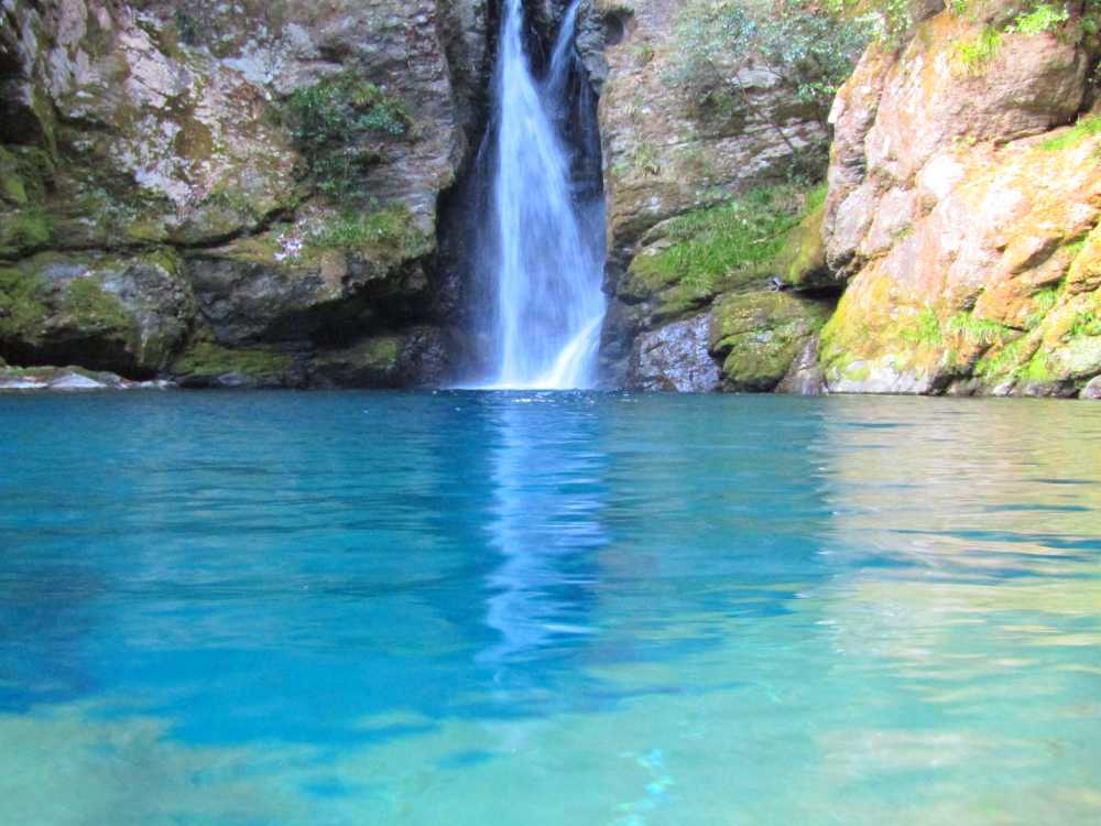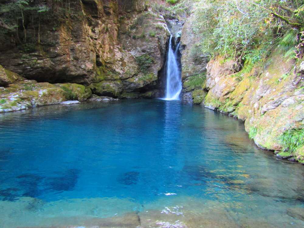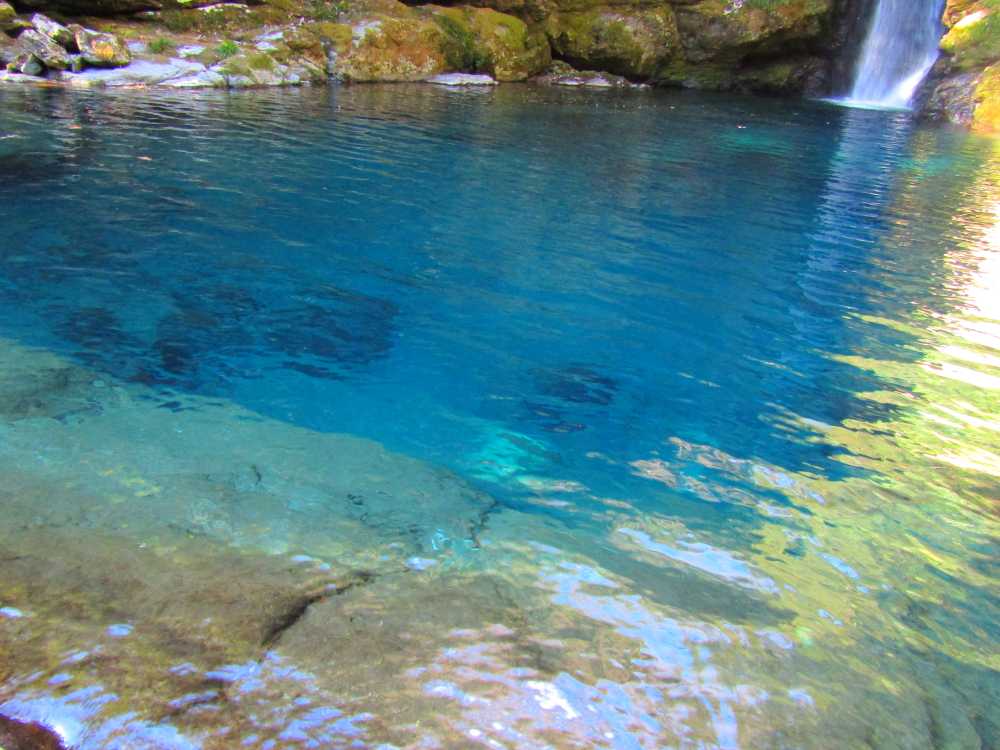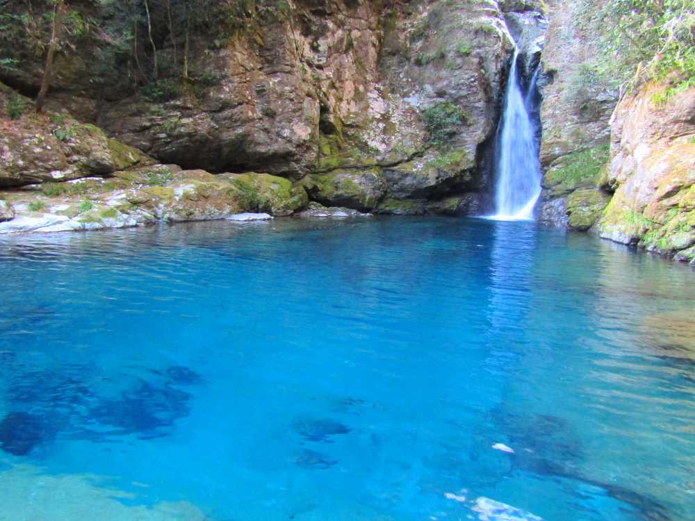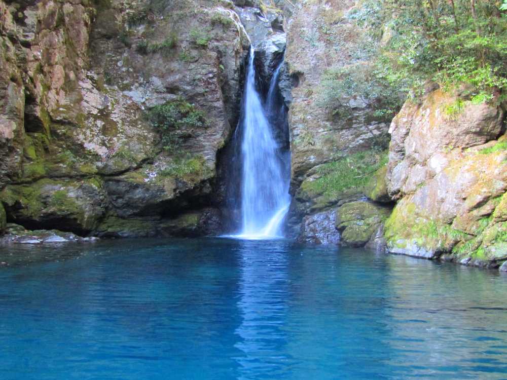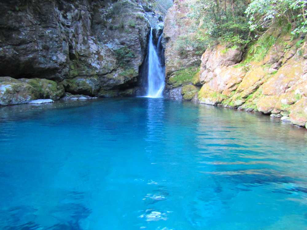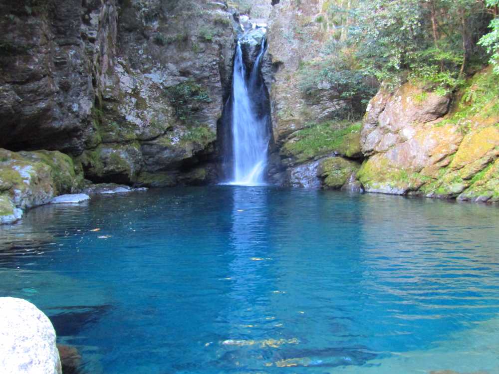 仁淀川ブルーを代表するスポットの一つ。落差7mの小滝と、透明度が非常に高い滝壺が特徴の神秘的な淵。太陽の光が注ぐ時間帯、光の角度や加減によって滝壺の色がブルーやグリーンに輝く幻想的な光景が見られる。およそ10年前に「仁淀ブルー」の言葉と共に紹介され大きな話題を呼び、最近は雑誌やテレビでも紹介され沢山の観光客が訪れている。 にこ淵までは急な階段を下りていく必要があるため、健脚向け。サンダルやハイヒール履きは禁止されている。また、神聖な場所とされているため、遊泳、喫煙、飲食、ゴミ捨ては禁止されている。 ![]() にこ淵入り口。周辺に駐車場有。 ![]() 長い階段を下ってにこ淵へ。勾配も急なのでゆっくりと。 ![]() ![]() にこ淵の全景。仁淀川ブルーと呼ぶにふさわしい、宝石のように青く輝く滝壺に、小滝が流れ落ちていく神秘的な光景。 ![]() ![]() ![]() 小滝。 ![]() ![]() ![]() ![]() ![]() ![]() ![]() 滝壺。水は滝底が見えるほど透き通って深い青色に輝き、まるでサファイアのよう。 ![]() ![]() ![]() ![]() 滝壺に光が差し掛かると、光の網が水面に揺れ、水深の浅いところがエメラルドグリーンに輝く。 ![]() ![]() ![]() 水面ギリギリにカメラを構えて撮影。 にほんブログ村