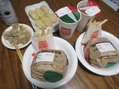 バーガーディナー 先日、「かつや」でランチを食べた、というのを、 日常ブログで書きましたが、 その後、道向かいのイオンタウンで買い物を済ませ、 最後にバーガーキングに行きました。 ![]() バーガーキングで夕食をテイクアウトです。 最近はバーガーキングがお気に入りで、 我が家よく利用しています。 そういえば午前の旅行記でもランチはバーガーキングでしたね。 ![]() お父さんのノンアルコールビールと、 おつまみのイカの天ぷらはイオンのスーパーで。 ![]() あとはお稲荷さん。 この日の夕食です。 ドリンクはお父さんがメロンソーダ、私はジンジャーエール。 ![]() バーガーは2人ともスモークBBQワッパーです。 野菜増量のオールヘビーで。 ボリュームがあって、私はこれだけでお腹一杯。 ![]() ゴンの夕食は相変わらず歯肉炎のお薬と。 ![]() 缶詰めに混ぜて。 ![]() ゴン、ご飯だよ。 ![]() この食べ方。 ![]() 食べている途中で座り込んで。 ![]() デザートはスーパーで買ったケーキを。 ![]() スーパーのケーキでも十分美味しいですね。