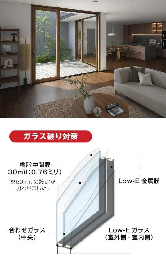 防犯対策/YKKAP強化複層ガラス(強化ガラス)富山県高岡市~ガラス破り対策~