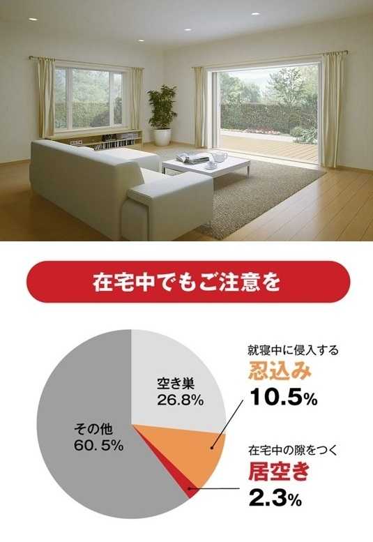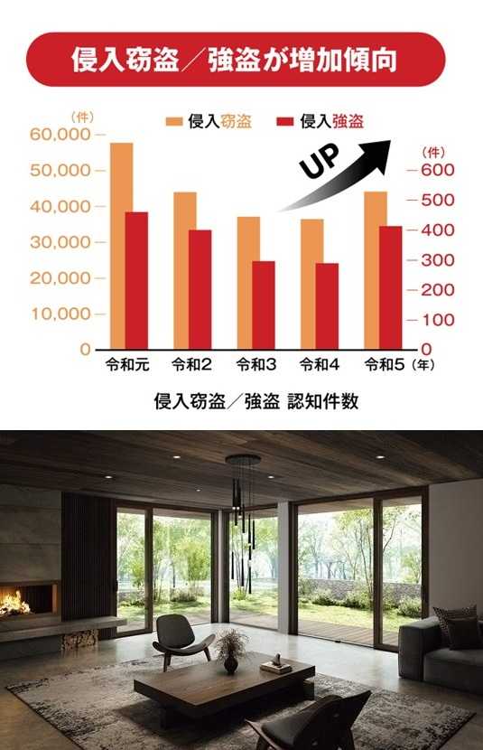 ガラス修理、強化複層ガラス交換は、富山県内全域に対応します。富山県西部:高岡市、射水市、氷見市、小矢部市、砺波市、南砺市富山県東部:富山市、滑川市、中新川郡、魚津市、黒部市、下新川郡富山県内最安値!「玄関ドアのガラスが割れた」「窓のクレセント錠が壊れた」「断熱窓で電気代を減らしたい」「防犯対策に欠かせない優れた防犯ガラスに興味がある」「断熱ガラスで室内に太陽光を取込み暖房熱を逃がさないようにしたい」「お手入れ不要で窓の表情を豊かに演出する格子入複層ガラスに交換したい」「窓リフォームで夏の寝苦しさを改善したい」「騒音を遮り気になる視線も遮る効果のあるガラスにしたい」「高い断熱・遮熱性/防音効果の高性能トリプルガラス樹脂窓に興味がある」「太陽の熱線と紫外線から守ってくれる遮熱ガラスにしたい」「強風時の飛来物対策として破壊されにくいガラスに交換したい」など、窓ガラスの修理から、ニーズに対応した窓まわりの防犯対策まで、窓まわりのことなら何でもお任せください。窓の専門店です。近年の侵入盗犯罪の傾向を知ろう/住宅などの建物に侵入し、金品を盗む「侵入窃盗」や凶器等を示すなどして、家人を脅して金品を強奪する「侵入強盗」の件数は平成の後半から令和に入るまで減少傾向にありましたが、いままた増加傾向に。中でも戸建住宅がかなりの割合を占めています。【窓の防犯性を高めたい】戸建住宅では半数以上が窓からの侵入。対策は「泥棒に嫌われる窓」にすること。二重窓にしたり、ガラス破りに強いガラスを選ぶことで侵入を諦めさせる窓に。また、シャッターや雨戸、面格子の取り付けも効果的です。【窓の防犯が重要な理由】泥棒の侵入経路は、戸建て住宅の場合、半数以上が窓からの侵入です。侵入者にとって「掃き出し窓」が最も破りやすいと言われています。侵入手口としては、「カギの開いているところ(無締まり、鍵のかけ忘れ)からの侵入」に次いで多いのは「ガラス破り」です。カギが閉まっていても、ガラスの一部を破り、そこから手を差し入れてクレセントを回して解錠してしまうのです。 このようなデータから、窓の防犯対策がどれほど大切かということが分かります。侵入盗犯の7割が5分以上要すると侵入をあきらめ、10分以上かかるとそのほとんどはあきらめる確率が高いというデータがあります。しっかり鍵をかけることに次いで、時間がかかりそうだと思わせターゲットにされにくくすること、侵入に時間をかけさせ侵入をあきらめさせることが窓の防犯ポイントです。【侵入をためらわせ、手こずらせ、諦めさせる窓とは】ガラス破り対策として割られにくい窓ガラスにしたり、開けづらいクレセントや補助錠をつけることが有効です。また、そもそも狙われにくい窓にするための工夫も大切です。内窓をつけて二重窓にしたり、シャッターや雨戸、面格子をつけることで、侵入をためらわせるとともに、実際に侵入しようとしても破壊に手間取るため、途中で侵入をあきらめさせる効果も期待できます。また商品を選ぶ際は、CPマークがついた防犯性が高いものがおすすめです。【割られにくい窓ガラスに交換する】ガラス破り対策として「安全合わせ複層ガラス/防災安全合わせ複層ガラス」が有効です。2枚のガラスの間に中間膜をはさんであるので、ガラスを破壊しようとしても、ヒビが入るだけで割れにくいという効果があります。特に、昔からの単板ガラスを使っている場合は窓ガラスの交換をおすすめします。まずは無料で見積り依頼をアルミ建材和田がお客さまに選ばれる3つのポイントPOINT1:地域に根差した専門店POINT2:安心の施工実績POINT3:高いお客さま満足度YKKAP 強化複層ガラス風圧に強く、万一割れてもケガを防ぐ。従来に比べ約3~5倍の耐風圧強度を持ち、衝撃強度にも優れたガラス。万が一割れた場合でも粒状になり、ケガを防ぎます。透明タイプと、プライバシーを守るミスト柄タイプをご用意しています。安全をサポート。強度が高いため割れにくく、万が一割れた場合でも粒状になり、ケガを防ぎます。プライバシーにも配慮。ガラスの種類は透明タイプとミスト柄タイプの2種類をご用意。ミスト柄タイプなら光を拡散し、視線を適度に遮ります。プライバシーを守りたい場所におすすめです。徹底的に価格競争します!必ず他社より安くします!大切な「すまい」も「くらし」もゆたかにグレードアップ。選ぶのはお客さまです。お客さまの暮らしをより快適にするためのプランをご提案いたします。施工実績・トップクラス・創業50周年富山県の気候風土に適した「安心」「納得」のリフォームでお客さまの快適な暮らしを実現していきます。住まいのことなら何でもお気軽にご相談ください。「診断力」「提案力」が解決いたします。家に居ても注意が必要/侵入窃盗手口別認知件数は、留守の時に侵入する「空き巣」がもっとも多いのですが、深夜居住者が寝静まった時を