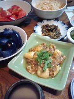 好きです タコはは 好きです タコはは好きです タコはは 好きです タコはは いらっしゃいませー ようこそ 「居酒屋 タコはは」 へ 何名様ですか? ハイ 3名様 お席の方へご案内致しまーす。 本日のお品書きのご案内をさせて頂きます。 「ホヤのお刺身」 「焼きホヤ」 「水ナスの漬物」 「もやしのナムル」 「ザク切りトマト」 「黒豆マッコリ」をご用意いたしました。 今夜は今が旬のホヤをお楽しみ下さい。 スーパーで小ぶりな天然ホヤがお買い得になっていたのでたっぷり買い込んで来ました捌いてみたら、綺麗なオレンジ色の部分が少なめですが・・・・・まぁいっかそんな時はホヤ塩か塩をふって焼きホヤで頂きましょう 今夜はホヤ三昧でがすすみますね 好きです タコはは 好きです タコはは好きです タコはは 好きです タコはは