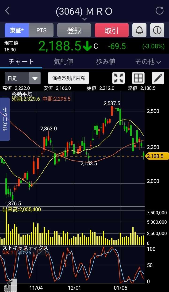 2353 日本駐車場開発3030 ハブ3276 日本管理センター7605 フジコーポ年初来+14.03%【全部売却】ワッツとうとう売却しました。けっこう長く保有していたと思います。昨年は決算説明会にも行ってみたのですが結果的にそれも売る要因となったように思います(懇親会で経営陣の方にいろいろ質問したりしまして)。100円ショップ業界の熾烈な競争の中でこの先も安定して成長していけるのか、インフレを価格に転嫁できるのかと考えたときにちょっと厳しいだろうということで売却しました。今月は年末に買った日本駐車場開発の急騰により、かなり良いパフォーマンスとなっています。それがなければ年初からほとんど増減が無かったはずです。